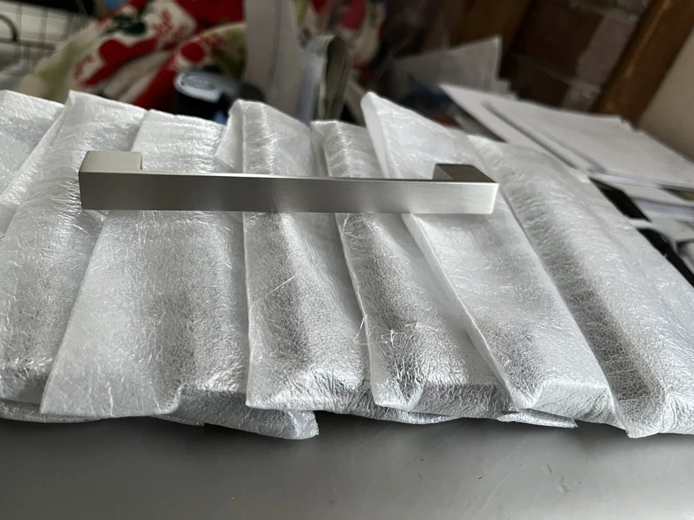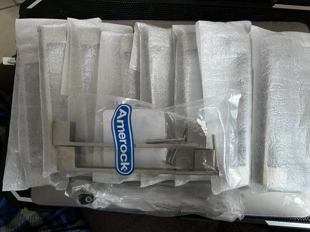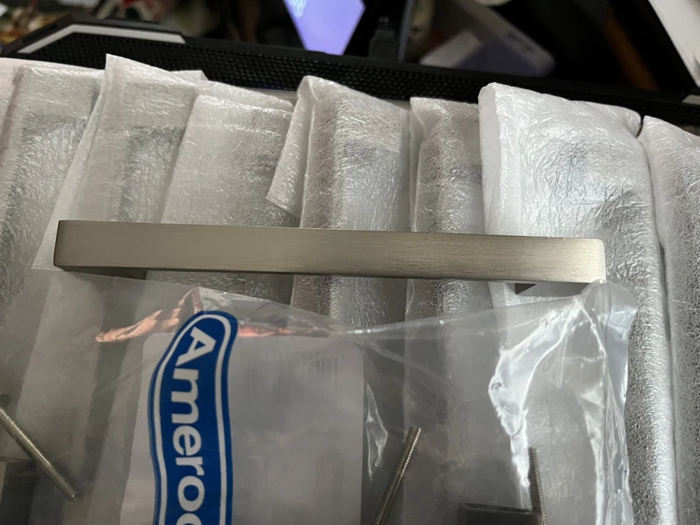 18 Amerock 5 1/16” (128mm) Modern polished chrome bar/cabinet pull. I have 18 brand new. Sold together. I bought for my new vanity’s. I changed my mine on style so my loss is your gain. They are less than half the original price. $36