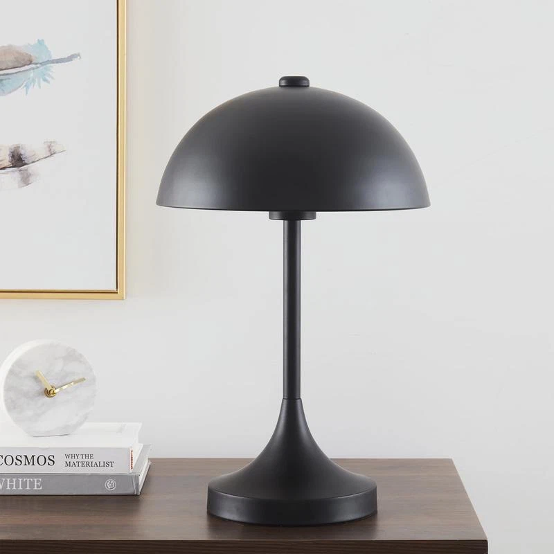 Add extra light and modern style to any room with the Better Homes & Gardens 18" Modern Dome Desk Lamp. Available in your choice of brass or black finishes, this decorative desk lamp has a dome-shaped shade with a tulip-shaped base that will bring a sleek, modern look to your bedroom, living room, office, and more. This Better Homes & Gardens desk lamp is 18 inches tall with a sturdy round base. Pair this desk lamp with a 60-watt max E26 Type A bulb or a 10-watt LED bulb (not included). Black dome desk lamp Features dome-shaped shade with tulip-shape base Available in brass or black finishes Sturdy round base 18-inch overall lamp height Modern lighting accent for living rooms, bedrooms, offices, dorm rooms, and more Requires a 60-watt max E26 Type A bulb or a 10-watt LED bulb (not included) Easy touch on / off switch Coordinates with the Better Homes & Gardens Modern Dome Floor Lamp (sold separately)