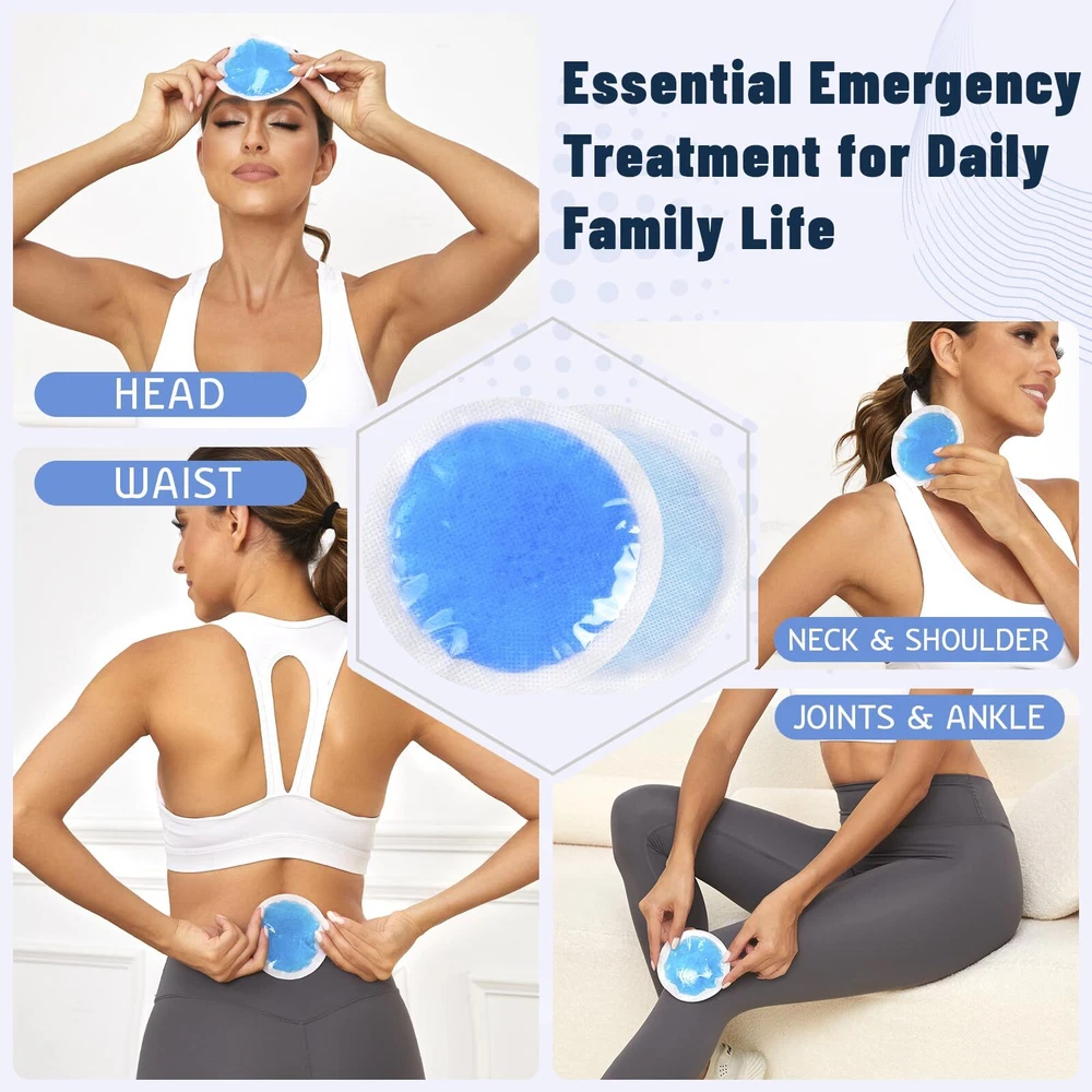[WARM TIPS] The best cold compress effect is achieved by freezing in the refrigerator for more than 2 hours. If a hot compress is needed, please note that it should be heated in the microwave for less than 5 seconds and not continuously. [STILL SOFT AFTER FROZEN]: High-quality soft gel can keep our small ice packs soft and close to the skin after freezing in the refrigerator for several hours, so that the gel small ice bags can be fully close to the areas that need cold compress, providing better family first emergency care. [WHAT WILL YOU GET]: 18 Pack portable gel ice pack can be easily replaced at any time, meeting the daily needs of a large family. You can freeze them in the refrigerator for easy access at any time, it can be used in the office, school, home, or outdoor activities. [SAFETY & HIGH QUALITY]: The two sides are made of different materials, providing you with dual temperature requirements. One side is made of PVC material, which is colder, while the other side is made of non-woven fabric, which is more suitable for sensitive areas such as the forehead and face. This kids ice pack the non-woven fabric material on the back will not tear and has good sealing performance to prevent internal gel leakage. The interior is filled with high-quality non-toxic gel. These gel ice bags remain soft and flexible after being frozen in the refrigerator for several weeks. The small ice pack will be very cold, but it will not freeze like water. [COMPACT & PORTABLE]: The size of this small ice pack is designed for families, and the 4-inch reusable circular portable cold pack is more suitable for families. Whether it is for relieving eye fatigue, breastfeeding, wisdom tooth surgery, injections, cosmetic surgery, bumps, bruises, small wounds, fever, headache, hot and cold compress for various joint areas, or bento cooling. [AFTER-SALES SERVICE]: If you have any questions about the product or encounter any problems with your order, please feel free to contact us. Our service team will provide you with professional solutions.