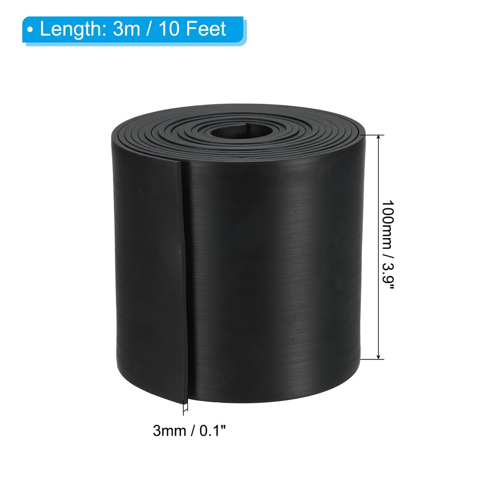 Neoprene rubber strips roll for multiple purposes, rubber sheets for DIY gaskets, pads, seals, crafts, flooring, cushioning of anti-vibration and anti-slip.It is applications include belting and sound-proofing. Specification Material: Rubber Solid Rubber Rolls Length: 3 m / 10 Feet Rubber Strips Size: 100 x 3mm / 3.9 x 0.1 inch (W*T) Package List: 1 x Rubber Rolls Advantage The rubber seal strips are black in color and smooth on both sides. With good flexible, wear-resistant tear-resistant, oil resistance, aging-resistant and long-lasting, strips can seal and even protect your floors with its cushioning properties. The rubber seal solid strip has exceptional durability, which remains firm and flexible in a wide range of temperatures and conditions, suitable for wide use. Instruction Rubber strips roll is easy to cut the size you want with scissors or a blade and bend easily into any shape, great for any DIY project. NOTE: This product is measured manually, so there will be an error of about 0.1 inch. Material: Rubber; Solid Rubber Rolls Length: 3 m / 10 Feet; Rubber Strips Size: 100 x 3mm / 3.9 x 0.1 inch (W*T); Package List: 1 x Rubber Rolls Advantage: The rubber seal strips are black in color and smooth on both sides. With good flexible, wear-resistant tear-resistant, oil resistance, aging-resistant and long-lasting, strips can seal and even protect your floors with its cushioning properties. The rubber seal solid strip has exceptional durability, which remains firm and flexible in a wide range of temperatures and conditions, suitable for wide use. Application: Neoprene rubber strips roll for multiple purposes, rubber sheets for DIY gaskets, pads, seals, crafts, flooring, cushioning of anti-vibration and anti-slip.It is applications include belting and sound-proofing. Instruction: Rubber strips roll is easy to cut the size you want with scissors or a blade and bend easily into any shape, great for any DIY project.