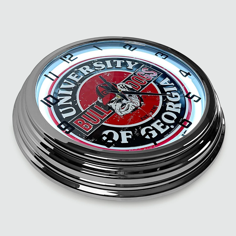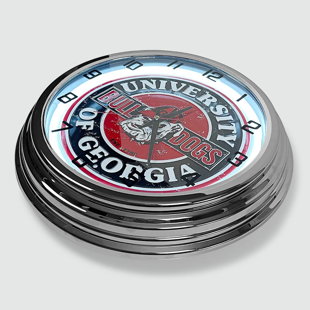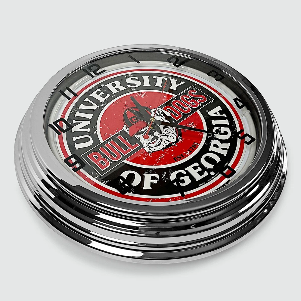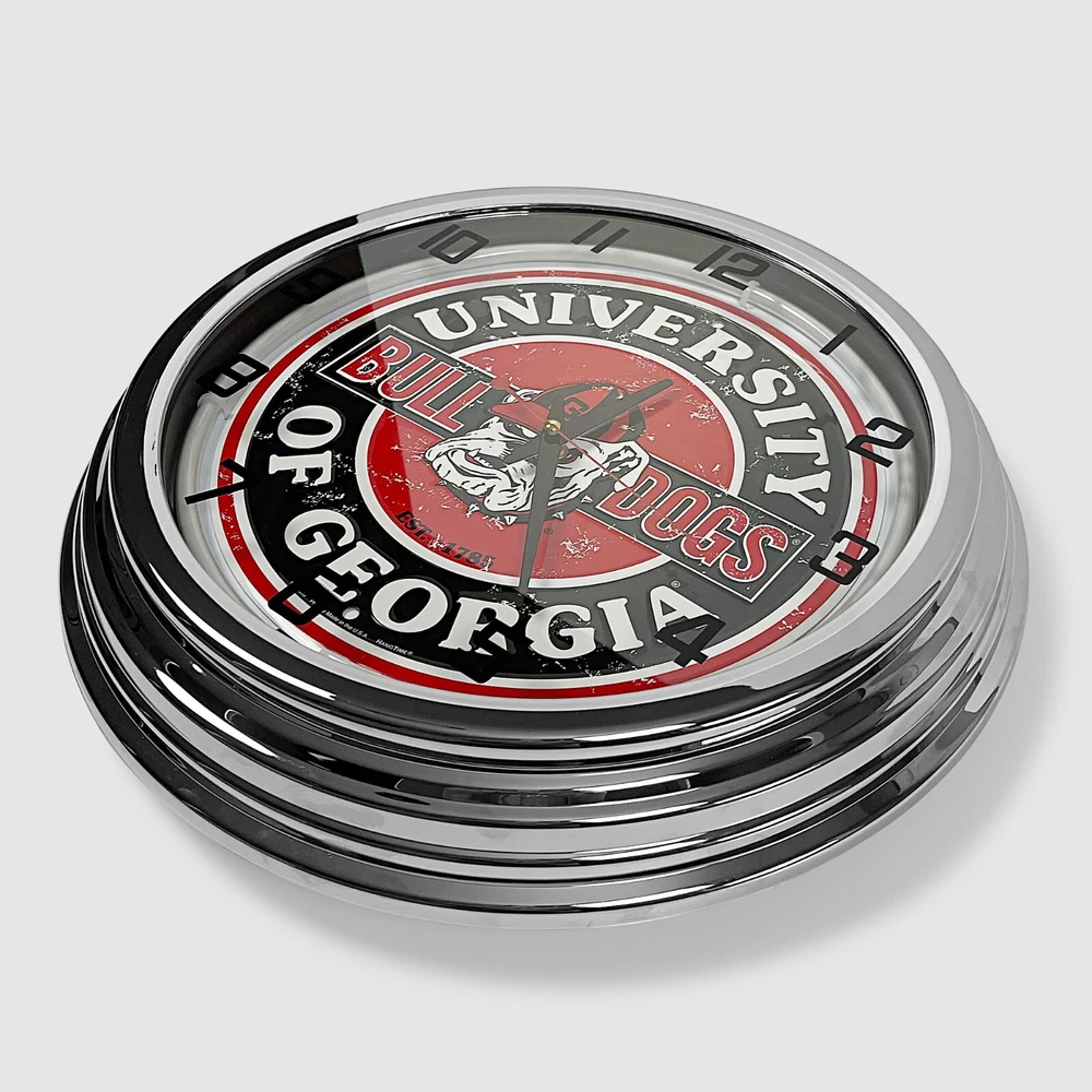 *Product is officially licensed. *Licensing information is printed on front or back of sign. *Image of licensed holographic logo or serialized QR code is in pictures. 18" University of Georgia Bulldogs Metal Sign Designed White Neon Clock - SIGNBOX-QLN720350 2.5" Inch Thick Triple Outer Bevel White Neon Handmade Ships from a Small Business in Ohio Materials: Metal, Steel Width: 17.25 inches Height: 17.25 inches Depth: 2.50 inches