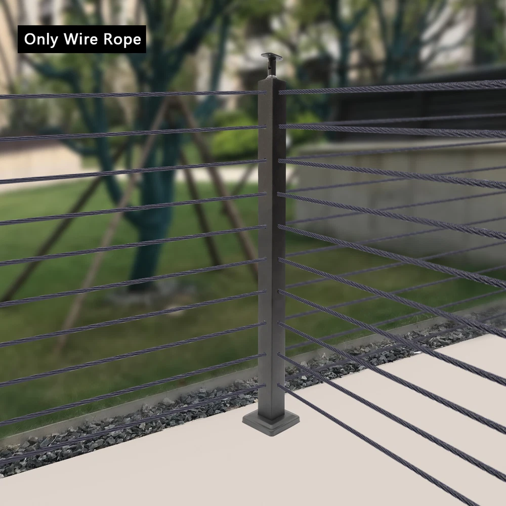 300ft 1/8" Black Wire Rope 316 Stainless Steel Marine Grade for Indoor Interior Cable Railing Aircraft Stair Deck Fencing 7x7 Strand DIY Balustrade Hanging 91.5m Application It is ideal for 1/8" Black Indoor Cable Railing Systems . It is widely used in industrial and marine for strapping, traction, tensioning, landscape, architectural use, and outdoor hanging heavy string lights or sundries . It also fits many home applications such as clotheslines, stair cabling railing, garden fencing, hanging string lights, photos, an d other indoor decorations, as well as DIY deck cable railing handrail systems, commercial activities, wedding celebrations, and festival occasions. Key Features Build to Last Made of 316 stainless steel with blackening treatment , this product is rust-proof, corrosion-resistant, anti-oxidation, wear-resistant, weather-resistant, and will not fade. Sturdy Construction The 7x7 strands construction which formed helically around a stranded core makes it durable and strong with good softness, high breaking strength (1278.68 lbs), and high safety tension (264.5 lbs), so is not easy to break and you can use it with confidence. High Flexibility It's much easier to turn and bend at corners, making this product a good type of cable for handling bends and corners on cable railings. Details 1) ABS Shaft: It helps to organize the wire rope neatly for easy storage and carrying. 2) Smooth Surface: The smooth & burr-free surface protects your hands and objects from injury or damage and allows for easy cleaning with a wet cloth. Specifications Material: 316 Stainless Steel Shaft Material: ABS Process: Blackening Treatment Shape: Round Rod Item Form: Coil Special Feature: Anti-rust Breaking Strength: 5800N/580kg/1278.68 lbs Safety Tension: 1200N/120kg/264.5 lbs Wire Rope Diameter: 3.175mm/ 1/8" Wire Rope Length: 91.5m/300ft Package Size: 25*25*20cm/9.84*9.84*7.87inch Net Weight: 4 kg/8.8 lbs Package Included 1 x Roll - 30 0ft Wire Rope Notes 1. The packaging does not contain railings. 2. It is recommended to use a professional cable cutter to obtain clean cuts and reduce wear. It is ideal for use with sleeve, ferrule joints, and hydraulic swaged joints (all not included).