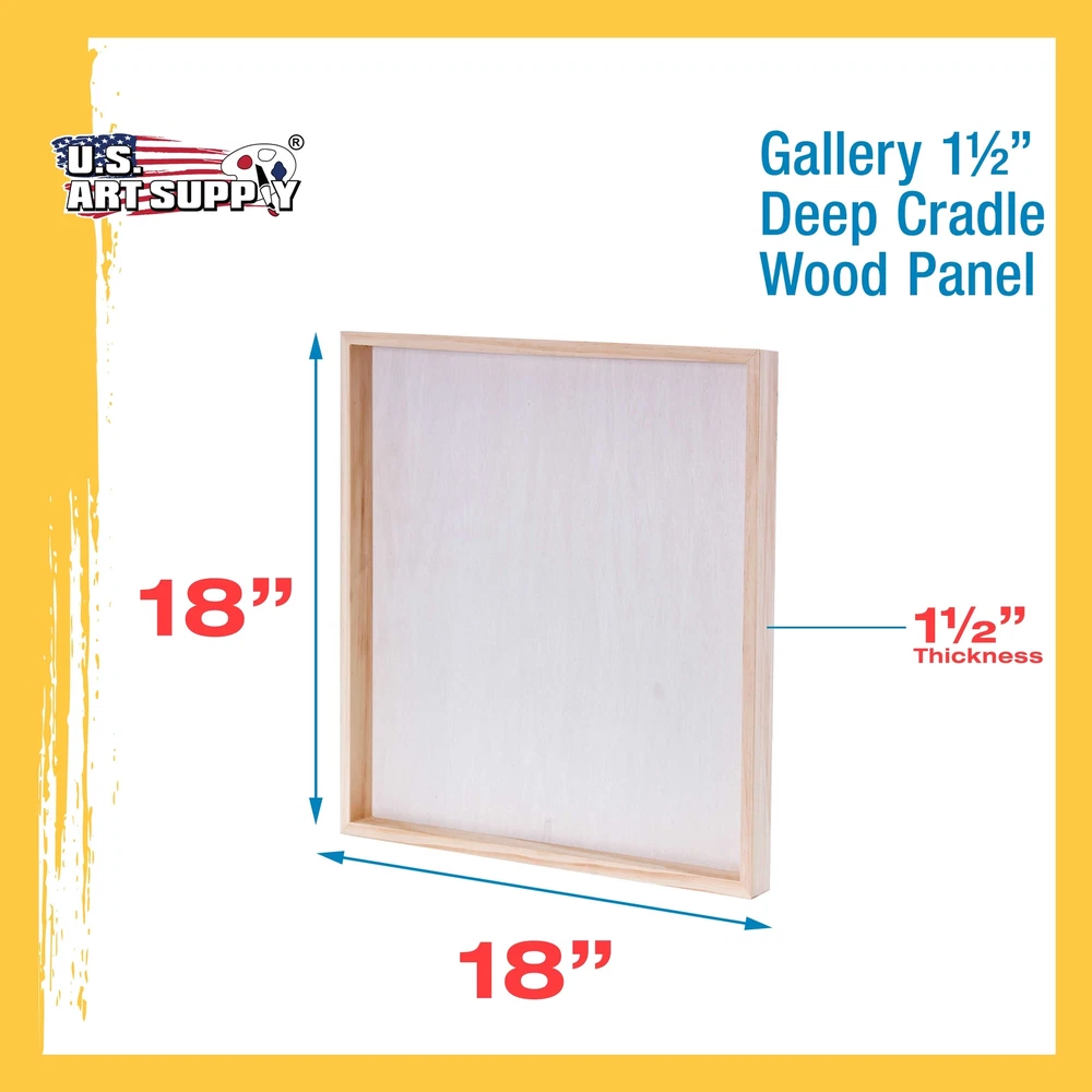 ]]> U.S. Art Supply Ebay Storefront Ordering | Shipping | Returns | International Product Information Part# USA WCG18X18-2PK 18" x 18" Birch Wood Paint Pouring Panel Boards, Gallery 1-1/2" Deep Cradle (2 Pack) - Artist Depth Wooden Wall Canvases - Painting, Acrylic, Oil 1-1/2" GALLERY DEPTH PANELS: Pack of 2 premium artist quality 18" x 18" x 1-1/2" deep gallery depth cradled birch wood paint pouring panel boards. Premium sturdy unprimed smooth birch surface panels that are ready for primer or gesso. ALTERNATIVE to CANVAS: Provides a firm smooth painting surface that will not stretch, flex or bend like traditional canvases. Panels have smooth sanded birch faces with solid wood cradles that ensure strength, so there will be no warping. Easy to hang, as no frames are necessary. IDEAL for MIXED-MEDIA: Panels are excellent for paint pouring and most art and craft projects, as they can be used with all types of mixed-media including oil, acrylic, watercolor, tempera, encaustic, collage, decoupage, impasto, photos, drawing etc... AVAILABLE in MULTIPLE PANEL SIZES and DEPTHS: Our panels are available in multiple sizes from 4" x 4" up to 24" x 36" and with cradle depths of either 1-1/2" Gallery Panels or 3/4" Studio Panels. Quantity of panels per package also vary from 2 to 5. Our panels are used by professional artists, as well as the young aspiring artist for creating unique artwork. U.S. Art Supply is a national industry leader in Art Supplies. Buy with Confidence: Backed by a trusted brand dedicated to your satisfaction, we ensure a hassle-free experience every time. U.S. Art Supply 18" x 18" x 1-1/2" Deep Cradled Birch Wood Paint Pouring Panel Boards (Pack of 2) - Gallery Artist Depth Wooden Wall Canvases Premium Quality 1-1/2" Gallery Depth Wood Paint Pouring Panels Pack of 2 premium artists quality 18" x 18" x 1-1/2" deep gallery depth cradled birch wood paint pouring panel boards. Premium sturdy unprimed smooth birch surface panels that are ready for primer or gesso. Edges can be primed and painted. Wood grain, color & panel appearance may vary due to the natural characteristics of the materials used. The Perfect Alternative to Canvas Provides a firm smooth painting surface that will not stretch, flex or bend like traditional canvases. Panels have smooth sanded birch faces with solid wood cradles that ensure strength, so there will be no warping. Easy to hang, as no frames are necessary. Ideal for Paint Pouring and Mixed-Media Panels are excellent for paint pouring and most art and craft projects, as they can be used with all types of mixed-media including oil, acrylic, watercolor, tempera, encaustic, collage, decoupage, impasto, photos, drawing etc... Available in Multiple Panel Sizes, Depths and Quantities Per Package Our panels are available in multiple sizes from 4" x 4" up to 24" x 36" and with cradle depths of either 1-1/2" Gallery Panels or 3/4" Studio Panels. Quantity of panels per package also vary from 2 to 5. Our panels are used by professional artists, as well as the young aspiring artist for creating unique artwork. One Year - 100% Satisfaction Guarantee U.S. Art Supply is an industry leader in Art Supplies, so purchase our panels with confidence. One Year - 100% satisfaction guarantee, so if you're not satisfied with these panels at anytime within one year of purchase, we'll provide a refund or replacement.
