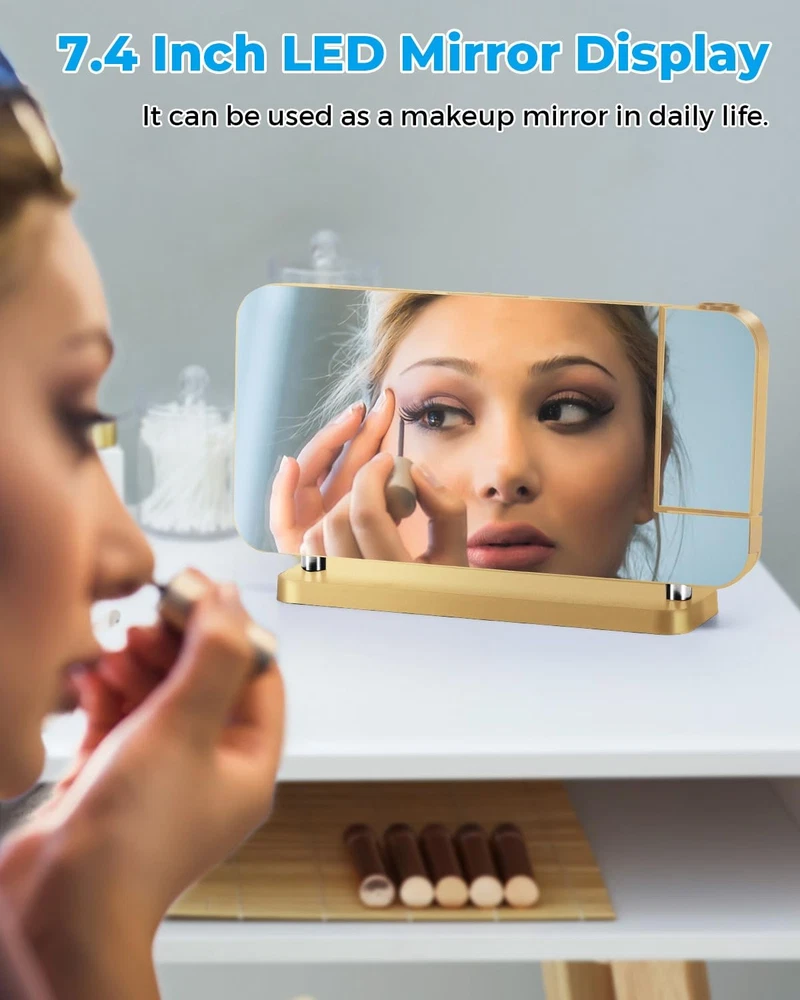 This projection alarm clock is a game-changer! The large 7.4" mirror display looks sleek in gold, blending modern style with practical features. I love how it projects the time onto the ceiling—super clear and adjustable. Beyond telling time, it works as a night light, USB charger, and even a stylish decor piece. Super easy to set up, and the touch controls feel premium. Perfect for bedrooms or offices, and makes a thoughtful gift too. The dual alarm function wakes me gently, and the dimmer helps avoid bright lights at night. Definitely worth every penny!