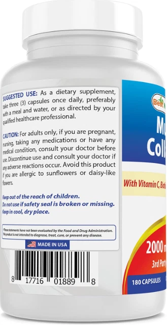 180 Capsulas Mejores Pastillas De Colageno Hidrolizado Colágeno Con Vitamina C US Warehouse - FREE & FAST Shipping in US Product Description: These statements have not been evaluated by the FDA. This product is not intended to diagnose, treat, cure, or prevent any disease or health condition. 3rd Party Lab Tested for Purity & Quality. Made with Bovine Collagen, Chicken Collagen, Fish Collagen, Eggshell Collagen, Vitamin C, Biotin, Hyaluronic Acid Non-GMO & Gluten Free. Proudly Made in USA, GMP Compliant, FDA Registered Facility. No Artificial Color, Flavor or Sweetener, No Preservatives, No Sugar, No Milk, No Corn, No Soy, No Egg, No Lactose, No Gluten, No Wheat, No Yeast. Sodium Free. Feedback: 1.Any question for your order, please contact us in time, we will reply to you within 24 hours and give you a satisfactory answer. 2.If you are satisfied with our products and services, hope to take up your a little precious time to leave feedback reviews for our products.Thanks! 3.Your satisfaction is our effort. Welcome to order again! Have a great day! Our Policy: 100% Satisfaction Guarantee 20% of restocking fee will be charged for return item