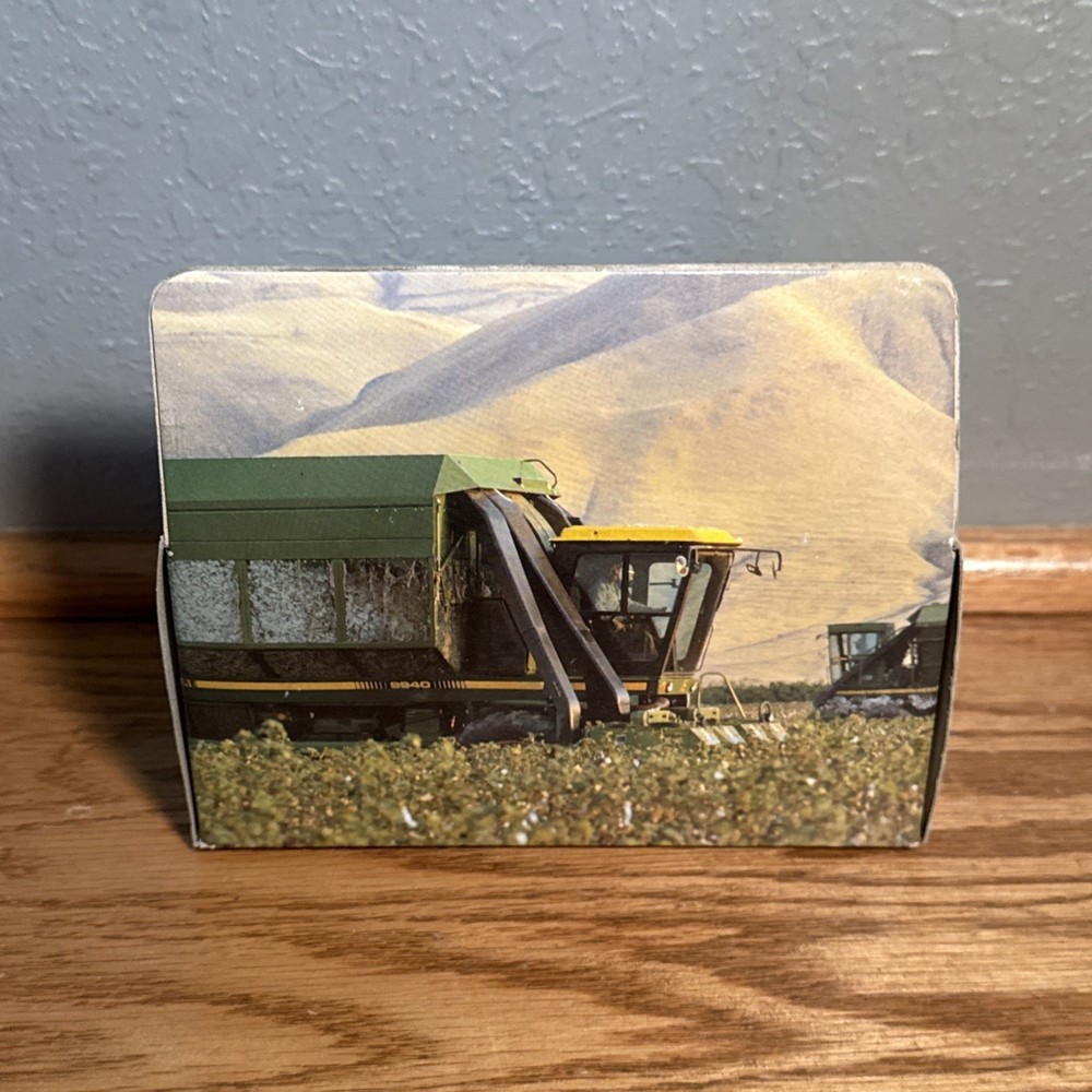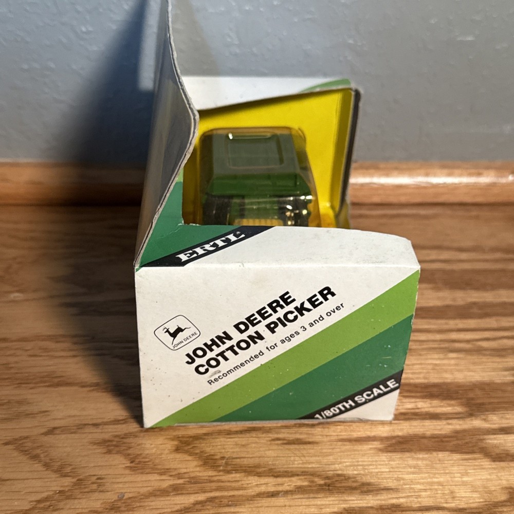 This 1/80 scale John Deere Cotton Picker is a must-have for any fan of agricultural machinery. With its detailed design and removable roof, this model is perfect for display or play. The 4-row cotton head adds to its authenticity and makes it a great addition to any farm vehicle collection. Made by Ertl and still in its original box, this Cotton Picker is sure to please collectors and enthusiasts alike.