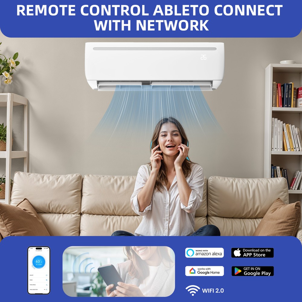 18000 BTU Air Conditioner Mini Split Cool Heat Pump System Ductless SEER19 208/203V Product Description NOTE: Professional Installation would be Highly Recommended. Descriptions: 1. Material: Iron, Stainless Steel, Plastic 2. Color: White 3. Mounting: Wall-Mounted 4. Special Design: Mini Split AC, Inverter Compressor, WiFi/App Compatible, SEER2-19, 220 Voltage, 1250 SQ Ft Coverage, 47 dB Noiseless, Air Flow 50ft, Heat Pump 1.5 Ton, 5-AC Mode 5. Suitable For: Home, Office, Bedroom, Living Room, Work Space, Cafe, Restaurant, Hotel Room Features: 1. Smart Energy-Efficient Comfort: Enhance your living space with this 18,000 BTU wall-mounted air conditioner, designed to cool and heat areas up to 1250 sq ft efficiently. Featuring an advanced inverter compressor and a high SEER2 rating of 19, it delivers powerful performance with minimal energy consumption. With app control via Amazon Alexa and Google Home, you can conveniently adjust settings from anywhere. Operating at a quiet 47 dB, this unit is perfect for creating a comfortable environment in homes, offices, and living rooms. 2. Versatile Climate Control: Experience year-round comfort with this energy-efficient air conditioner offering 4-modes: cool, dry, fan, and heat. Its inverter technology ensures consistent temperature control between 60°F and 90°F while keeping noise levels as low as 47 dB. With smart compatibility through Amazon Alexa and Google Home, you can personalize your indoor climate effortlessly. Perfect for residential and office spaces, this unit combines style and functionality for a superior cooling and heating experience. 3. Noiseless -Quiet Operation: Enjoy a peaceful atmosphere with this wall-mounted air conditioner, engineered with a quiet 47 dB operation. The 18,000 BTU cooling/heating capacity efficiently covers spaces up to 1250 sq ft, providing reliable climate control throughout the year. Its inverter compressor and SEER2 rating of 19 ensure energy savings without sacrificing performance. Control your comfort conveniently with voice commands using Alexa or Google Home, making it a smart addition to your living or working space. 4. Reliable Performance for Every Season: Designed for long-lasting comfort, this air conditioner features a durable iron, stainless steel, and plastic construction with a powerful 1.5-ton heat pump. Whether you need to cool or heat your space, the 18,000 BTU capacity ensures efficient operation within a temperature range of 60°F to 90°F. With a timer function ranging from 0.5 to 24 hours, you can schedule cooling or heating based on your lifestyle. Smart app control adds convenience, making it an ideal solution for homes and offices alike. 5. Effortless Installation: This wall-mounted air conditioner comes with a complete package, including an indoor unit, fan compressor, and remote control for easy operation. With app compatibility for Amazon Alexa and Google Home, you can manage your climate settings with ease. The inverter compressor delivers efficient cooling and heating while operating at a low noise level of 47 dB. Covering up to 1250 sq ft, this unit is perfect for home and office environments where comfort and energy efficiency are essential. Dimensions: 1. Air Conditioner: 31,2"L x 7.9"W x 11.5"H 2. Compressor: 27,8"L x 11"W x 20,9"H Package Includes: 1. 1x Air Conditioner Unit 2. 1x Fan Compressor 3. 1x Remote Control *The product will be dispatched separately into 2 packages Shipping 1. Normally the item will be dispatched within 1 business day if payment is cleared before 12pm PST. 2. Please verify the correct shipping address in your PayPal account before making the payment. We only dispatch the item to the address that is sent to us at the time of checkout. 3. We don't ship to Hawaii, Alaska, Puerto Rico, APO/FPO/PO Boxes. 4. We don't provide local pick-up service. 5. Normally we will use USPS, UPS, FedEx & LTL to dispatch items. Payment 1. We accept PayPal and credit card. 2. We will ship to the confirmed Paypal shipping address that is provided with the payment only. Return 1. 30 days Money Back Guarantee. 2. Please contact our customer service to receive a RMA form first if want to return the item. 3. All returned items MUST in new condition with the original package. Contact If has any problem, please contact us by sending an ebay message. Our customer service will resolve the problem as soon as possible. On Dec 3, 2024 at 01:51:16 PST, seller added the following information: On Dec 4, 2024 at 02:25:43 PST, seller added the following information: On Dec 9, 2024 at 03:32:17 PST, seller added the following information: On Dec 17, 2024 at 05:27:11 PST, seller added the following information: On Jan 22, 2025 at 05:01:13 PST, seller added the following information: On Jan 31, 2025 at 01:50:52 PST, seller added the following information: