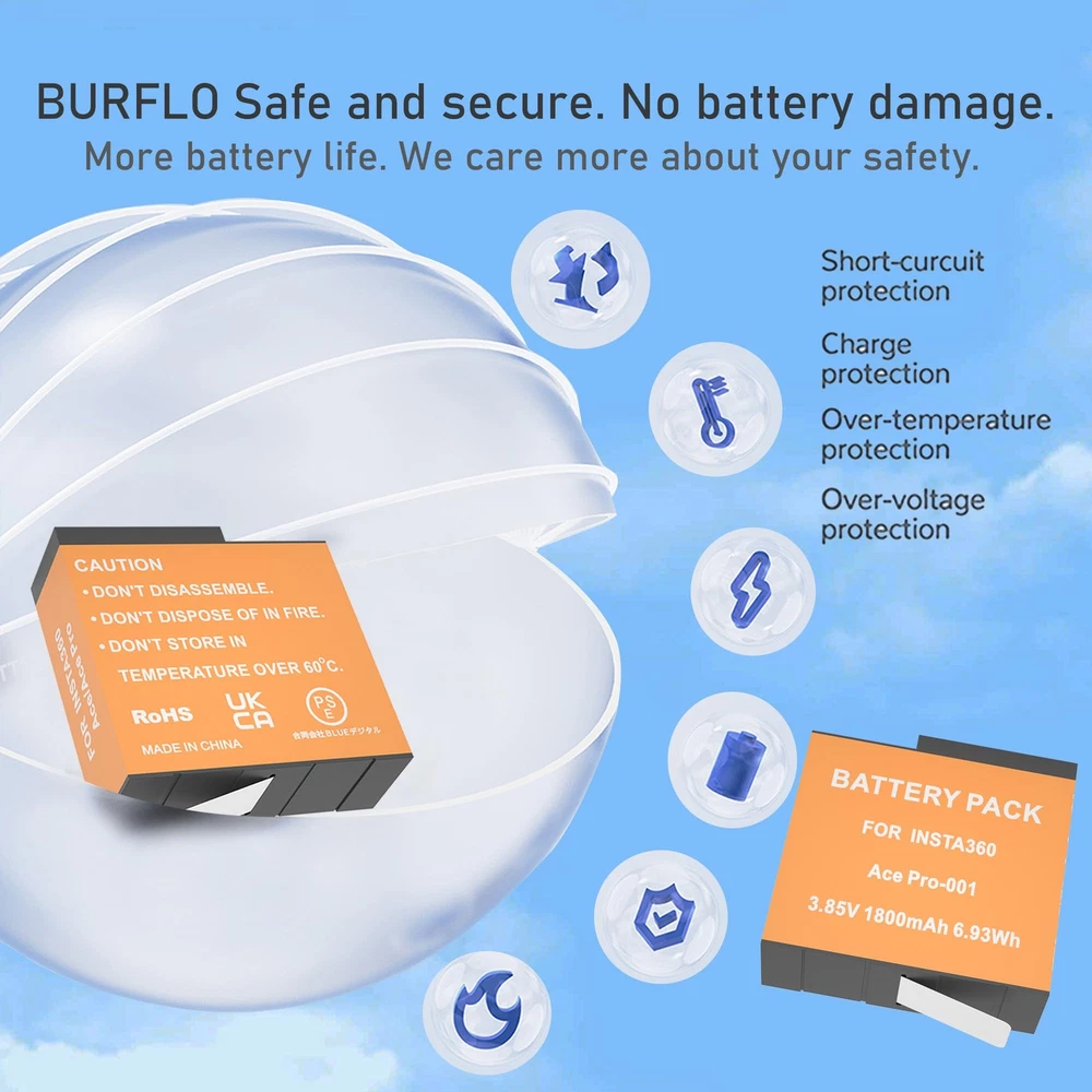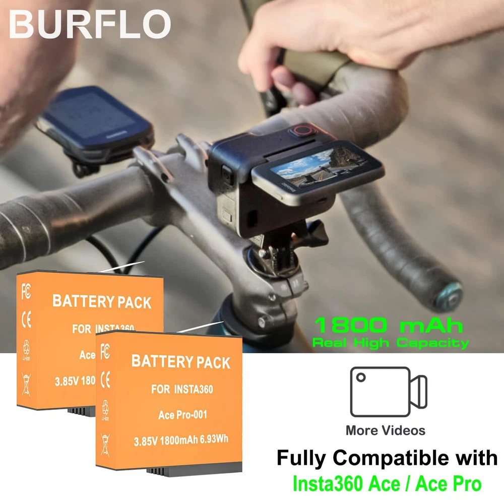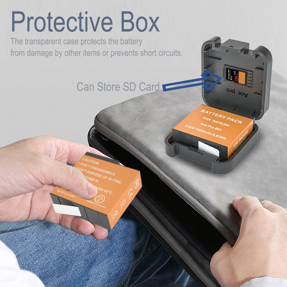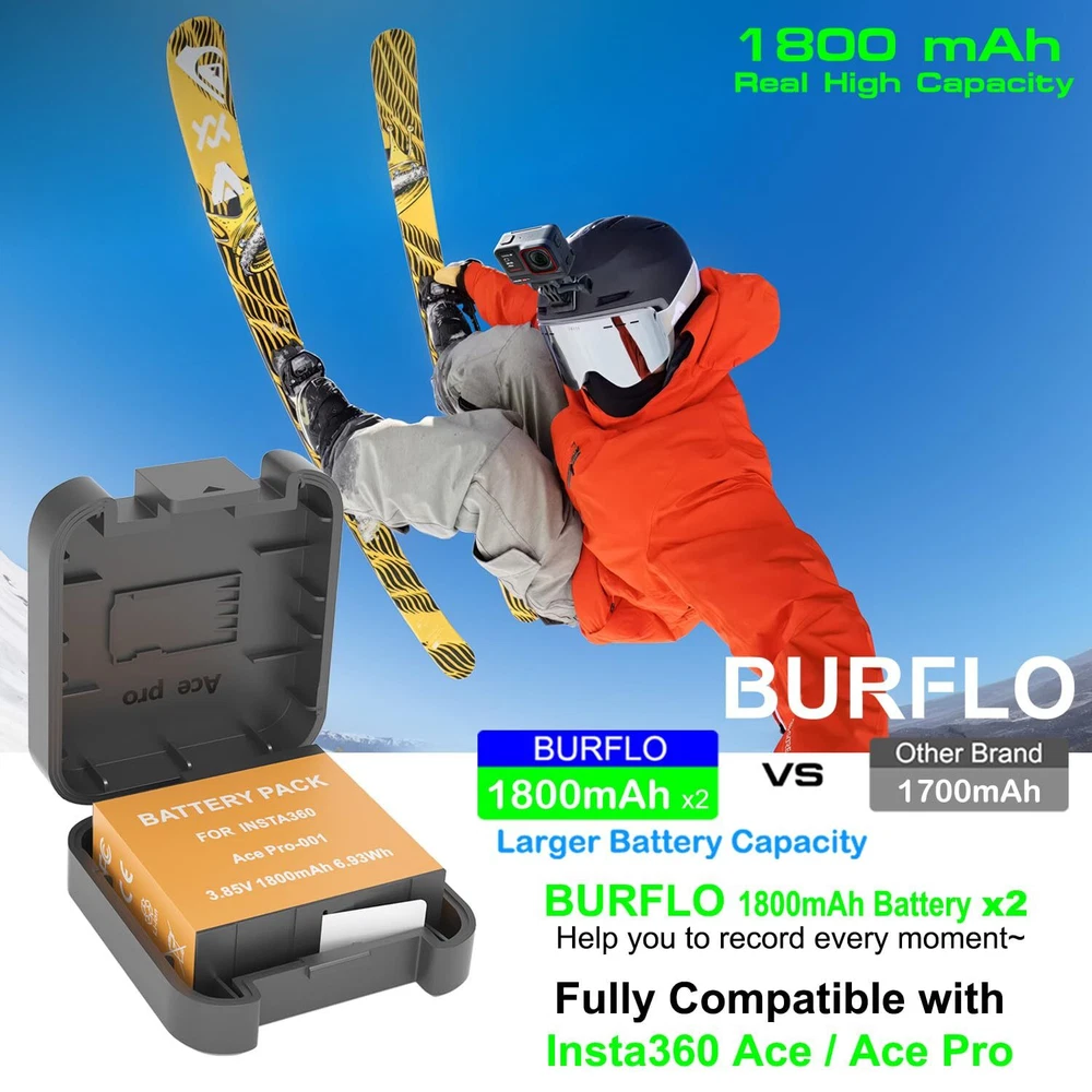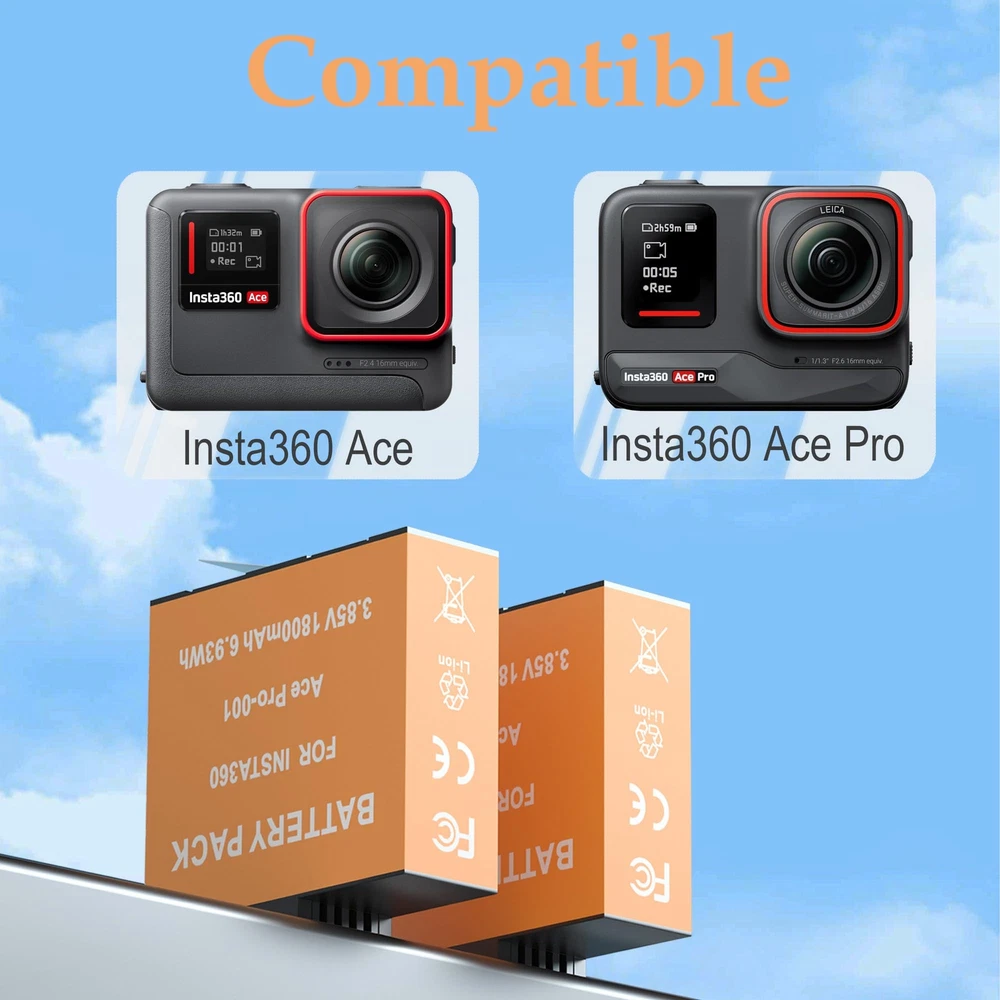 ✅【Fully Compatibility】battery Fit for Insta360 Ace / Ace Action CINSAAJA CINSBAJA 1ICP6/31/35. Battery Capacity: 1800mAh 3.85V 6.93Wh. 2-Pack Batteries accessories help to record every moment with you. ✅【Super High Capacity】2 Pack 1800mAh Rechargeable Battery Replace for Insta 360 Ace / Ace Battery double your running time, extending shooting time. No memory effects so that can protect your well. ✅【Storage Battery Box】Boxes can 2pcs SD cards. Easy to carry and protects your batteries from damage. ✅【Multiple Protection】High Quality Battery built with multiple circuit protection (over-charging, over-power,short-circuit, high-temperature,over voltage and battery PTC protection) ✅【What will you get?】2 x 1800mAh replace for Insta360 Ace / Ace battery;2 x Storage Battery Box;