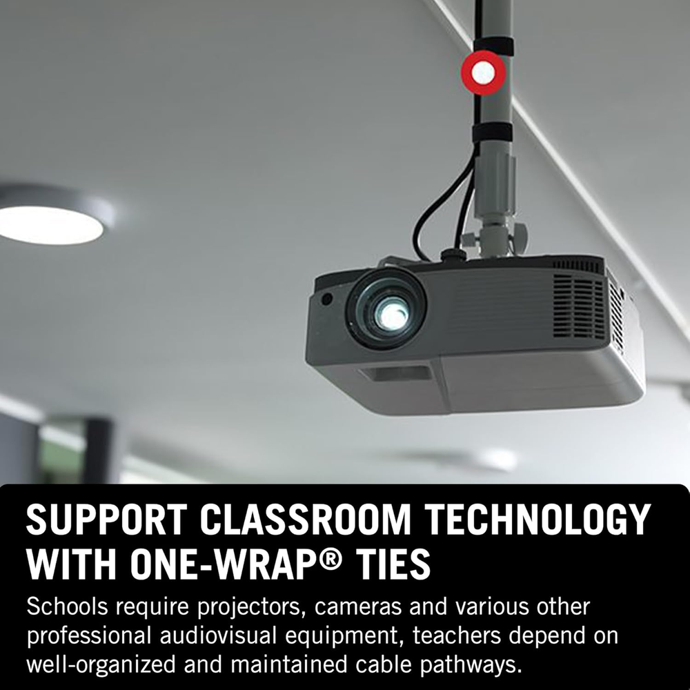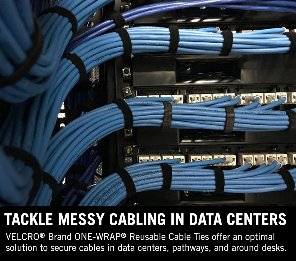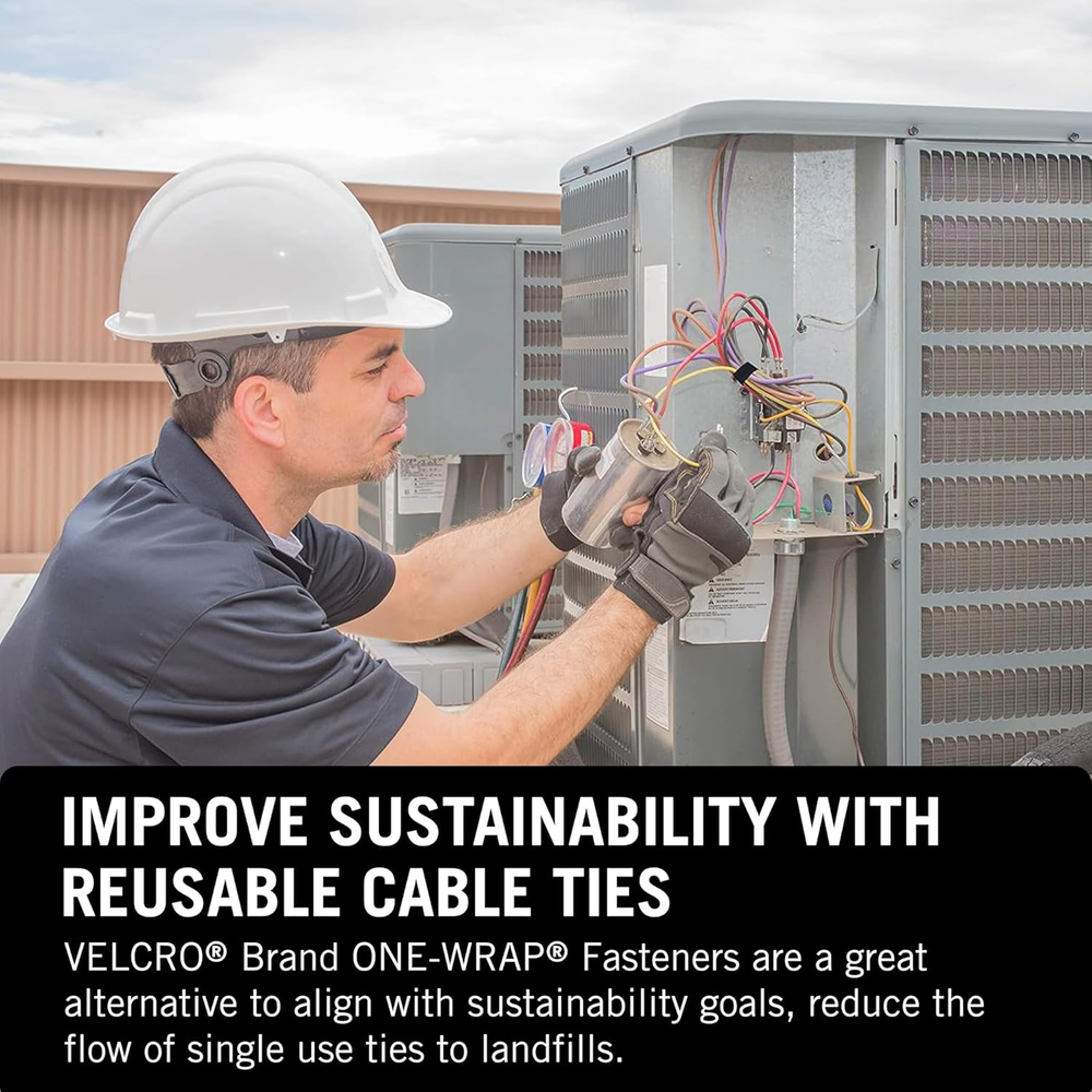 IMPROVE SUSTAINABILITY WITH REUSABLE CABLE TIES: VELCRO Brand ONE-WRAP fasteners are a great alternative to align with sustainability goals by reducing the flow of single use plastic ties to landfills CABLE MANAGEMENT FOR INSTALLERS AND CONTRACTORS: ONE-WRAP Tape rolls can be easily removed and reused multiple times to maximize its life and reduce waste on the job. The hook and loop material is strong enough to hold large bundles but flexible to prevent restriction MINIMIZE CABLE DAMAGE - Easy to open and close, reducing the need for sharp tools that can cause injury to the user and damage to the cable. The soft material also contours to curves in cable pathways which prevents strained or crushed cables TACKLE MESSY CABLING IN DATA CENTERS: ONE-WRAP reusable cable ties offer an optimal solution to secure cables in data centers, in cable pathways and around desks. Perfect for computer, appliance and electronics wire management and organization Model Number: 1801-OW-PB/B-75 - country of origin: United States VELCRO Brand ONE-WRAP Tape improves contractors’ jobs, simplifying the process of installation and changes. The easy-use closure needs no tools and soft material contours to curves in cable pathways.