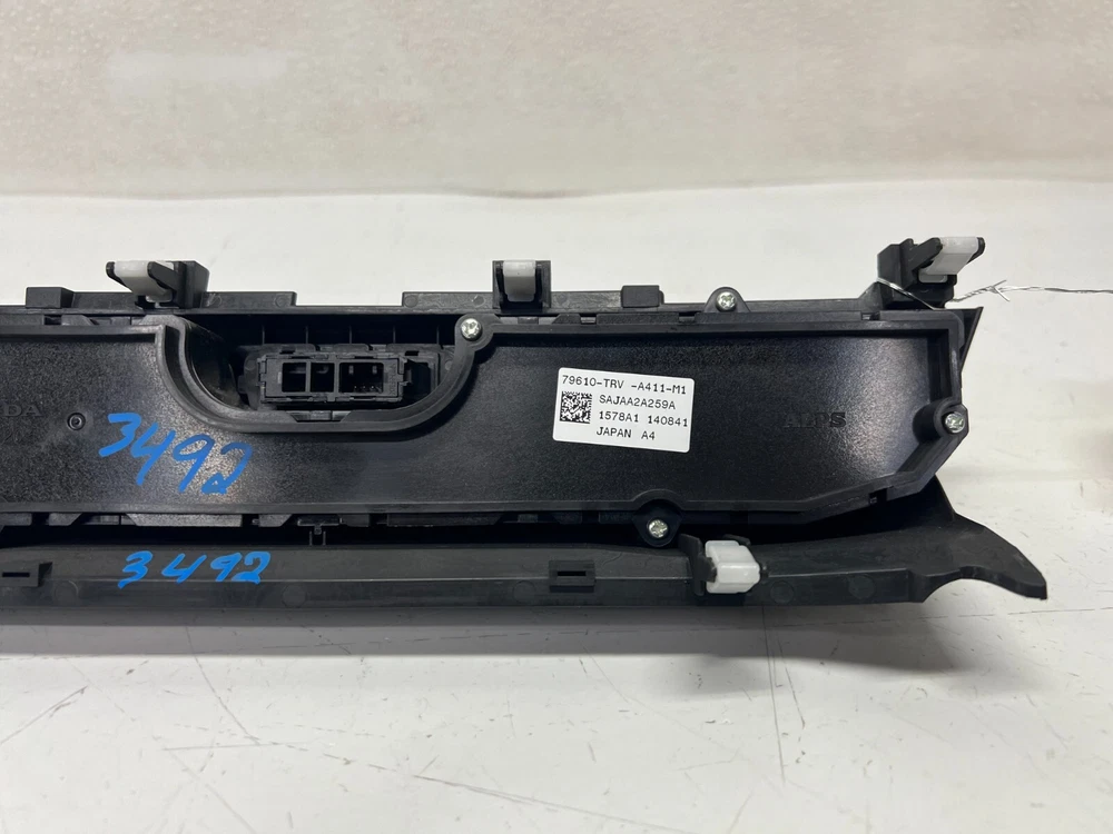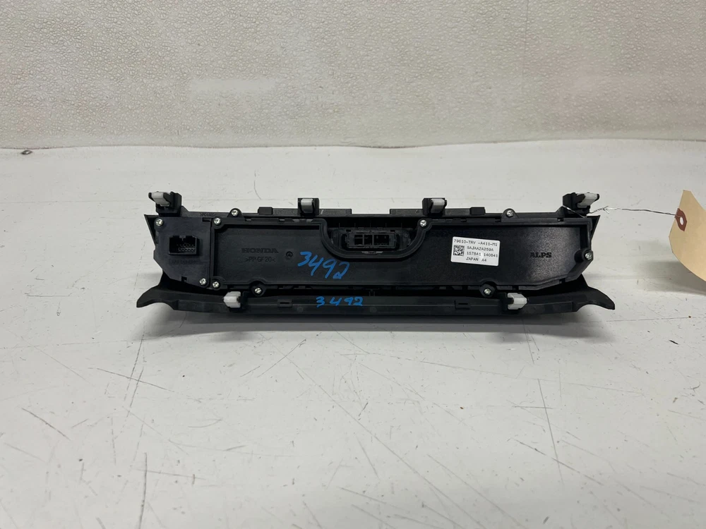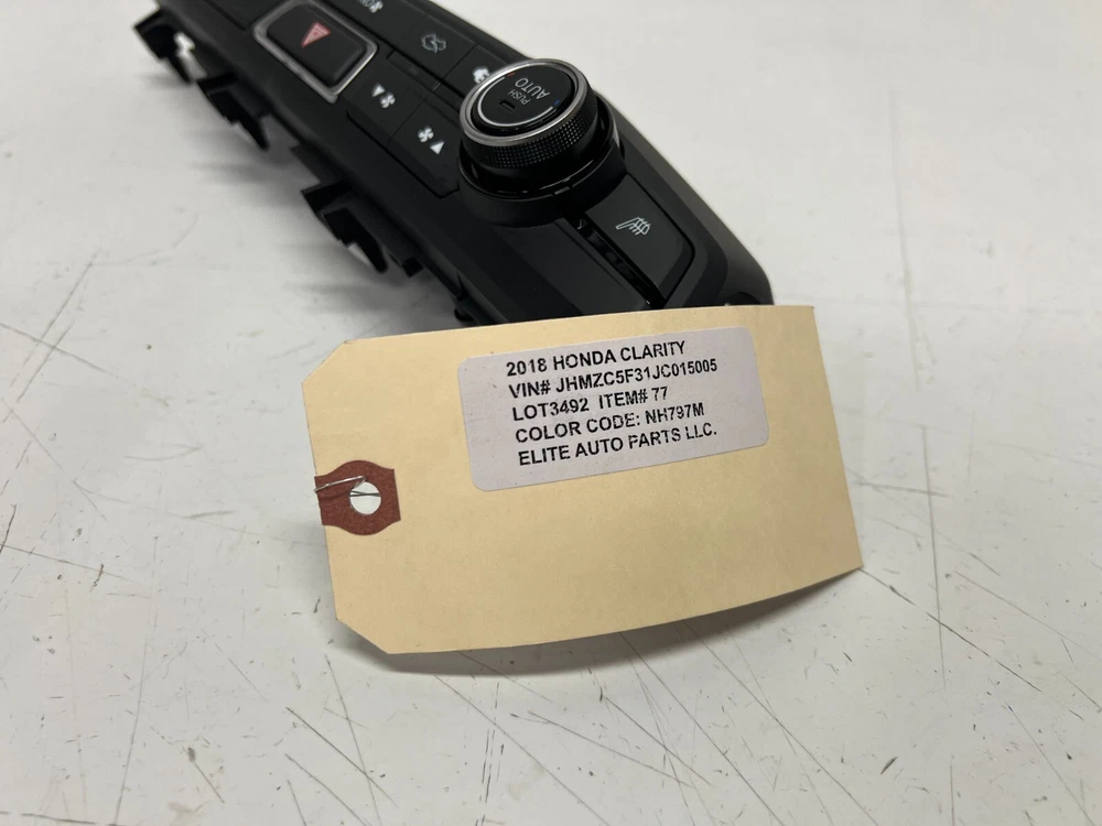 ELITE AUTO PART 2018-2019 HONDA CLARITY A/C HEATER TEMPERATURE CLIMATE CONTROL PANEL , GOOD USED CONDITION . LOT3492 # 77 part #OEM Look through pictures caref ully and make sure this is exactly the part you are looking for. What yo u see is what you will receive. DONOR CAR:--------- 2018 HONDA CLARITY VIN#----------------------------- JHMZC5F31JC015005 ENGINE:------------------------- 1.5L 4 COLOR:-------------------------- GRAY NH797M TRANSMISSION:------------ AUTOMATIC FWD MILES:------------------44K MILES