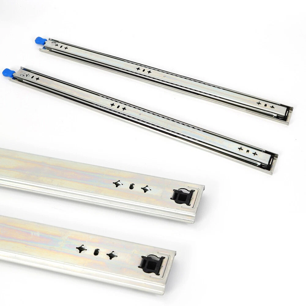 Features: 1. The surface is coated with high density zinc metal, which can effectively prevent the corrosion of the product surface and prolong the service life of the product. 2. Anti-skid rubber pad, increase friction, put back track colloidal fall and open automatically after closing. 3. Anti-skid device with lock, suitable for heavy industrial equipment. 4. Solid steel ball, check can bear 120 KG (the longer the pull out, the smaller the load). 5. Three-section track design, effective load-bearing, precise contraction. Package Included: 1 Pair Heavy Slide (excluding mounting brackets and screws) Note: -Due to different producing batches, product details might be a little different. If you minding the difference, please buy it carefully. -Please allow 1-3MM differs due to manual mea 18-40" Heavy-duty Drawer Slides with Lock Ball Bearing Full Extension 1 Pair HOT Description This is a new heavy-duty lock slide rail with good stability, small swing, smooth sliding, easy to use, suitable for all kinds of cupboard, tool cabinets and other large equipment, is the furniture industry, caravan and industrial field of high-quality choice. Specification: Colour: Silver Type: Heavy slides Material: high quality cold rolled sheet Bearing capacity: 120KG Surface treatment: blue zinc, electrophoretic black Installation Form: Drawer Side Installation Specifications: 18"(450mm),20"(500mm),22"(550mm),24 ” (600mm),28"(700mm),32" (800mm),36(900mm) ” ,40 ” (1000mm). Origin Length: 17.7 ", 19.6”,21.6", 23.6”,27.5 ", 31.4",35.4”,39.3”. Extended Length: 35.4 ",39.3 ” , 43.3",47.2 ” , 55.1",62.9",70.8 ” ,78.7 ” . Features: 1. The surface is coated with high density zinc metal, which can effectively prevent the corrosion of the product surface and prolong the service life of the product. 2. Anti-skid rubber pad, increase friction, put back track colloidal fall and open automatically after closing. 3. Anti-skid device with lock, suitable for heavy industrial equipment. 4. Solid steel ball, check can bear 120 KG (the longer the pull out, the smaller the load). 5. Three-section track design, effective load-bearing, precise contraction. Package Included: 1 Pair Heavy Slide (excluding mounting brackets and screws) Note: -Due to different producing batches, product details might be a little different. If you minding the difference, please buy it carefully. -Please allow 1-3MM differs due to manual measurement. -Due to the different display and different light, the picture may not reflect the actual color of the item. Thanks for your understanding. note:The uppermost layer of the slide rail is divided into left and right. After it is completely pulled out, please return to the original way. If it is replaced and installed forcibly, it will not work In consideration of safety, after the drawer is loaded, it will be dangerous to separate, so the heavy-duty slide rails cannot be separated. In consideration of safety, after the drawer is loaded, it will be dangerous to separate, so the heavy-duty slide rails cannot be separated. Payment Delivery details Terms of sales About us Contact us Payment We accept ebay payment 。 Fees such as import duties, taxes are not included in the item price or shipping costs. These charges are the buyer's responsibility. Delivery details Shipping: 2-9 working days to: USA Terms of sales We maintain high standards of excellence and strive for hundred percent customer satisfaction. Feedback is very important to us. We hope that you contact us immediately before you give neutral or negative feedback, so that we can address your concerns. It is impossible to address issues if we do not know about them! About us Your satis faction is our ultimate goal. We work hard to earn your trust and future business. Our certified technicians have tested each item before shipping. The unit comes with 1 year limited warranty on all manufacturing defects. a) If you receive a defective item, you may return it or ask for a discount. Please contact us within 14 days after you receive the package. b) What you returned must be intact and in its original packaging as re? u. Customer is responsible for shipping costs of the returned item. c) We will cover the cost of shipping back t with the shipping rate indicated in the registration page. We will send you a new unit or refund the full payment you paid. Thank you. Contact us Business Hour Business Hour: Monday To Friday: 8:30 AM to 5:00 PM (Beijing China time) Due to time zones, our reply to your questions may not be immediately. But within above working time, we will reply your email within 24 hours. If it's non-workdays, please kindly be patient and wait till Monday. Please contact us with ebay message. Please feel free to contact us if you have any questions. Monday To Friday: 8:30 AM to 5:00 PM (Beijing China time) Due to time zones, our reply to your questions may not be immediately. But within above working time, we will reply your email within 24 hours. If it's non-workdays, please kindly be patient and wait till Monday. Please contact us with ebay message. Please feel free to contact us if you have any questions. Feature stable performance and high quality Manufacturer Warranty 2 Years shipping notice Can not ship to Puerto Rico,Alaska/Hawaii Item location CA /NJ /Austell Item Height Does Not Apply Item Length Does Not Apply Suitable For all kinds of cupboard Item Width Does Not Apply Material high quality cold rolled sheet Colour Silver Type Heavy slides Bearing capacity 120KG Surface treatment blue zinc, electrophoretic black Installation Form Drawer Side Installation Color Silver Brand SENDERPICK MPN Does not apply