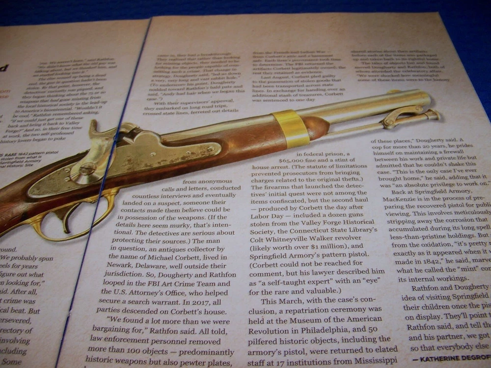 UP FOR SALE IS AN ORIGINAL PRINT 2-PAGE ARTICLE ON... .... 1842 PATTERN PISTOL "STOLEN 50 YEARS AGO-RECOVERED"..STOLEN FROM SPRINGFIELD ARMORY MUSEUM IN WESTERN MASSACHUSETTS IN 1971 Page/s size: APROX: 8 1/2" X 11 ".. SUBJECT:. .. 1842 PATTERN PISTOL "STOLEN 50 YEARS AGO-RECOVERED" AUTHOR/ARTIST: KATHERINE DEGROFF YEAR: 2023 ORIGINAL PRINT SCALE: N/A ARTICLE FEATURES: 2-PAGE PHOTO PAGES WITH SHORT HISTORY CONDITION: GREAT........... **SOLD FOR 2-PAGE/S ONLY (AS DESCRIBED)...ANY OTHER ARTICLE ON BACK OF DRAWINGS/ARTICLE ARE NOT REPRESENTED IN THIS AUCTION!*** (REMEMEBER SOME OF THESE ARTICLES ARE EXTRMELY OLD AND RARE...SOME MAY HAVE SOME BORDER DISCOLORATION/SMALL EDGE CHIPS/PAGE DISCOLORATION/TAPE ON VERY EDGES/SMALL WRINKLES).....SEE CONDITION AND NOTES LISTED ABOVE AS TO EACH ARTICLE! **THESE ARE AIRCRAFT ARTICLES THAT HAVE BEEN EXTRACTED FROM VINTAGE MAGAZINES/ECT,.. AND ARE INDIVIDUAL PAGES OF EACH SUBJECT AND SOLD AS ARTICLES ON EACH SAID AIRCRAFT AS LISTED ABOVE!...... NOT SOLD AS A COMPLETE MAGAZINE or BOOKLET!!! **all articles are shipped flat on cardboard flat and mail flat in manila envelope to INSURE condition! ** I DO OFFER COMBINED SHIPPING ON MULTIPLE ITEMS PURCHASED