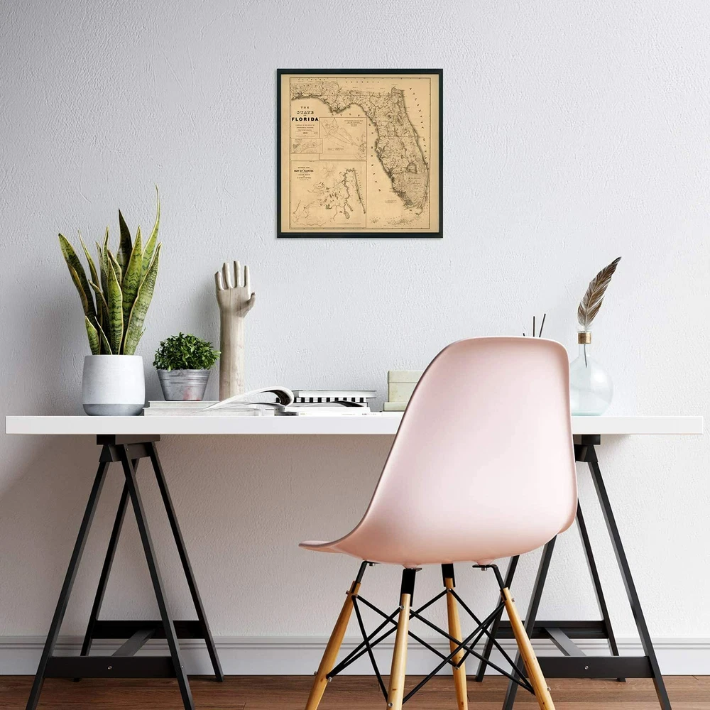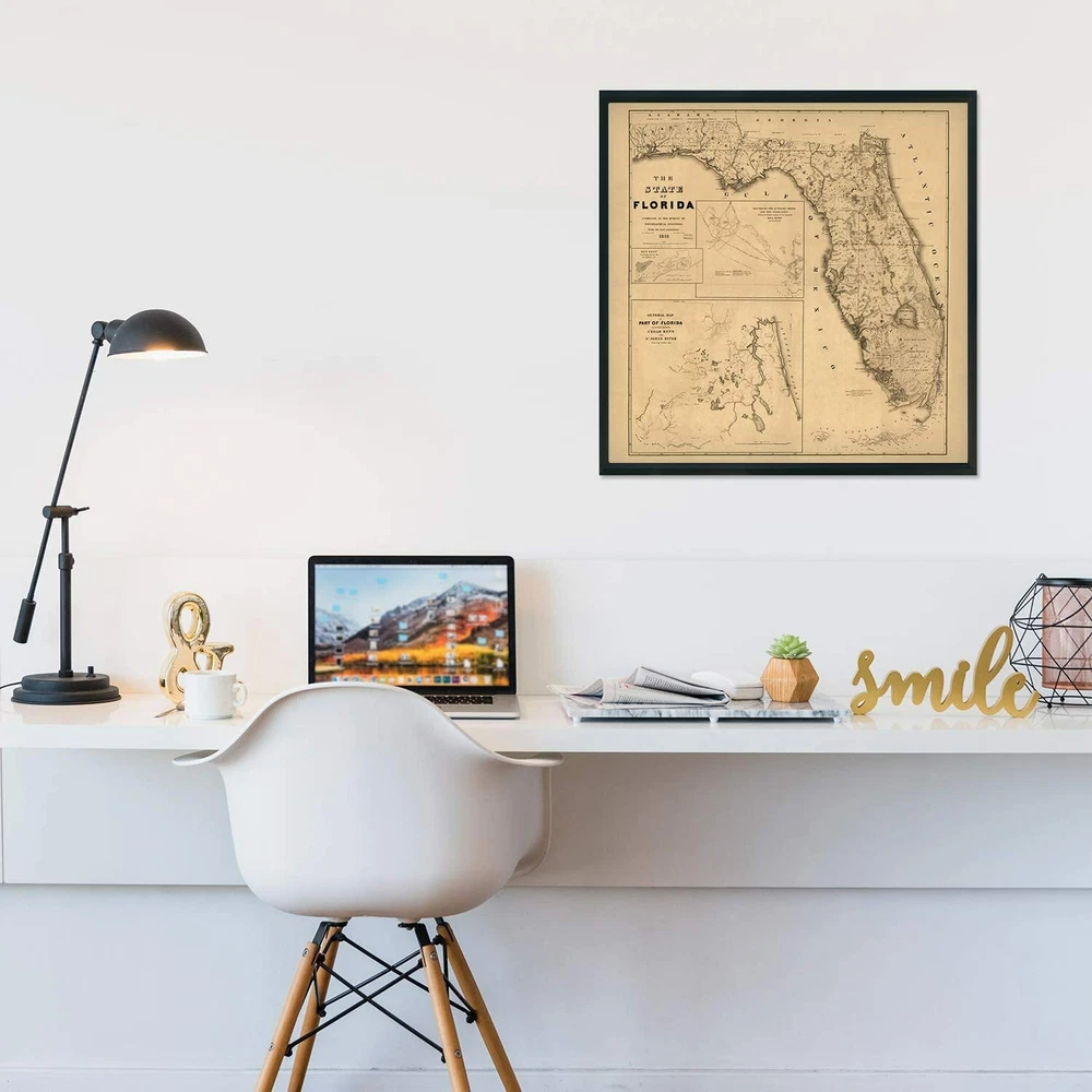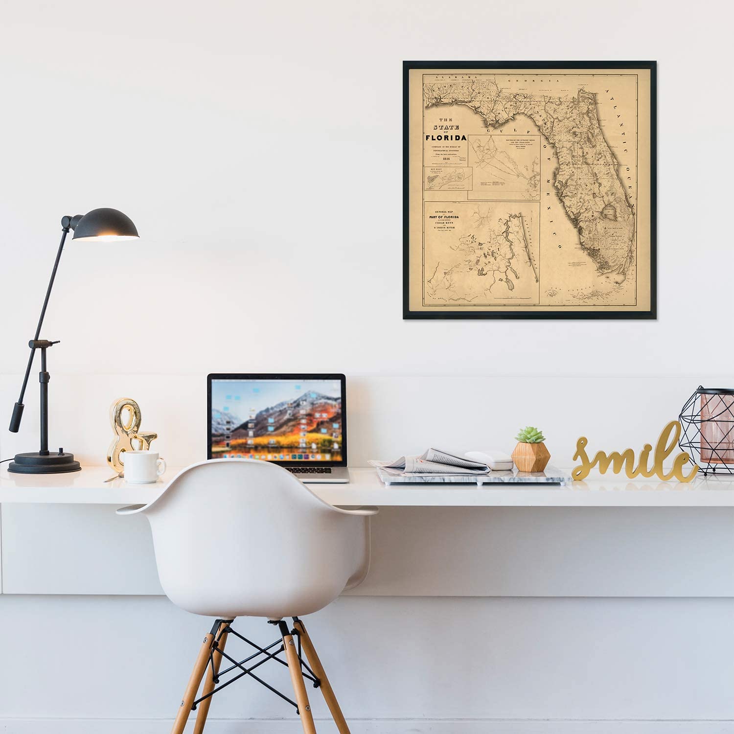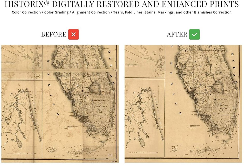Feature Points VINTAGE MAP REPRODUCTION: You’ll love this high quality historic reproduction of 1846 Florida Map Poster. Our museum quality maps are archival grade, which means it will look great and last without fading for over 100 years. Our print to order maps are made in the USA and each map is inspected for quality. This beautiful artwork is a perfect addition to your themed decor. Vintage maps look great in the home, study or office. They make a perfect gift as well. MUSEUM QUALITY: This high quality map print will be a great addition to your vintage-themed wall. Don't waste money on cheap-looking, thin paper posters. We use thick, fine art print quality matte paper. Our professional’s choice matte paper displays artwork in high detail without glare. The color is vibrant and text is easy to read. When framed, this map looks absolutely stunning. A LOOK BACK AT HISTORY: This is an impressive, historic reproduction of 1846 Florida Map Poster. This print is from an original found in the maps and geography division of the US Library of Congress. A true piece of history. See our product description section for more fascinating information about this historic map and its significance. READY TO FRAME: This print includes a 0.2 inch border for a perfect frame fit and look. Our maps are designed to fit easy-to-find standard frame sizes, saving you money from having to pay for a custom frame. Each map is inspected for quality and shipped in a rigid tube. HISTORIX: We love history and art. Sometimes old maps have tears, folds, separations and other blemishes. We digitally restore and enhance maps while keeping its historical character. All our maps are proudly made in the USA. Customers all over the world love our vintage maps and we know you will too. Additional Information Distinguished by four distinct regions this 1846 map of the State of Florida shows a land in a time of both growth and transformation. The significance of these regions to the history of the state is unique in that East Florida and West Florida were merged into a territory in 1822. Disputes with Spain and indigenous peoples continued throughout Middle Florida and South Florida. With the annexation of East and West Florida the territories were finally unified and Florida became the 27th state in 1845. This was the first registered map depicting Florida as a unified state and includes borders with Georgia and Alabama showing the nation emerging into something recognizable as modern American geography. Home to Everglades National Park, the largest protected wilderness area east of the Mississippi, Florida has always been renowned as an outdoorsman’s paradise. Florida is also the site of the Ernest Hemingway Home and Museum as the noted author made his home in the Florida Keys for more than a decade and wrote some of his most important works there. The museum attracts visitors from across the globe and is still home to his famous five toed cats. Our museum quality, restored map is printed with archival ink on heavy matte stock and comes ready to frame in a sturdy cardboard tube ensuring safe travel and 100% satisfaction. This is the perfect gift for the outdoorsman, Hemingway fan, or historian in your life and makes the perfect addition to any office, lodge, library, or classroom.
