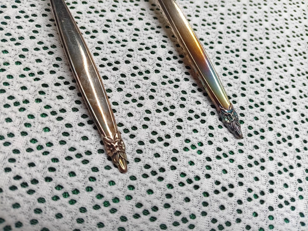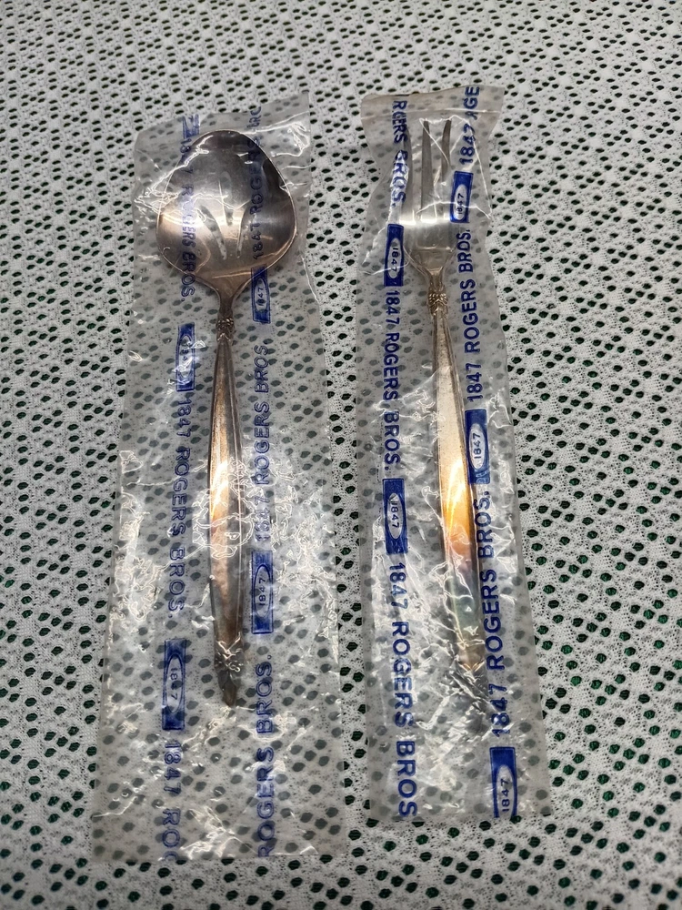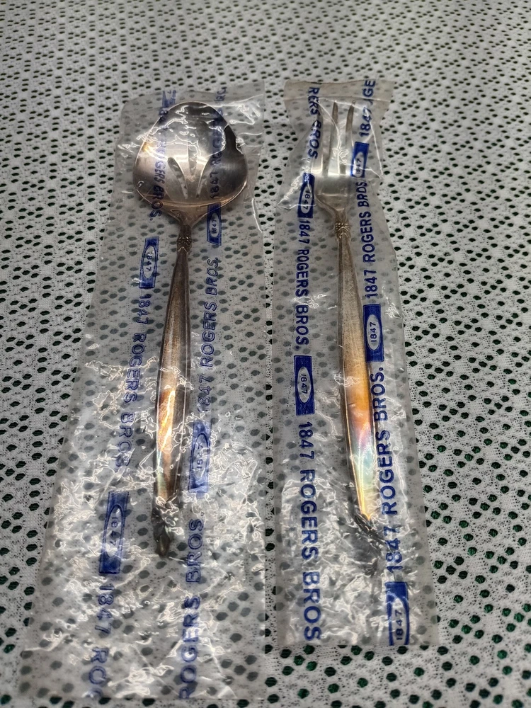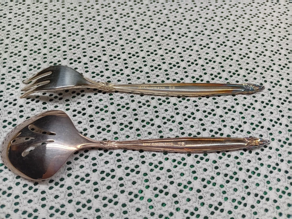 1847 Rogers Bros GARLAND Condiment Spoon & Fork Silverware Flatware Set. Approx 6"