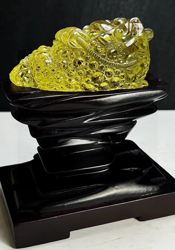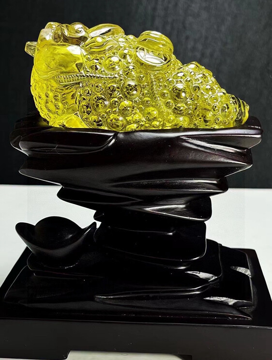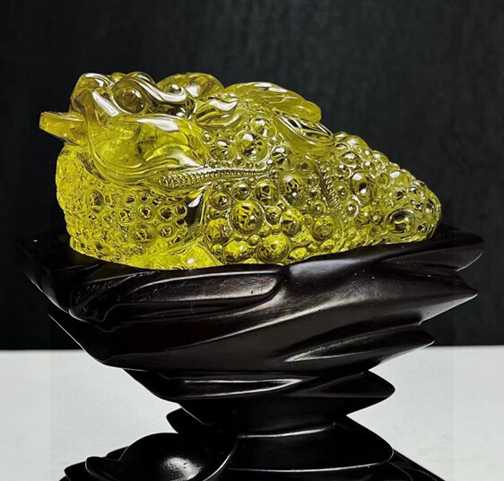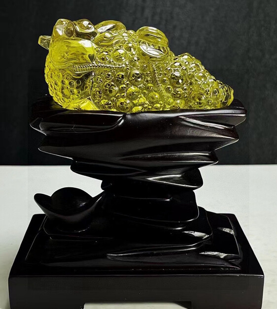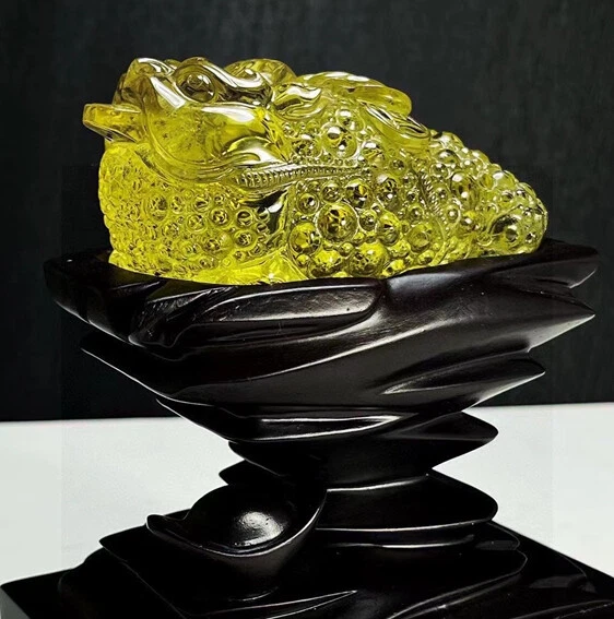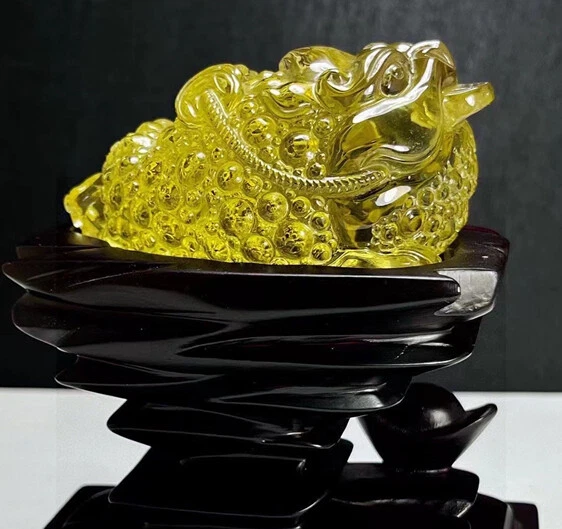 1.86LB Natural Citrine Quartz Golden Toad Skull Crystal with Stand
