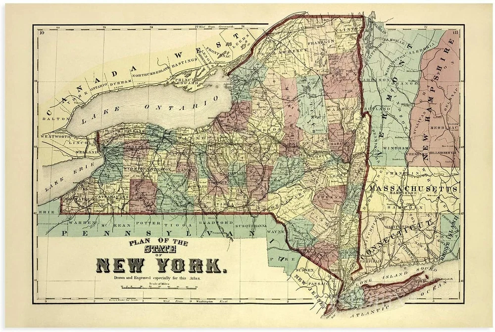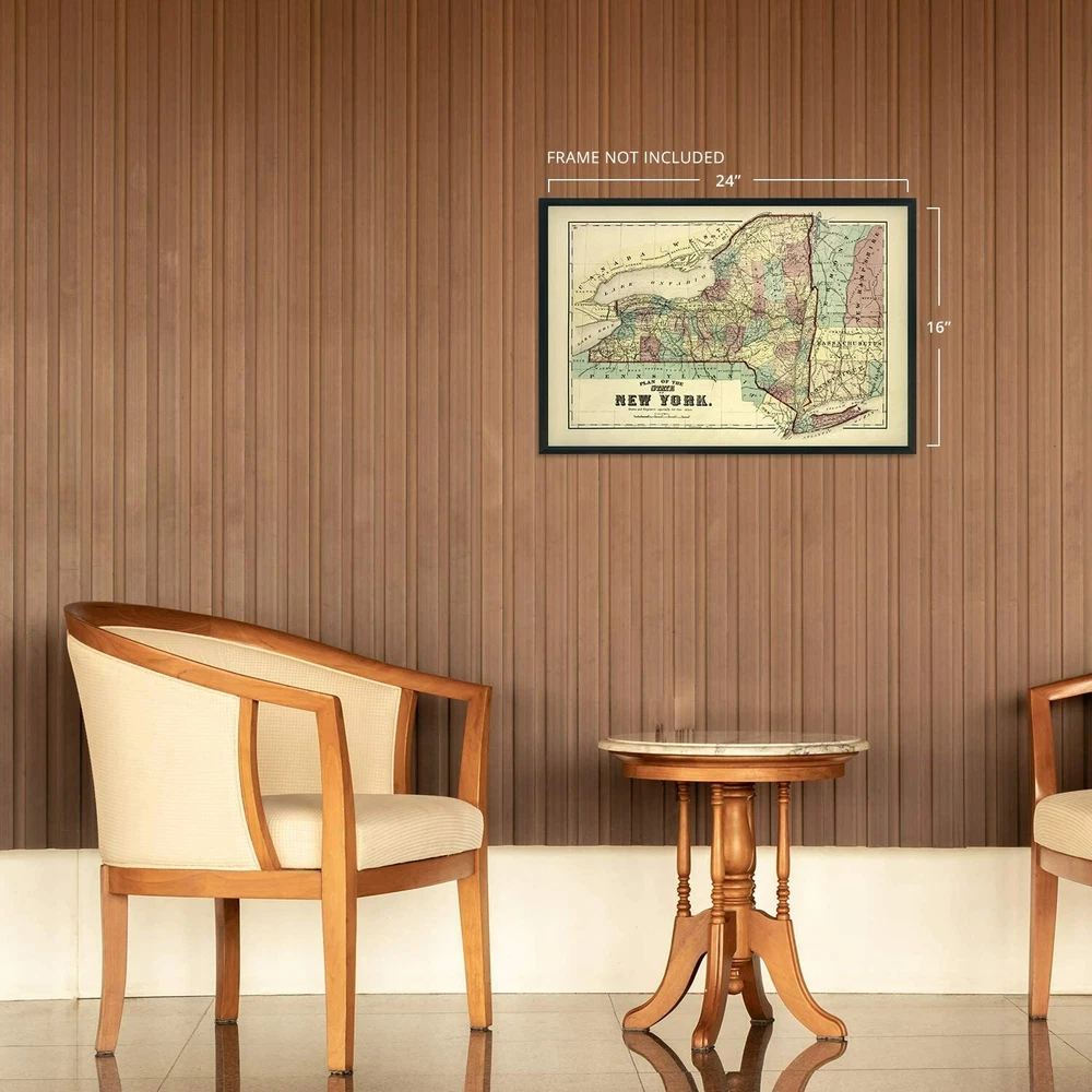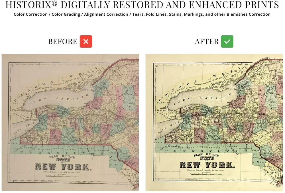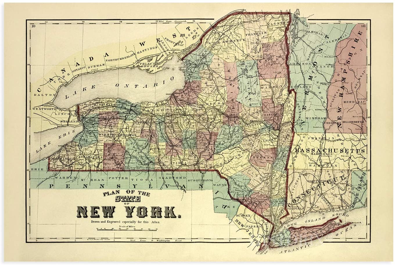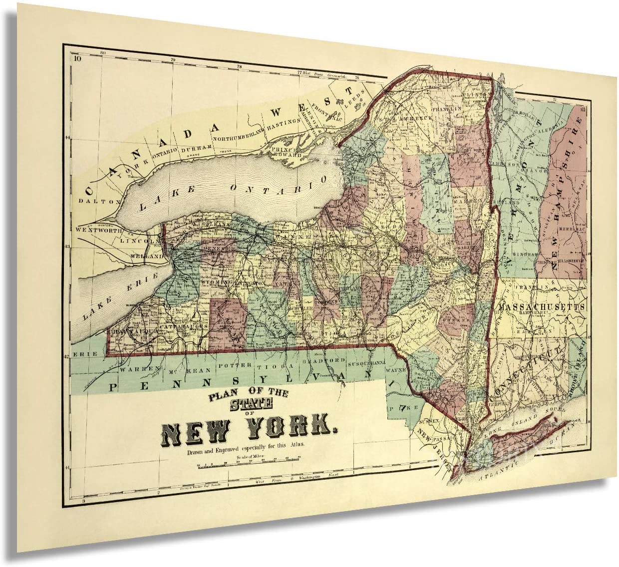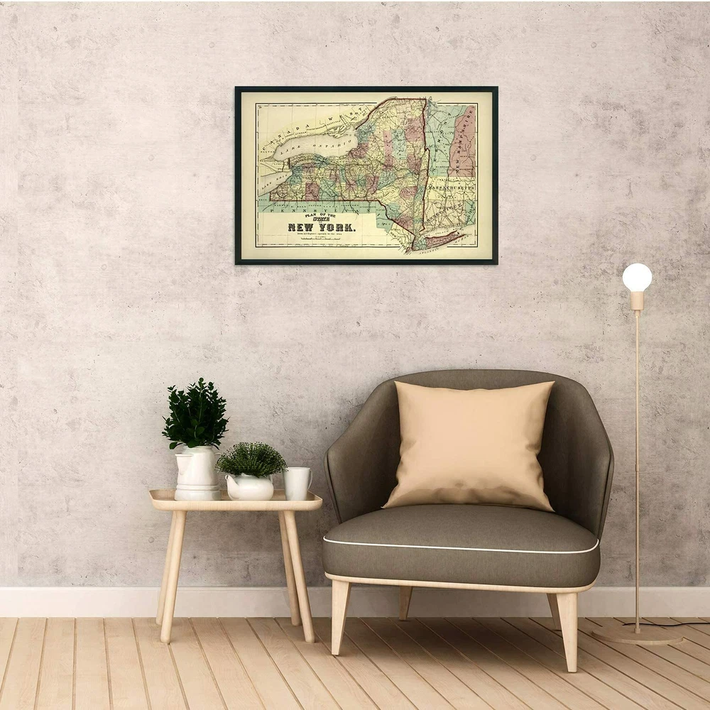 Feature Points VINTAGE MAP REPRODUCTION: You’ll love this high quality historic reproduction of 1875 New York State Map. Our museum quality maps are archival grade, which means it will look great and last without fading for over 100 years. Our print to order maps are made in the USA and each map is inspected for quality. This beautiful artwork is a perfect addition to your themed decor. Vintage maps look great in the home, study or office. They make a perfect gift as well. MUSEUM QUALITY: This high quality map print will be a great addition to your vintage-themed wall. Don't waste money on cheap-looking, thin paper posters. We use thick, fine art print quality matte paper. Our professional’s choice matte paper displays artwork in high detail without glare. The color is vibrant and text is easy to read. When framed, this map looks absolutely stunning. A LOOK BACK AT HISTORY: This is an impressive, historic reproduction of 1875 New York State Map. This print is from an original found in the maps and geography division of the US Library of Congress. A true piece of history. See our product description section for more fascinating information about this historic map and its significance. READY TO FRAME: This print includes a 0.2 inch border for a perfect frame fit and look. Our maps are designed to fit easy-to-find standard frame sizes, saving you money from having to pay for a custom frame. Each map is inspected for quality and shipped in a rigid tube. HISTORIX: We love history and art. Sometimes old maps have tears, folds, separations and other blemishes. We digitally restore and enhance maps while keeping its historical character. All our maps are proudly made in the USA. Customers all over the world love our vintage maps and we know you will too. Additional Information Described by Mark Twain as the “Gilded Age,” the 1870s were a significant period for the State of New York and the nation as a whole. Published in 1875, this depiction of New York shows the State amid an economic boom spurred on by reconstruction following the conclusion of the American Civil War a decade prior. Published by prolific mapmakers Beers, Upton & Co, this distinctive illustration transports the viewer back in time and allows a glimpse into one of the most pivotal times in American History. New York City spurred prosperity for the rest go the State, and the bustling port allowed goods to flow in and out as well as immigrants. Western Europe was experiencing famine, civil unrest, and uncertainty; many immigrants came west to find communities from their home countries, welcoming them. These thriving communities established neighborhoods and would become integral to the cultures the iconic American City is known for today. Though Ellis Island would not open for another fifteen years, the city had already become one of the top destinations for Western European immigrants and would remain so. The expansion of the Erie Canal two decades prior had given New York City access to the Great Lakes and created interstate commerce routes that allowed the region to thrive. This depiction of New York State shows the iconic city coming into the modern era. Though the iconic skyscrapers would not be constructed for some twenty years, the foundation was being laid for New York to achieve grandeur. Our museum quality giclee print comes printed with archival ink on premium heavyweight matte paper. Shipped in a sturdy cardboard tube your print will arrive ready to be framed. This eye-catching New York State vintage map reproduction print makes the perfect gift for anyone that loves history and imagery.