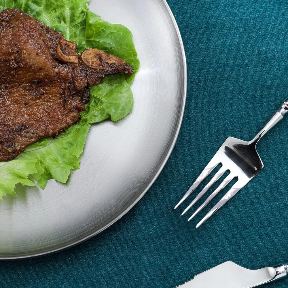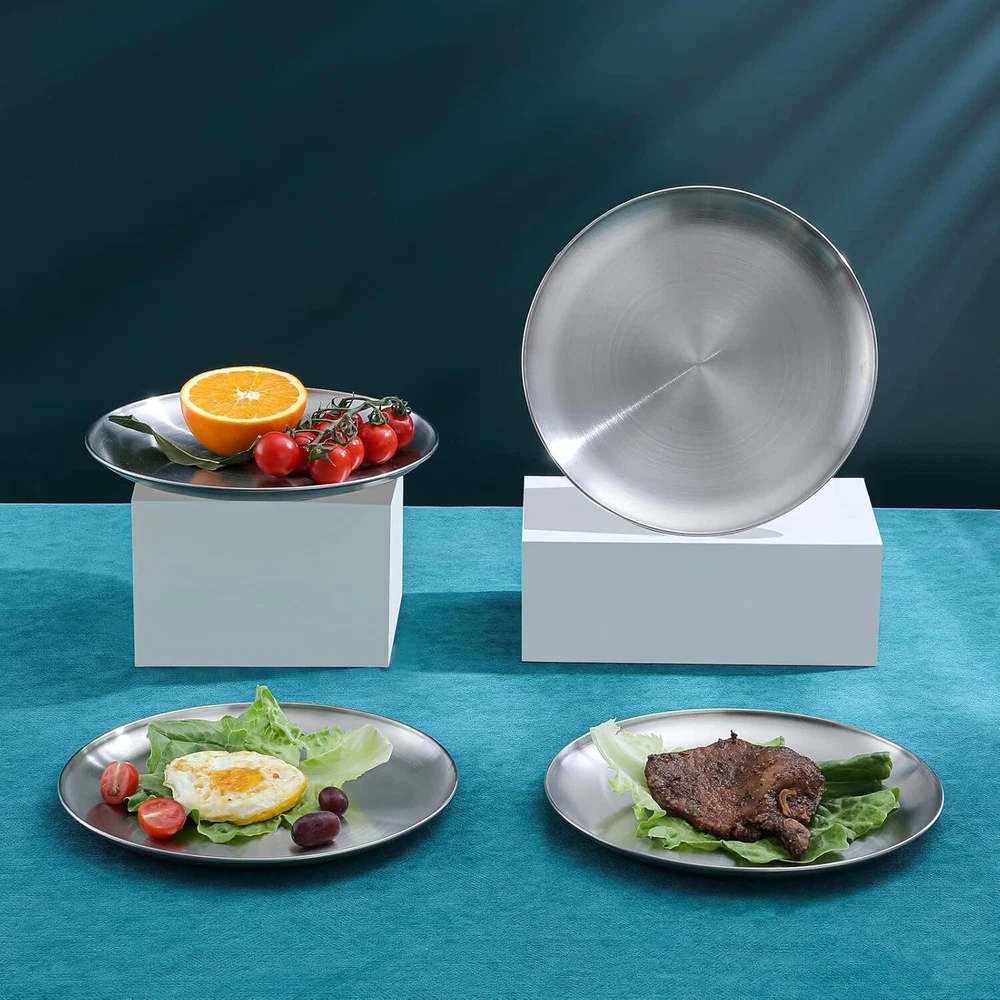 About this item 304 food grade stainless steel is a high quality steel, very strong and durable, while having good corrosion resistance and high temperature resistance, can withstand long time use and easy to clean The dinner plate measures 9 inches (23 cm) and has a large capacity designed to meet the dining needs of adults and children. It can be used for a variety of foods such as entrees, grilled meats, desserts, salads and fruits Stainless steel dinner plates are versatile, whether you are dining at home or out on a picnic or camping trip, this plate will provide you with a convenient and comfortable dining experience Whether you are a busy parent looking for a durable and safe dinner plate for your family, or a professional chef in need of high quality dinnerware for your restaurant or catering business, the 304 food grade stainless steel dinner plate is a great choice.