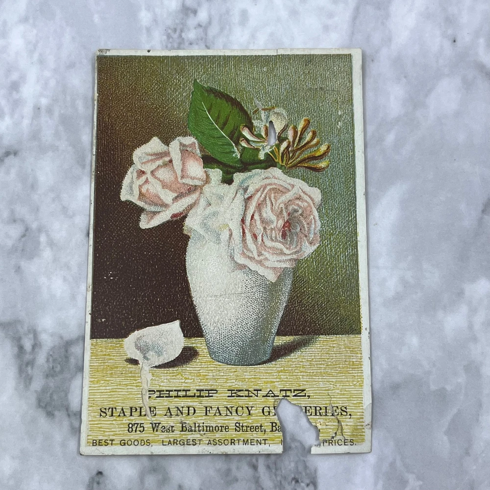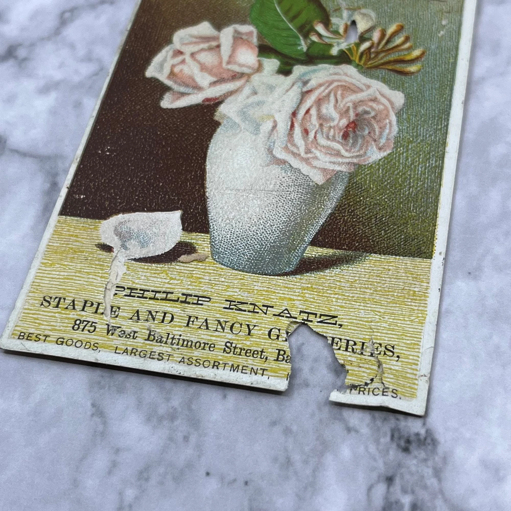 See pics for condition. 1880s Victorian Trade Card Philip Knatz Fancy Groceries Baltimore MD EA4