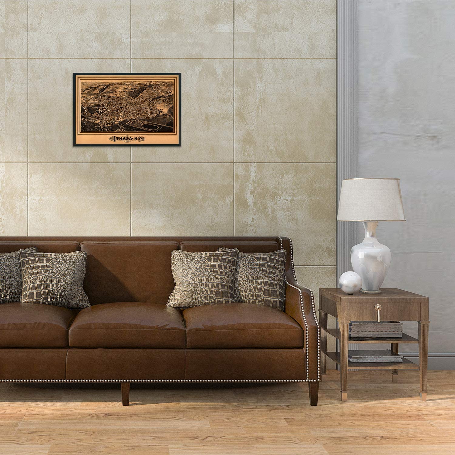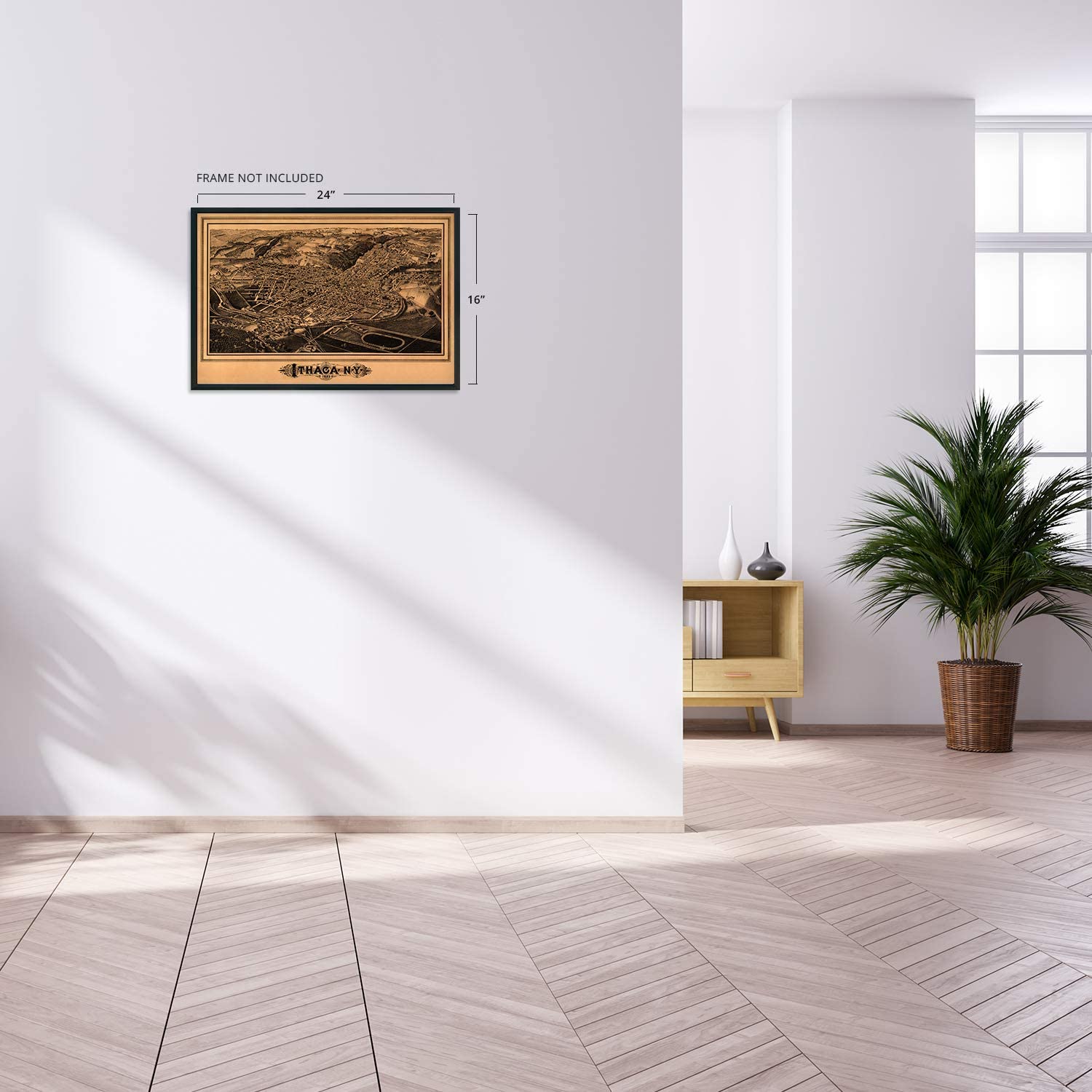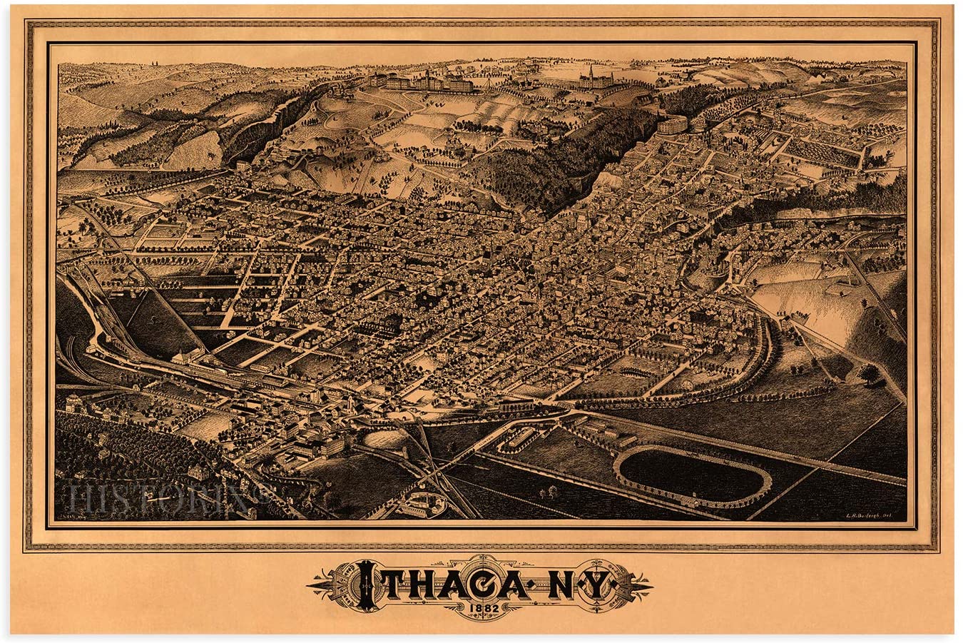Feature Points VINTAGE MAP REPRODUCTION: You’ll love this high quality historic reproduction of 1882 Ithaca New York Map Print. Our museum quality maps are archival grade, which means it will look great and last without fading for over 100 years. Our print to order maps are made in the USA and each map is inspected for quality. This beautiful artwork is a perfect addition to your themed decor. Vintage maps look great in the home, study or office. They make a perfect gift as well. MUSEUM QUALITY: This high quality map print will be a great addition to your vintage-themed wall. Don't waste money on cheap-looking, thin paper posters. We use thick, fine art print quality matte paper. Our professional’s choice matte paper displays artwork in high detail without glare. The color is vibrant and text is easy to read. When framed, this map looks absolutely stunning. A LOOK BACK AT HISTORY: This is an impressive, historic reproduction of 1882 Ithaca New York Map Print. This print is from an original found in the maps and geography division of the US Library of Congress. A true piece of history. See our product description section for more fascinating information about this historic map and its significance. READY TO FRAME: This print includes a 0.2 inch border for a perfect frame fit and look. Our maps are designed to fit easy-to-find standard frame sizes, saving you money from having to pay for a custom frame. Each map is inspected for quality and shipped in a rigid tube. HISTORIX: We love history and art. Sometimes old maps have tears, folds, separations and other blemishes. We digitally restore and enhance maps while keeping its historical character. All our maps are proudly made in the USA. Customers all over the world love our vintage maps and we know you will too. Additional Information Produced by prolific American lithographer and illustrator L.R. Burleigh, this bird’s eye perspective, shows Ithaca, NY in a time of significant growth and transformation. Cornell University had been founded only 14 years earlier, and the little town on Lake Cayuga was burgeoning with expanded trade and manufacturing industries. The Ivy League university has attracted students internationally and is amongst the most respected in the nation. Ezra Cornell’s founding principle held that any person should have access to instruction in their chosen field, and it was established as a private, non-sectarian institution. Burleigh’s distinctive aesthetic was popular during this era, and these illustrations were bought by merchants and residents alike as a way to demonstrate their civic pride. His work primarily focused on cities in the Northeast and is featured in the Smithsonian Art museum. This signature style immediately transports the viewer back in time. The 1880s marked the development of Ithaca from a small town to a center of trade; trolley was built, and railway hubs expanded access to the finger lake region. The region supported numerous dairies and small farms, and Cornell’s dedicated dairy research center has long supported New York’s milk and yogurt industries. While the city had not been impacted much by the Civil War, the decades following its end presented the opportunity for the region to expand its rail access. While the steep hills and proximity to Lake Cayuga posed engineering challenges, Cornell financed the project to help foster growth and prosperity for the city. Our museum quality giclee print comes printed with archival ink on premium heavyweight matte paper. Shipped in a sturdy cardboard tube your print will arrive ready to be framed. This eye-catching vintage map reproduction print makes the perfect gift for anyone that loves history and imagery.
