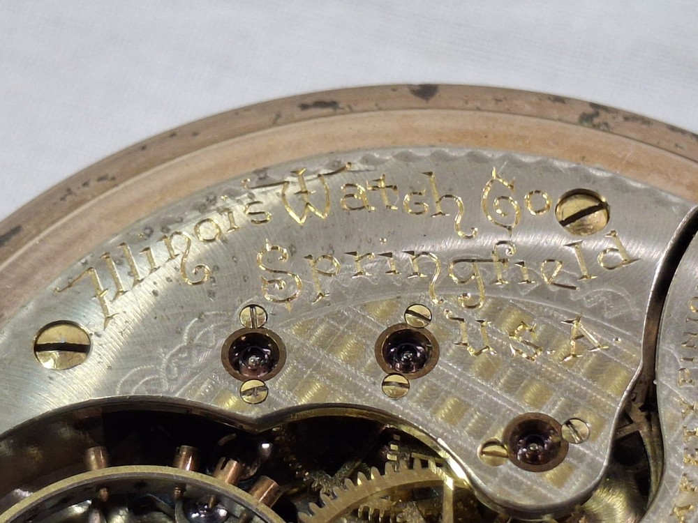 The 1896 Wadsworth Pilot Pocket Watch is a luxurious timepiece with a solid yellow gold plate and a matte finish. This double plate watch features an Arabic numeral dial, 12-hour dial, and a white color scheme. It has been wound and found operational, but not tested for accuracy or duration. Manufactured in the United States in the late 19th century Illinois Watch Co,, this open-faced pocket watch is a timeless piece that exudes elegance and sophistication. Perfect for both men and women, this Wadsworth pocket watch is a classic accessory that adds a touch of luxury to any outfit.
