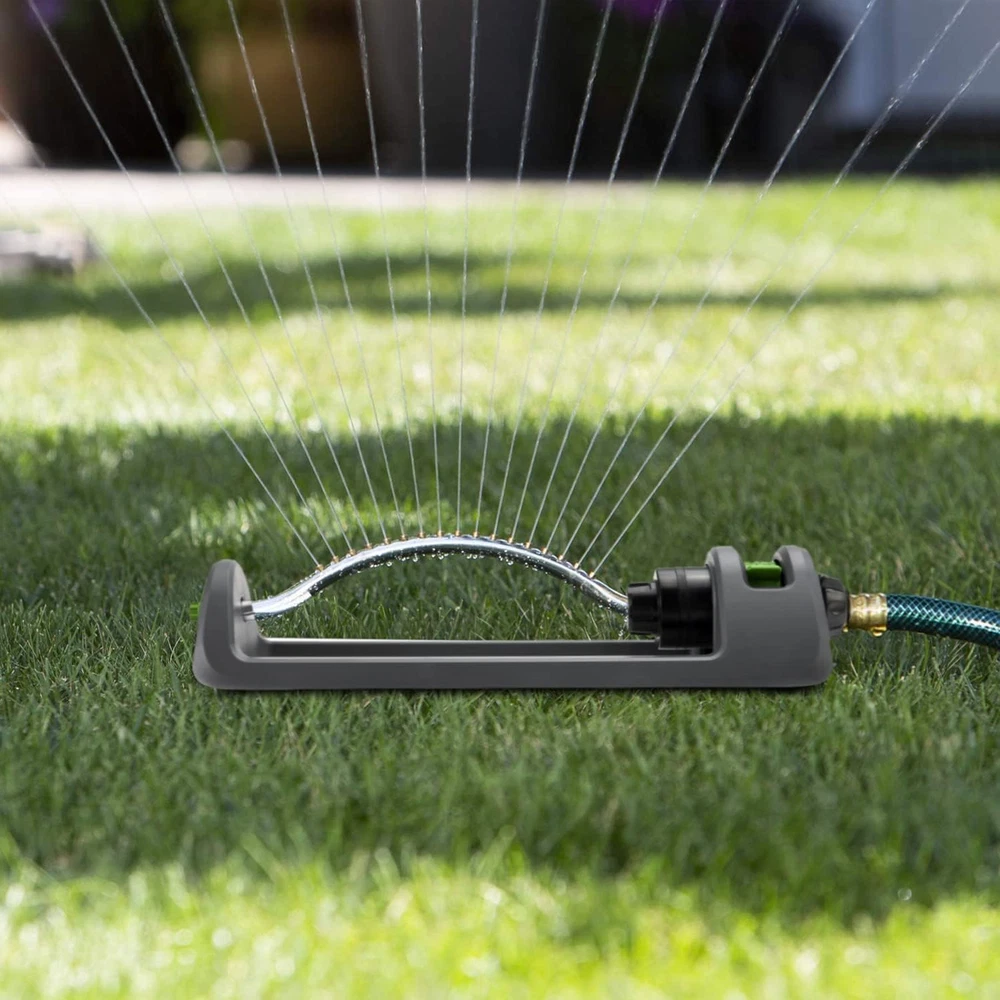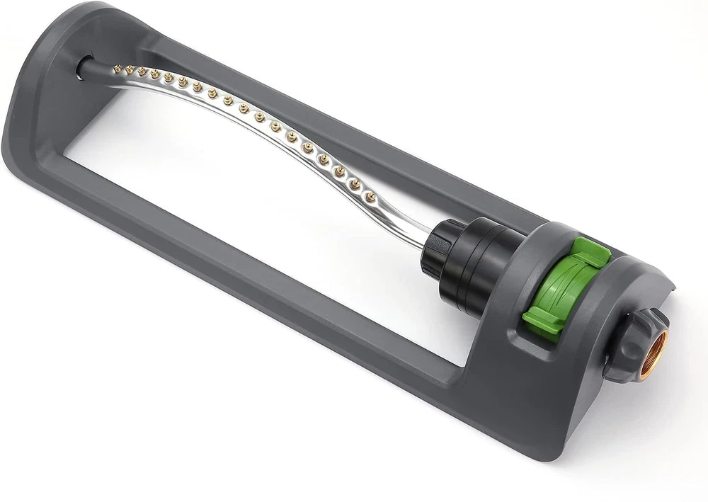 [Upgraded Brass Nozzle] - The Lawn Sprinkler features an innovative design with 18 brass nozzles that provide superior coverage for areas up to 3,600 square feet. Its robust construction, complemented by an extra-large base, ensures stability and durability in various weather conditions, making it an essential tool for any lawn or garden enthusiast. [CONTROL WATER FLOW]- The adjustable slide switch allows users to easily modify the watering range, making it suitable for a variety of applications, including garden spraying, lawn irrigation, and agricultural needs. This versatility ensures that you can efficiently water your entire yard or focus on specific flower beds without wasting water. [EASY TO USE]- Simply connect your standard garden hose to the sprinkler, and watch as it automatically activates, delivering a gentle yet effective watering solution for your garden and lawn. [Easily Clean]- The integrated metal sieve in the hose adapter simplifies the connection process while filtering out dirt that could clog the nozzles. Additionally, the built-in nozzle cleaner located at the end of the sprinkler allows for quick and easy maintenance, ensuring uninterrupted performance. [Compatible With US Standard Hoses] - Designed to fit standard ¾-inch garden hose fittings, this pressure-resistant sprinkler operates efficiently under both high and low water pressure conditions, making it a reliable choice for all users. Heavier Base - The upgraded iron galvanizing metal base adds an extra 0.66 pounds of weight, providing enhanced stability and durability against the elements, ensuring that your sprinkler remains securely in place while in operation. Product Description The Lawn Sprinkler with 18 brass nozzles is engineered to deliver an even distribution of water, making it perfect for nurturing delicate plants and maintaining lush green lawns. Its oscillating design ensures that water reaches every corner of your garden, covering expansive areas efficiently while conserving water. This professional-grade sprinkler is not only a reliable addition to your gardening tools but also enhances the overall health of your plants by providing them with the right amount of moisture. The user-friendly operation and advanced features make it an indispensable tool for gardeners of all skill levels. With the ability to adjust the spray area easily, you can set the sprinkler to cover left, right, narrow, or full width, ensuring that water is applied precisely where it is needed. The anti-clogging design and built-in nozzle cleaner further enhance its usability, allowing for uninterrupted operation even in the presence of debris. This sprinkler epitomizes convenience and efficiency, making it a must-have for anyone serious about lawn care.