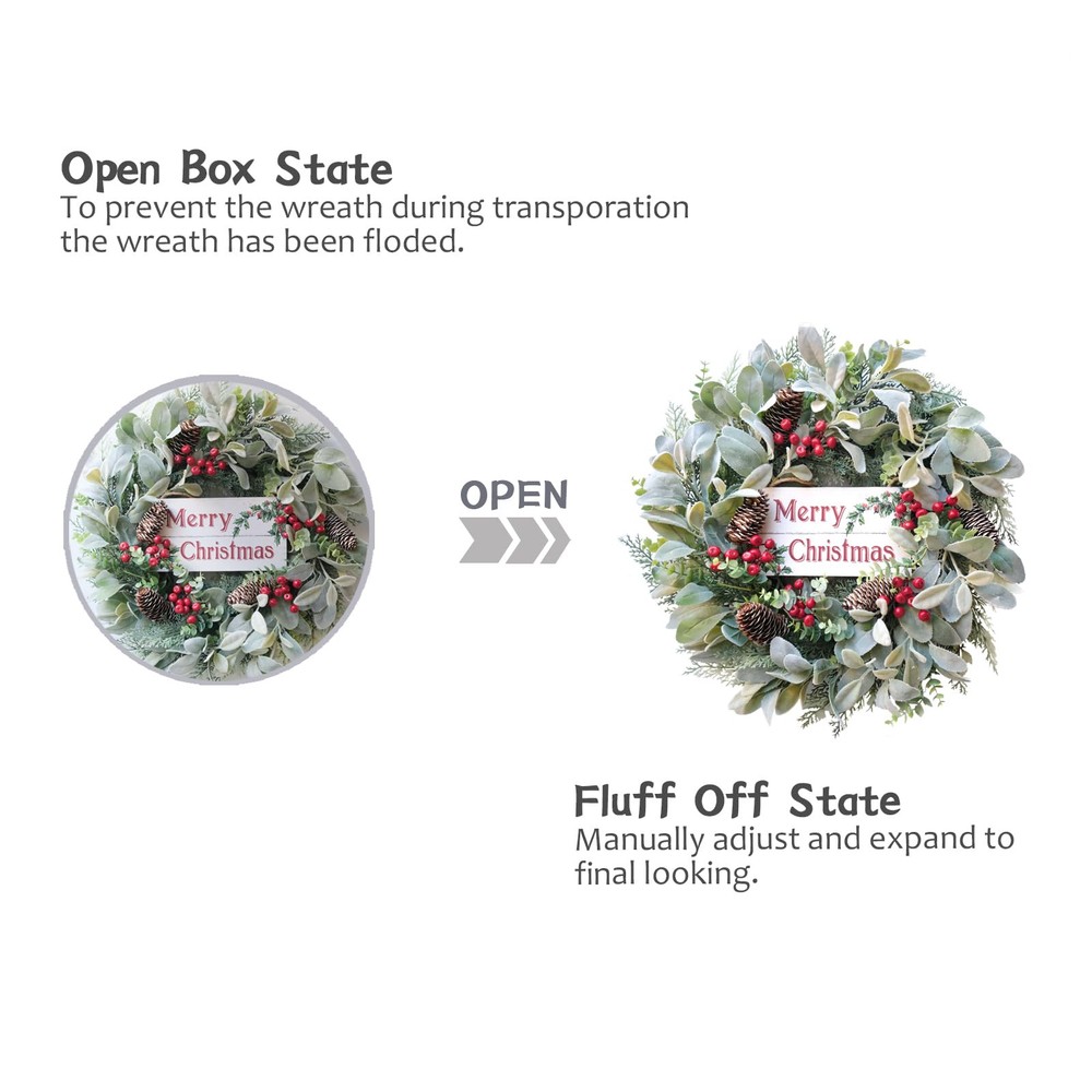This wreath is absolutely stunning! The high-quality materials make it look so realistic—like fresh pine and berries. It’s sturdy, well-made, and adds instant festive charm to my front door. The mix of pine cones, eucalyptus, and berries gives it a cozy winter vibe. Perfect for Christmas decor or even year-round rustic style. I love that it won’t wilt or fade, and it’s such a great gift idea too! Makes my home feel so welcoming.