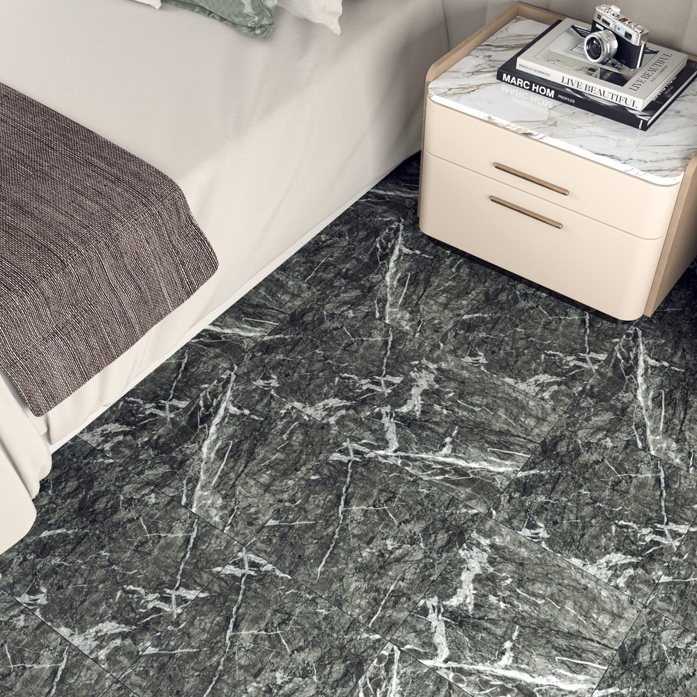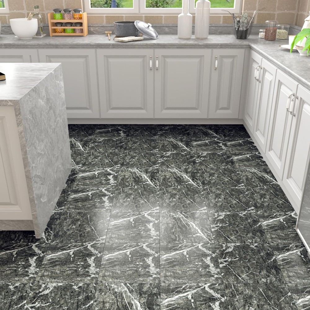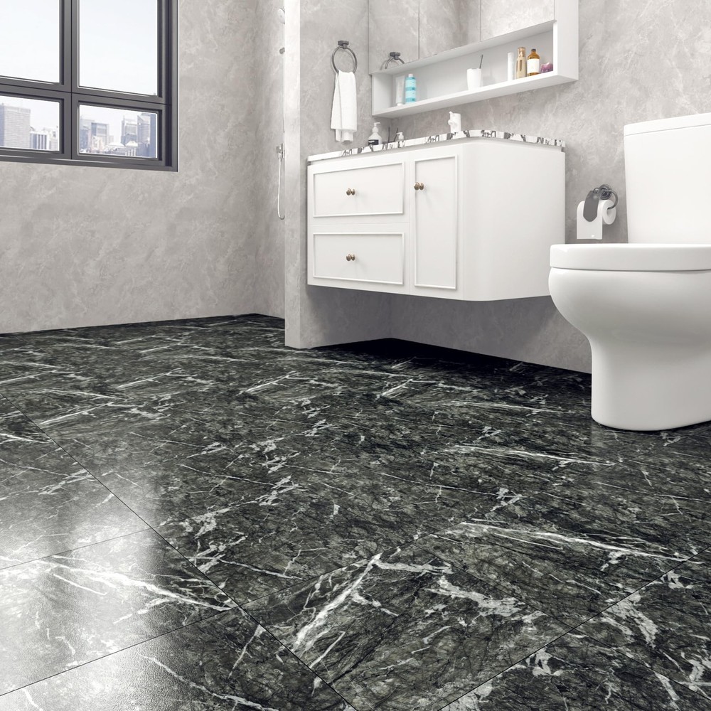 [SIZE] Length: 12 inch; Width: 12 inch [THICKNESS] 0.057 inch [MATERIAL] Vinyl [COLOR] Black Grey White Peel and Stick Floor Tile [STYLE] Black Marble Peel and Stick Floor Tile [DESIGN CONCEPT] Natural marble looking brings timeless charming for your floor! [ADVANTAGES] 1. Black Marble Peel and Stick Floor Waterproof: peel and stick floor tile, self adhesive floor tiles, no extra glue needed. 2. Black Marble Peel and Stick Floor Waterproof: removable floor tiles without sticky residue, great temporary flooring for renters. 3. Black Marble Peel and Stick Floor Waterproof: 12 x 12 peel and stick floor tile, vinyl floor tiles, vinyl laminate flooring, linoleum flooring. 4. Black Marble Peel and Stick Floor Waterproof: Waterproof flooring, stain resistant, moisture-proof, anti-slip, easy to clean. 5. Black Marble Peel and Stick Floor Waterproof: This peel and stick tile floor can be used as bathroom floor tile, shower floor tile, kitchen floor tile, it also can stick on bedroom floor tiles, living room floor tiles, this sticky floor tiles are suitable for dinning room, laundry, nursery, dollhouse, playroom, cubicle, farmhouse, garage, basement, attic, kitchenette, gym, dorm, classroom, apartment, office and rv flooring. [PRO TIPS] 1. Measure the size of the floor surface before purchase, buy enough rolls at one time to avoid color difference. 2. Clean the surface before pasting. The adhesion will be the best if the surface is clean, smooth, dry and flat. 3. We recommend to avoid leaving too much water on the floor tiles while cleaning within two days after installation, which helps to maintain great adhesion for a long time. ➤ SIZE & MATERIAL: Each marble floor tile measures 12"x12" and 0.057" thick. 18 tiles per box, totally can cover 18 square feet. The sticky floor tiles are made of superior vinyl, wear resistant and nonflammable, safe for your family. ➤ EASY TO INSTALL: Self adhesive vinyl floor tiles, just peel and stick floor tiles to your room, readjust if you need, cut with utility knife or scissors to fit small space, no grout or special tools needed. ➤ EASY TO CLEAN: This black marble peel and stick floor tile is waterproof and washable, oil proof and stain resistant, easy to clean with a wet mop. ➤ REMOVABLE: Just remove the vinyl flooring tiles if you want. It's perfect removable floor tiles and temporary flooring for renters! ➤ MULTI-USE: Stick on floor tiles to any dry, clean and flat floor, such as for bathroom flooring, kitchen flooring, rv flooring, bedroom, living room, laundry room, dining room, basement, entryway, foyers, gym, garage, office, apartment, classroom, etc. ➤ 24/7 SERVICES: Any questions about peel and stick floor tiles, please feel free to contact us or "Ask a Question". Get the black marble tiles for floor, and start to enjoy your DIY time!