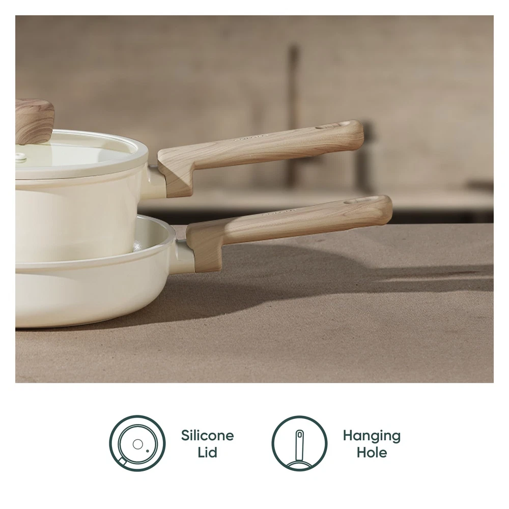 CAROTE 14Pcs Nonstick Ceramic Cookware Set, PFAS/PFOA Free, Cream White Pots and Pans Set Non Stick, Non-toxic Cookware,Kitchen Cooking Pan Set, Large Capacity Crafted with a non-toxic ceramic coating, our cookware brings high level non stick performance and elevate your cooking experience. The smooth ceramic coating doesn’t trap any food or sauce, and wipes clean with just a quick swipe or rinse, keeping your cookware looking brand new. Our cookware is free from harmful chemicals such as PFOA, PFAS, PTFE, lead and cadmium. With its robust design and high-quality ceramic coating, our cookware is built to withstand everyday cooking. While it's designed for durability, its non-stick surface ensures easy cleaning and consistent performance, meal after meal. Carote provides 12 months warranty from the date of purchase. Please don't hesitate to reach out if any quality problem. You will be guaranteed to get satisfying solution. Set includes: 8.5'' frying pan, 2-qt saucepan with lid, 5-qt sauté pan with lid, 7-qt casserole with lid, soup ladle, solid spatula,slotted spatula, 4*pan protectors.