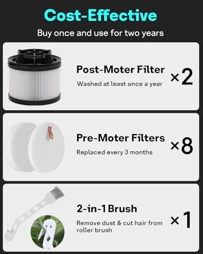 Return Policy Fast Delivery Trusted seller 18 PCS LVAC-200 Vacuum Filter Replacement, Compatible with Levoit LVAC-200 Cordless Stick Vacuum Cleaner (Model No. LSV-V201-WUS), 8 Pre-Motor Filters and 2 Post-Motor Filters Product Description PERFECT FIT: Our LVAC-200 Vacuum Filter Replacement Kit is specially designed to be compatible with the Levoit LSV-V201-WUS Cordless Stick Vacuum Cleaner. They have been rigorously tested so you can buy with confidence 5-STAGE FILTRATION: Part of the vacuum cleaner's 5-stage filtration system, captures 99.9% of particles as small as 0.3 micron for cleaner emissions UP TO TWO YEARS OF USE: This kit includes 2 Post-Motor Filters, 8 Pre-Motor Filters (8 Felt Filters & 8 Foam Filters) and 1 multi-function brush. Buy once and use for two years REPLACEABLE & WASHABLE: Our LVAC-200 Vacuum Filter Replacement Kit is easy to install, no tools required, just follow the 3 steps to replace the filters. To maintain optimum performance, we recommend replacing the Pre-Motor Filters every 3 months and replacing the Post-Motor Filter once a year. This may vary depending on how often you use the vacuum cleaner WORRY-FREE SERVICE: Product quality and customer satisfaction are our top priorities. If you have any questions, please contact us, our 24/7 customer service team is always for you Shipping Returns Payment Shipping Shipping is FREE to all addresses other than APO/PO boxes in the lower 48 states. All our stock ships from US-based warehouses. Shipped via USPS or UPS (depending on location and package weight) Unless stated otherwise, all orders will ship within 24-72 hours of your payment being processed. Check our feedback to see the great reviews of FAST shipping we offer. Returns Seller does not accept returns Payment We currently accept payment via eBay managed payments only. Once payment is cleared, we will dispatch your shipment within 1-3 business days. Please refer to the "Shipping" tab for more information regarding shipping speed to your destination.
