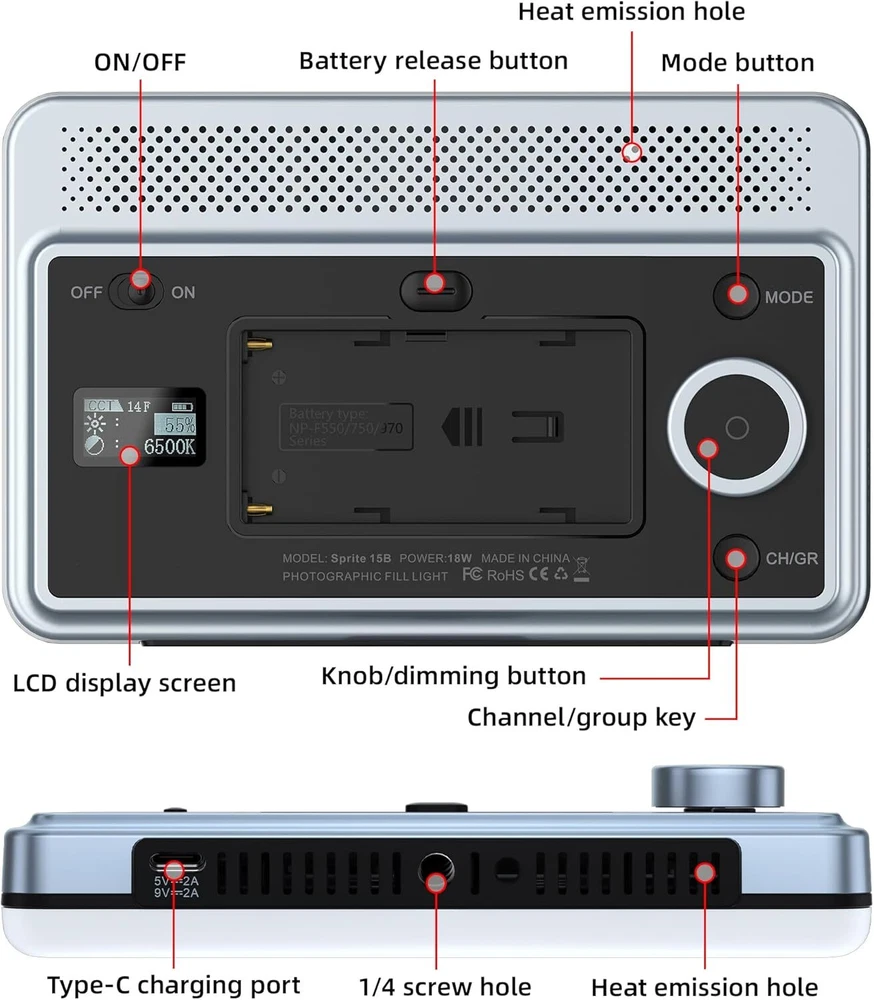 Product Description 18W LED Video Light on Camera Light with App Control 2800K-6800K CRI95+ 198 LED Beads Cold Shoe Portable Photography Photo Lighting Panel Video Light with NP-F550 Rechargeable Battery 18W LED Video Light, CRI95+: The 18W Dimmable bi-color LED Camera Light adopts 198 high color rendering led beads, 18W power, and the brightness can reach [email protected], 2800-6800K color temperature adjustment, and 0-100% brightness adjustment. The high CRI of 95+ can restore the color to the greatest extent and provides more realistic lighting for your shots. 2800-6800k Bi-Color Dimmable: This photography LED light supports 0-100% brightness control, CRI95, and a color temperature range from 2800K (warm) to 6800K (cool). All needs like portrait, nature, YouTube and indoor shooting can be satisfied by this led camera light. APP Control: 15B LED Video Light is controlled by an advanced 2.4G “WeeylitePro” mobile app, it also supports RC-11remote control(not included)and light body control, maximizing your work efficiency. Perfect light for video conferencing, video shooting, interviews, YouTube, and studio lighting. Included 2200mAh NP-F550 Battery: The 15b Light has included a 2200mAh rechargeable Li-ion battery, fully charge the battery in 2 hours, and continuous lighting time is up to 2 hours after fully charged. It features a USB Type-C cable for powering a light or charging the battery, is suitable for indoor or outdoor shooting, and never worries about running out of power. LCD Display & Standard 1/4 Screw: The LCD panel shows a clear battery power level, brightness, and color temperature readings, letting you operate easily and work more effectively. The standard 1/4 screw is suitable for the tripod and also included a hot-shoe adapter for the cameras or DSLR Camcorder recording. About Us We are a reputable seller with many years of experience selling on eBay. Our goal is to provide high-quality products and excellent customer service. Shipping Items will be shipped within 1-3 business days when we received payment. (Orders are not processed on weekends & holidays) Tracking information will be sent once item is shipped. Delivery time depends on destination and other factors Item is shipped to ebay address. Leaving correct address can minimize delay. For international shipping and shipping to Guam, Hawaii and Alaska, Please contact us before placing the order. International buyers please note: Import duties, taxes and charges are not included in the item price or shipping charges. These charges are buyer’s responsibility. We will try our best to reduce the risk of the custom duties. Local pick-up is unavailable at the moment. Contact Us We reply any email messages within 1 business / working days(off-duty at weekend). If you do not get a response from us, then please check your junk or spam mailbox. Our Business hours: Mon-Fri 9:00-18:00, UTC/GMT +8 hours. Please contact us either by clicking "contact seller" in the "purchase history" section or simply click "ask a question" at the bottom of this page. If you are unsatisfied with our item or service, please contact us before leaving any feedback. We are committed to resolve all issues in a friendly and satisfactory manner.