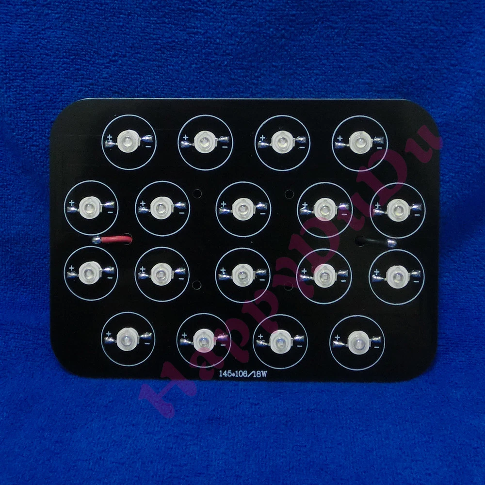 Dear friend, welcome to your visit. PS: Dear friend, if you need a tracking number, please choose to use Standard Int'l Shipping. Item Description: 18W High Power LED Lamp Light Bulb + Aluminum Base Plate PCB + AC Driver DIY KIT 100% New 18W LED PCB Fatures: PCB Size: (L)145 x (W)106 x (T)1.5mm LED Fatures: UV(365~370nm) UV(400~410nm) Purple(415~420nm) Purple-Blue(430~440nm) Royal Blue(450~455nm) Ice Blue(470~475nm) Cyan(495~500nm) Green(520~525nm) Yellow(585~588nm) Red(625~630nm) Deep Red(660nm) Infrared (850nm) Infrared (940nm) Warm White(3000~3500K) Neutral White(4000~4500K) Pure White(6000~6500K) Cold White(10000~15000K) Full Spectrum(400~840nm) Infrared (830nm) Luminous flux: 36Lm~3000Lm A set Lamp: 4pcs Cold Wite + 6pcs Royal Blue + 2pcs Deep Red + 2pcs Ice Blue + 2pcs UV + 1pc Purple + 1pc Green A set Luminous flux: 500~1900Lm B set : 8pcs Cold Wite + 4pcs Royal Blue + 2pcs Pure White + 2pcs UV + 2pcs Yellow B set Luminous flux: 500~1900Lm C set : 4pcs Cold Wite + 10pcs Royal Blue + 2pcs UV + 2pcs Yellow C set Luminous flux: 500~1500Lm D set : 8pcs Cold Wite + 4pcs Royal Blue + 2pcs Pure White + 2pcs Deep Red + 2pcs Yellow D set Luminous flux: 500~1900Lm E set : 12pcs Cold Wite + 6pcs Royal Blue E set Luminous flux: 500~1900Lm LED AC Driver [without wall plug] for 18W: AC Input Voltage: 85V~265V Size: (L)68 x (W)33 x (H)26mm(without wire) LED AC Dimming Driver [without wall plug] [without dimmer] for 18W: AC Input Voltage: 85V~265V Size: (L)73 x (W)37 x (H)23mm(without wire) Payment: Thank you for your understanding, we will only accept PayPal payments, you can use credit card through PayPal. Shipping service: l Items will be shipped after your payment is cleared. l Please make sure your PayPal address is accurate, we only ship the items to your PayPal address. l It is international shipping Service. ★ To USA: the shipping service is ePacket delivery by China Post, usually takes 7-15 business days from China to USA. ★ To other country: the shipping service is A or B . A . Economy Int'l Shipping (Hongkong Post), without tracking number, usually takes 12-28 business days from China to other country. B . Standard Int'l Shipping (Hongkong Post), with tracking number, usually takes 12-28 business days from China to other country. l We are happy to combine shipping on the same order, please contact us when you have finished your purchases. Contact us: l Dear buyer, we are very pleased to serve you, your satisfaction is my greatest happiness. l If you have any questions or if you are not satisfied with your purchasing, please contact us at anytime via eBay message. We will reply within 12 hours, We appreciate your patience and understanding, thank you very much.