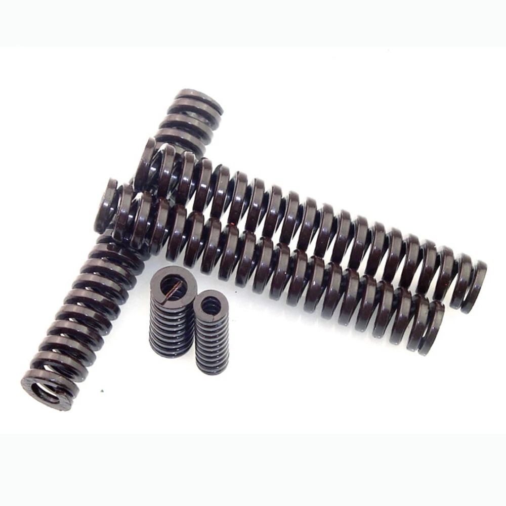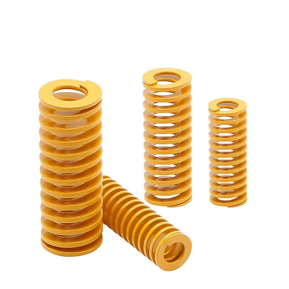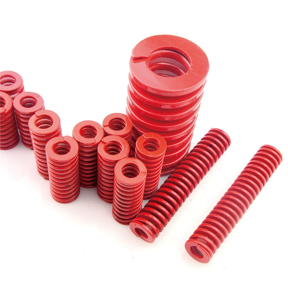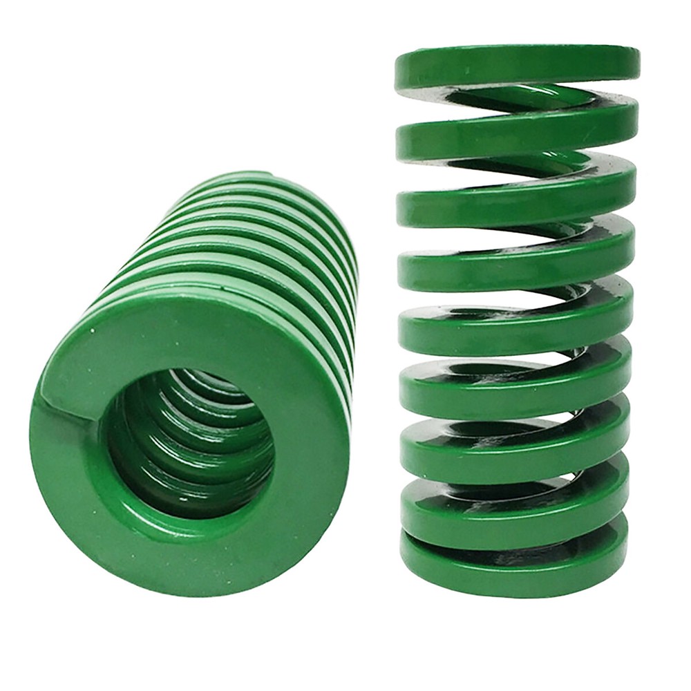 Die Springs O.D.=18mm 20mm Rectangular Spring Steel Yellow Blue Red Green Teal Mould springs Product Manual: Product Name. Mould springs/Die Springs Product Color: Multiple colours Product size: outer diamete * Inner diameter * Height (mm) For example: 0.8*6*30mm (outer diamete =0.8*=6*Inner diameter*Height =30mm) 【Applicable fields】:Die springs are widely used in stamping dies, metal die-casting dies, plastic moulds and other elastic movement precision mechanical equipment, automobiles and other fields. *Description: Yellow and blue are mainly used for plastic mould assembly, red, green and teal are mainly used for hardware assembly. Characteristics]: Rectangular mold spring has the characteristics of small size, good elasticity, high stiffness, high precision, rectangular production material, surface coloring spraying (plating) to distinguish different load, beautiful appearance, etc. Weight index]: Small load (yellow) < light load (blue) < medium load (red) < heavy load (green) < X heavy load (brown) Yellow springs (light load): can be compressed to 42% of total length Blue spring (light load): compressible up to 52% of the total length Red spring (medium load): compressible up to 62% of the total length Green spring (heavy duty): compressible up to 72% of the total length Brown spring (X heavy duty): compressible up to 76% of the total length