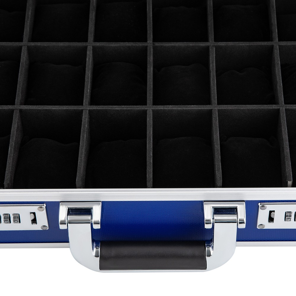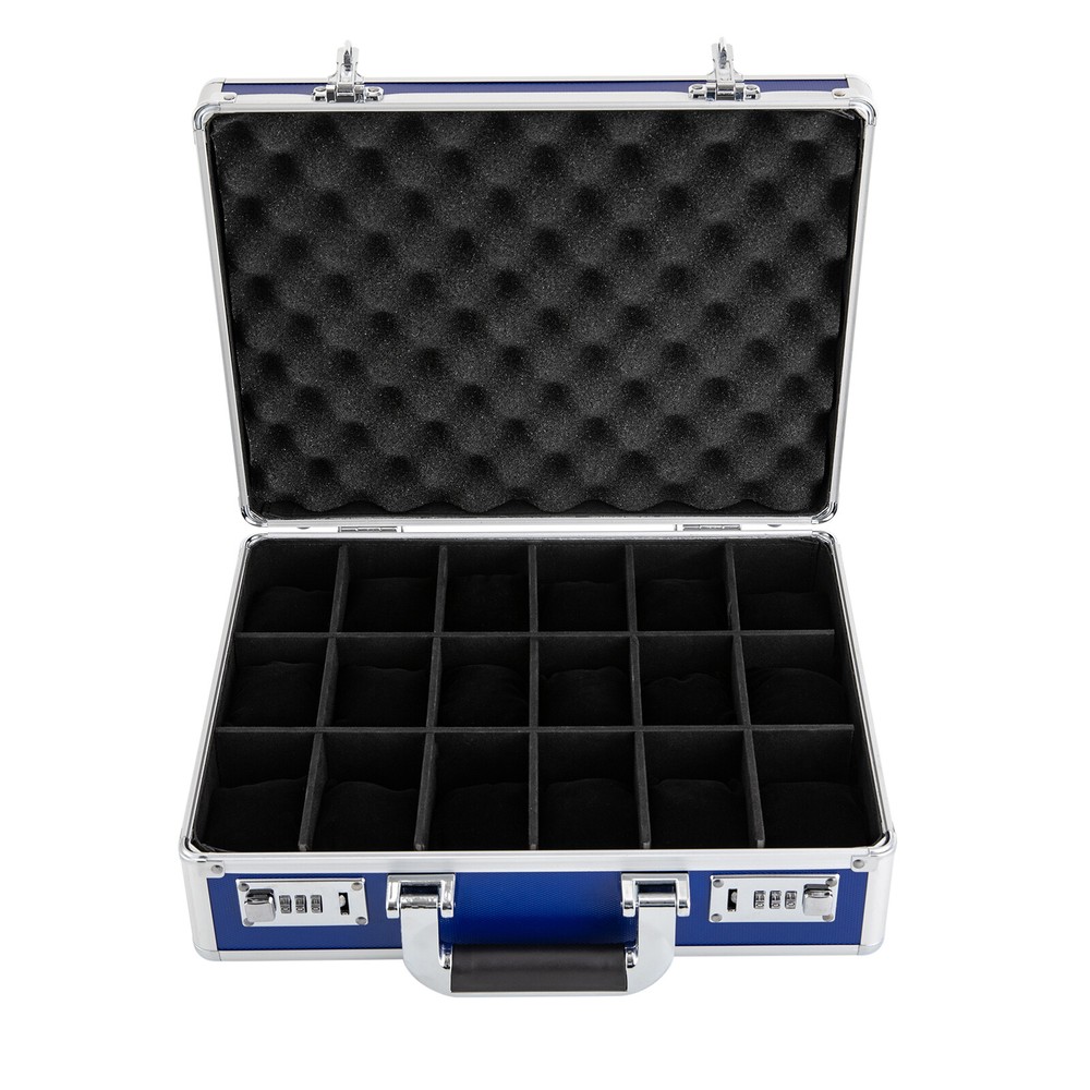 This sleek blue watch case is perfect for organizing and protecting my collection! The sturdy aluminum alloy and soft flannelette lining keep my watches scratch-free while the 18 spacious compartments fit all sizes comfortably. The modern rectangular design looks elegant on my dresser, and the watch pillows hold each piece securely. It’s surprisingly lightweight yet feels premium, and I love how everything stays dust-free. No assembly needed—just unbox and start using it right away. A must-have for anyone who values style and functionality in their storage!