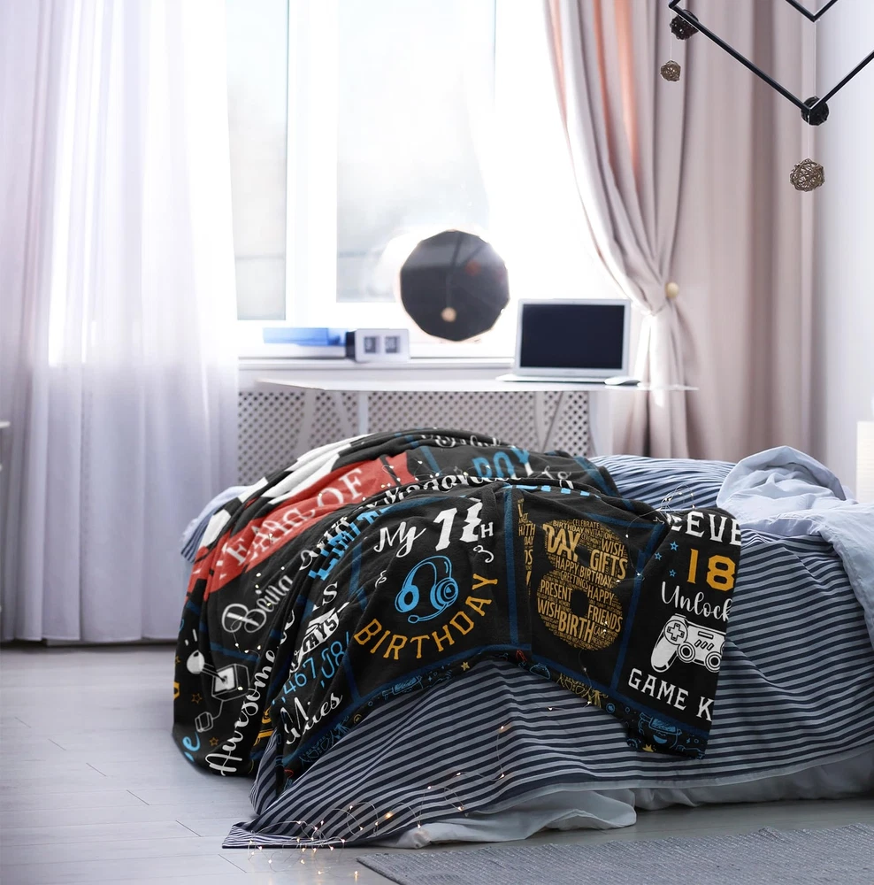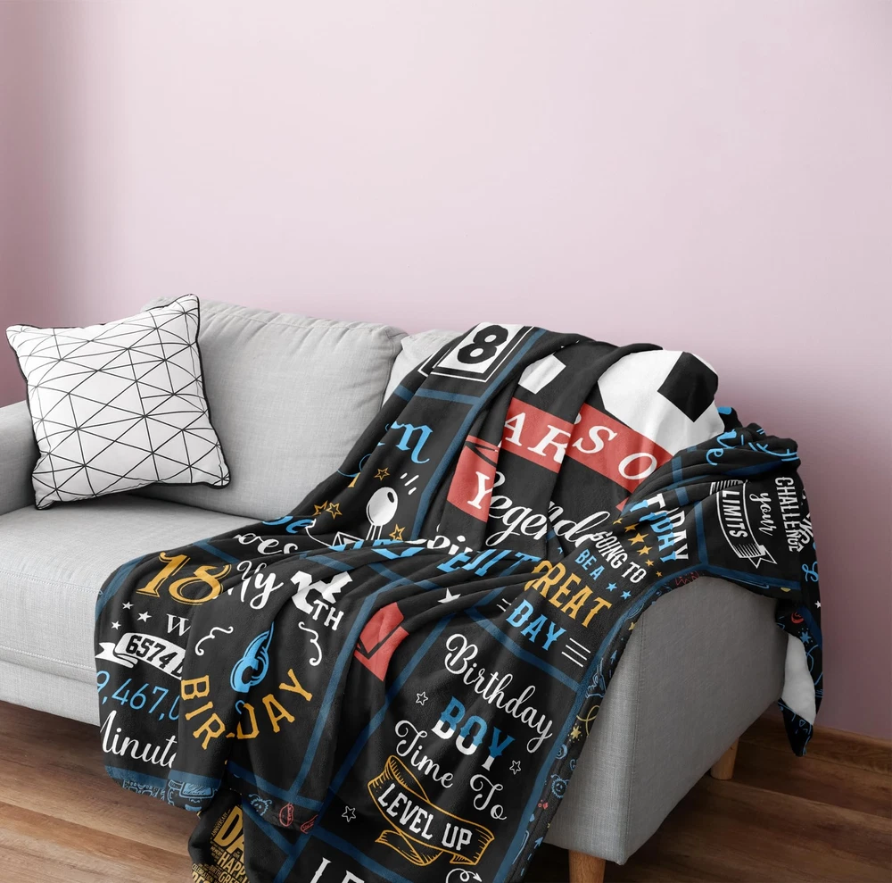 Unforgettable 18th Birthday Gifts for Boys What better way to celebrate a 18th birthday than with a memorable gift? Our blanket is the perfect present for your son, grandson, stepson, brother, friend, or classmate. This unique gift ensures that they will never forget their 18th birthday. It stands out as cool gifts for 18 year old boys and is a thoughtful choice for 18 year old boy. Versatile for Various Scenarios Our blanket is designed to be versatile and practical for many different settings. Whether they are reading a book, watching TV, lounging on the couch, or studying on a chair, this blanket is the ideal companion. It’s also perfect for camping trips, napping at school, or staying cozy in an air-conditioned room. This adaptability makes it of the best 18th birthday gifts for boys, offering comfort and warmth wherever it is used. High-Quality Craftsmanship Quality is at the heart of our product. Made from premium materials, our blanket is not only warm and breathable but also lightweight and skin-friendly. The vibrant and clear patterns on the blanket provide a visual feast, making it a joy to look at. Additionally, the blanket is resistant to deformation, ensuring long-lasting use and maintaining its quality over time. This superior craftsmanship makes it a standout choice for 18 year old boys. Easy Care and Maintenance Our blanket is designed for easy care. Due to the packaging, it might have some minor wrinkles when first received. However, this is nothing to worry about – a simple wash will restore its smooth and fluffy appearance. This convenience adds to its appeal as of the top birthday gifts for 18-year-old boys. The Perfect Birthday Gift In summary, our blanket is the ultimate gift for a 18-year-old boy. It combines practicality, high quality, and thoughtful design. Whether you are looking for 18th birthday gifts for boys or simply the coolest gifts for a 18-year-old boy, our blanket is sure to bring joy and comfort to any young teenager. BEST CHOICE FOR 18 Year Old Boys: Turning eighteen is a milestone worth celebrating. Our birthday blanket, designed for boys who are going to be 18, is the perfect gift to celebrate their 18th birthday. With its cool design, it stands out as cool gifts for 18 year old boys. PERFECT GIFT FOR FAMILY AND FRIENDS: Searching for the ideal birthday gift for a special 18-year-old boy? This blanket is an excellent choice! Featuring game consoles and computer keyboards, it’s sure to delight any game enthusiast. It’s a practical and fun birthday gift for your son, grandson, nephew, stepson, classmate, or friends. PREMIUM QUALITY: Our 18th birthday blanket is made from premium flannel, ensuring it is warm, breathable, lightweight, and skin-friendly. It can provide the recipient with a cozy and relaxing experience, ensuring long-lasting comfort. VERSATILE USAGE: This blanket, with its cool and colorful designs, adds personality to any space. It’s perfect for watching TV on the couch, lounging on the sofa, sleeping on the bed, studying/reading on a chair, taking out Camping, playing games, and napping at school, this versatility makes it an ideal gift for 18-year-old boys. EASY TO CLEAN: For the dark color of the blanket, please wash alone or with similar texture/color items in cold water to ensure it remains vibrant and we are confident that it doesn’t easily deform. This makes it a practical and thoughtful 18th birthday gift for boys, perfect for those looking for reliable 18 year old boy birthday gifts.