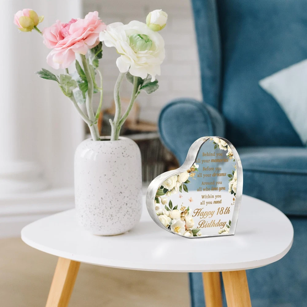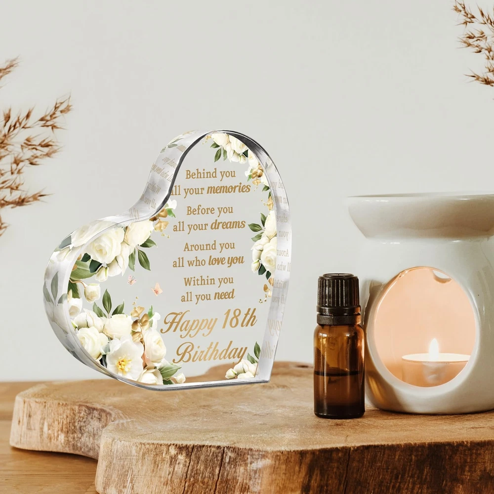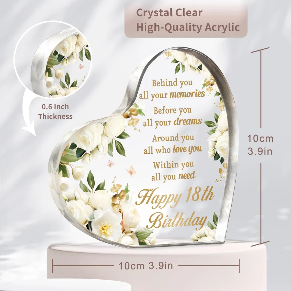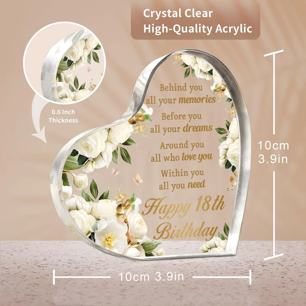 Exclusive Offers Await! Welcome to our stores! Satisfaction is what we guarantee. 18th Birthday Gifts for Girls, 18 Year Old Girl Birthday Gifts - UV Printed Acrylic Paperweight - 18th Birthday Decorations for Girls, Birthday Gifts from Mom Dad Sister Product Overview Pick an original and interesting gift from ! About the product Material: Acrylic Brand: Manufacturer: Size: 3.9 × 3.9 × 0.51 inches Weight: 0.28 pounds Finish : UV print with non-soluble food-safe ink Occasions: Birthdays / Christmas / Thanksgiving / Mother's Day etc. Usage: place at a birthday party/on a work desk, writing desk, living room as a table decoration etc. Customer service If you have any questions, don't hesitate to ask us, and we will respond within 24 hours. If you are not satisfied with our product, please tell us and we will exchange or provide a full refund within 24 hours. Key Features 【High-Quality Material】 Crafted from premium acrylic, this heart-shaped birthday gift is lightweight yet durable. Its clear material allows light to pass through, enhancing the UV printed pattern for sharp, vivid images with accurate color reproduction. Plus, it's resistant to fading, water, and scratches. 【Special 18th Birthday Gift】 Commemorate the milestone 18th birthday of your loved one with a customized acrylic desk decoration. Engraved with "happy 18th birthday" and wishes, it's a memorable choice for their special day. 【Versatile Birthday Gift Idea】 This acrylic paperweight is perfect for celebrating the 18th birthday of your girlfriend, sister, daughter, or friend. It serves as a heartwarming reminder of your affection and is guaranteed to bring back joyful memories. 【Multipurpose Decoration】 With dimensions of 3.9 x 3.9 x 0.51 inches (10x10 x 1.3 cm), this aesthetic desk decor can enhance any setting. Whether placed at a birthday party or on a work desk, it adds a touch of warmth and hope to the ambiance. Customer Satisfaction Guarantee: At , we prioritize customer satisfaction. If you're not completely satisfied with our acrylic paperweight, simply reach out to us on , and we'll address any concerns within 24 hours. Your feedback is valuable to us! Payment Information ★ Secure payments through eBay. ★ We accept PayPal and all major credit cards. ★ Immediate payment required upon purchase. ★ For any payment issues, please contact our support team. Shipping Information ★ Orders are shipped to the address provided during checkout. Please verify your address. ★ We process orders within 1 business day (excluding weekends and holidays). ★ Standard delivery time is 3-5 business days. ★ We use trusted carriers like UPS, FedEx, and USPS. ★ Shipping is only available within the contiguous United States. No shipping to Alaska, Hawaii, Puerto Rico, or PO Boxes. ★ If there are any shipping delays, please contact us for support. Return Policy ★ We offer a 30-day return policy. ★ If you are not satisfied with your purchase, you can return it within 30 days for a full refund. ★ Please contact us to obtain the return address before sending back any items. ★ Items must be returned in their original condition and packaging.