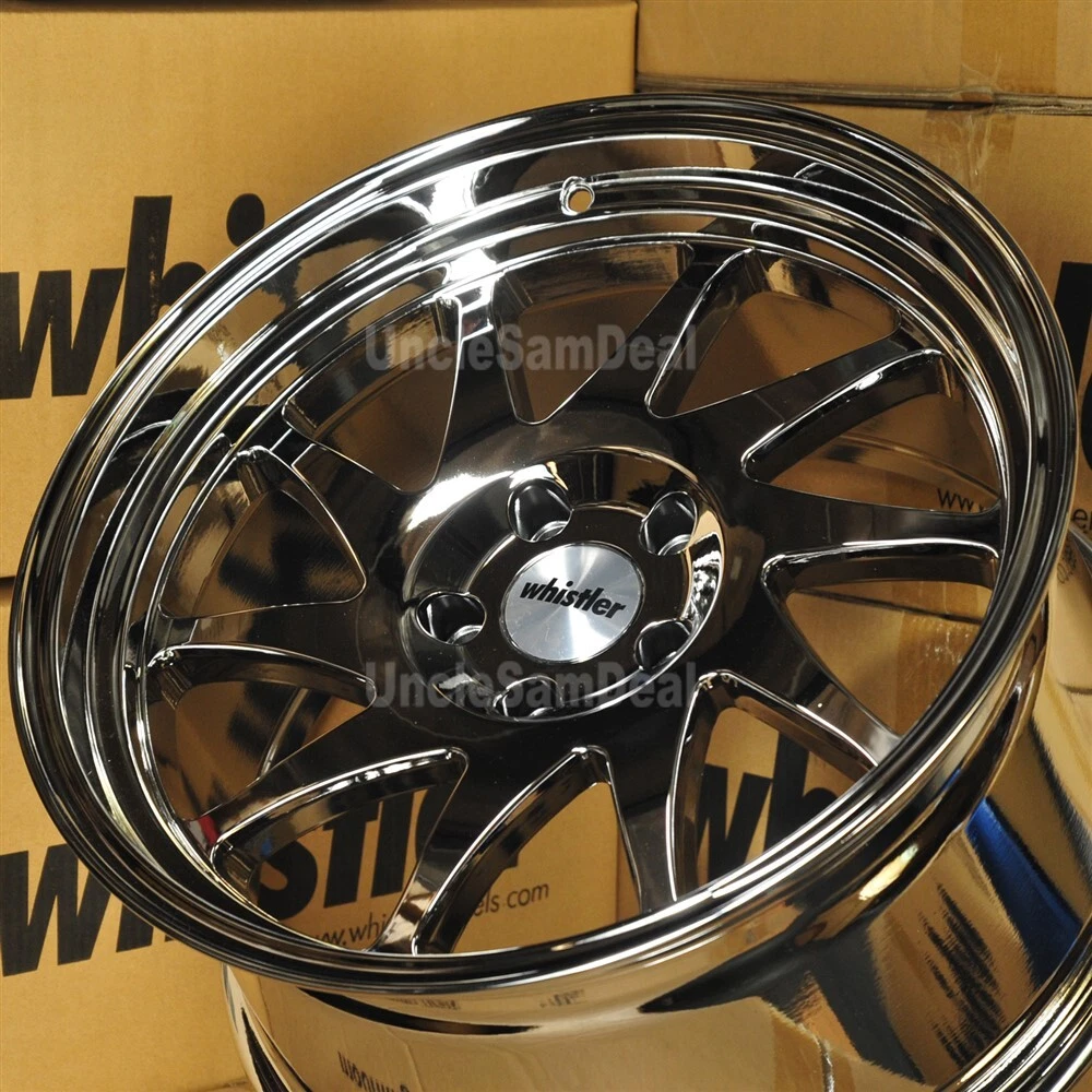 UncleSamDeal Auto Welcome to UncleSamDeal Auto Parts! Product Description WHISTLER KR7 10 SPOKES BLADE SPORT WHEELS ( SET OF 4 ) THESE ARE FOR SET OF 4 WHEELS CONDITION: 100% NEW AUTHENTIC WHISTLER PRODUCT 18x9.5 SIZE WHEEL 5x114.3 BOLT PATTERN 10 SPOKES DESIGN FULL PVD CHROME WITH LIP 22 OFFSETS WHEELS 73.1 CENTER BORE COME WITH 4 WHEELS AND 4 WHISTLER CENTER CAPS WHISTLER CHROME WHEELS ARE MANUFACTURED USING THE INDUSTRY STANDARD PROCESS CALLED PHYSICAL VAPOR DEPOSITION (PVD) CASE SHOULD BE TAKEN WHEN CLEANING. WASH WITH MILD SOUP AND WATER ONLY. DO NOT USE CHROME CLEANERS ON PVD FINISH WHEELS FITMENT QUESTION? PLEASE FEEL FREE TO CONTACT US Payment Method EBAY PAYMENT Shipping Information UPS FEDEX Ground (lower 48 states) (No PO Box) with tracking number Shipping and handling cost is listed on each auction. Combine / Multiple items shipping and international buyer please email us for quote. For international buyer, Import duties taxes, charges and fees are not included. Return and Exchange All SALES ARE FINAL Defect item will gladly exchange within 30days QUESTION? Please feel free to contact us Contact Us / Disclaimer Please email or message us for any question. Most of the items DOES NOT come with instruction, although items are direct fit, it is recommend installed by professional. Some of the items are produced for off-road or show purpose only. These items are not suitable for regular driving. User must follow the direction given and any misuse of these product at their own risk. Manufacturer, Distributor and Retailer will not be held responsible for using these items other than specified above. Powered by SixBit's eCommerce Solution