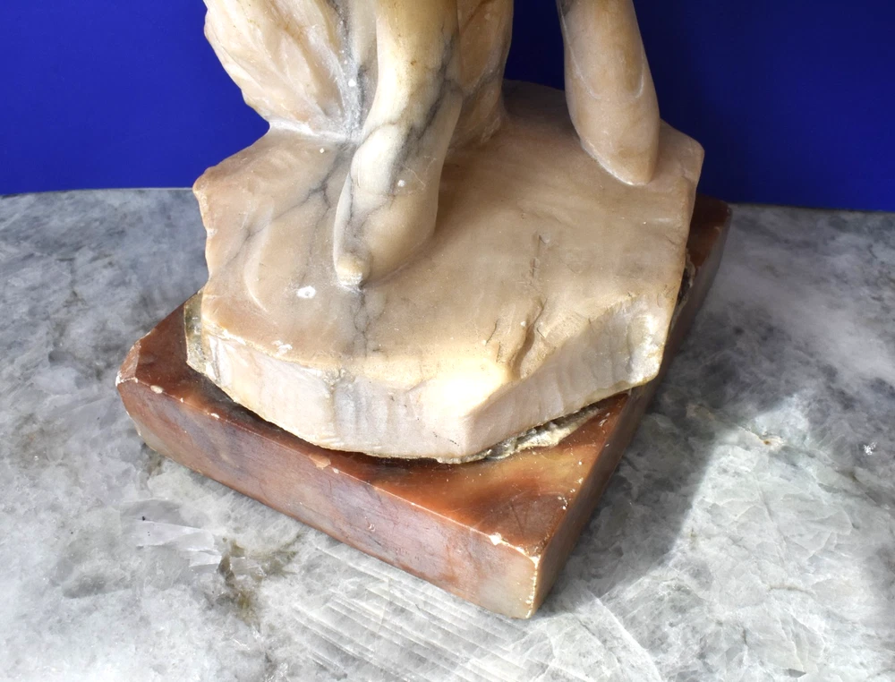 19" Antique Italian hand carved Alabaster Marble Beatrice from Dante maiden statue figure sculpture! Nice flat back depth for shelf or mantle display. Beautiful veined stone, 19" tall x 7" across back, no chips or restoration to Beatrice. Chips to marble base may be a very old replacement? Thanks for considering my listings today, I'll strive to exceed expectations on your Purchase. Please check my feedback of 10450 positives, selling for over 28 years on ebay, before that the rest of my life :^). Hope you will check and bookmark my listings for new items listed daily!