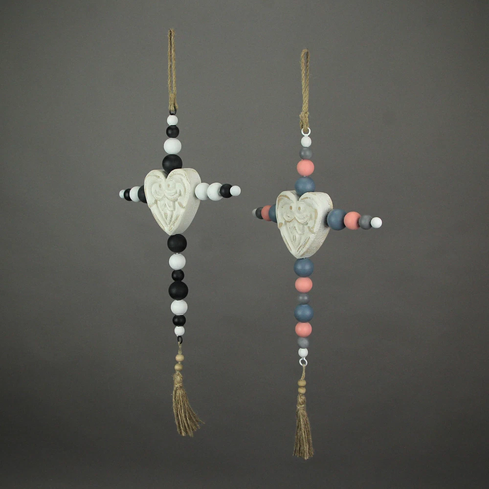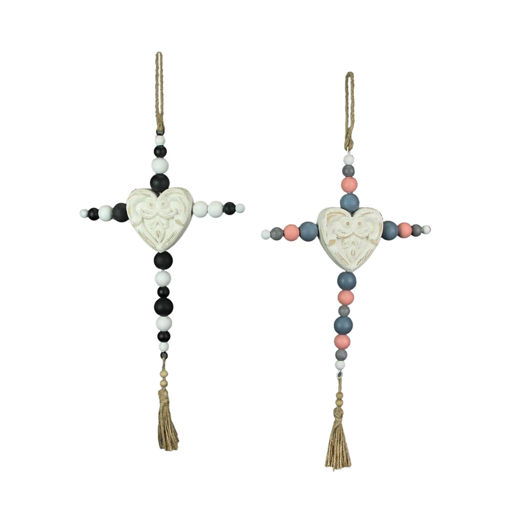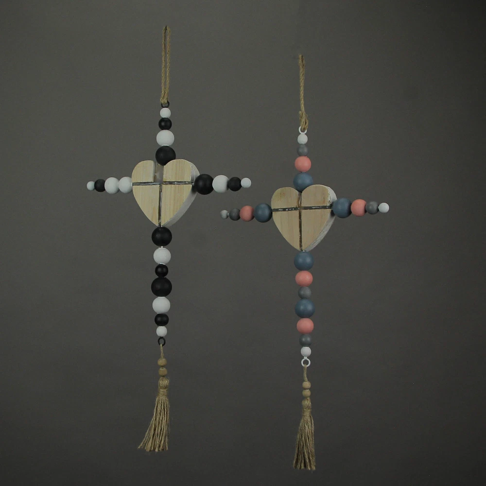NOTE: DUE TO THE BLACK AND WHITE BEADS ARE INCORRECT this item is being sold at a reduced price. Please see last photo for damages/defects. Add some spiritual style to your home with this set of decorative wall hanging crosses. Creatively crafted from wood the white, black, blue, and pink painted finish and beaded design lets it compliment a variety of home decor styles. Each measure 10.25 inch wide, 1 inch depth, 19.5 inch high, the built-in 4 inch drop twine hangers makes it quick and easy to display them in your home kitchen, living room, bedroom, or bathroom. A great gift for yourself or friends and family. Our eBay Store About Us Add to Favorite Sellers 19 Inch Wooden Bead Cross Wall Hanging Home Decor Modern Decorative Art Set of 2 NOTE: DUE TO THE BLACK AND WHITE BEADS ARE INCORRECT this item is being sold at a reduced price. Please see last photo for damages/defects. NOTE - DUE TO THE BLACK AND WHITE BEADS ARE INCORRECT this item is being sold at a reduced price. Please see last photo for damages/defects. STURDY MATERIAL - Creatively Crafted From Wood With A Beaded Design In Multiple Colors EASY INSTALL - Built-in 4 Inch Drop Twine Hanger For Quick And Simple Display SUBTLE STYLE - Minimalist Design Compliments A Variety Of Home Decor Themes OVERALL SIZE - Each Measure 10.25 Inch Wide, 1 Inch Depth, 19.5 Inch High NOTE: DUE TO THE BLACK AND WHITE BEADS ARE INCORRECT this item is being sold at a reduced price. Please see last photo for damages/defects. Add some spiritual style to your home with this set of decorative wall hanging crosses. Creatively crafted from wood the white, black, blue, and pink painted finish and beaded design lets it compliment a variety of home decor styles. Each measure 10.25 inch wide, 1 inch depth, 19.5 inch high, the built-in 4 inch drop twine hangers makes it quick and easy to display them in your home kitchen, living room, bedroom, or bathroom. A great gift for yourself or friends and family. Product Details Color Multicolored Height 19.5 Length 10.25 Weight 1 LB
