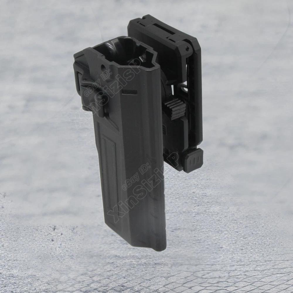 High Quality Military & Police Grade Polymer OWB Holster Specially Designed For Fast Draw During Duty Or Shooting Competition. Outside Waistband Tactical H olster with Belt Clip method for Non-Railed Versions of 1911 Models (For 9mm, .40 only). Holster fit 1911 Holster fit Dan Wesson Dan Wesson Specialist 5" 9mm Luger Dan Wesson Guardian 4.25" 9mm Luger 1911 Holster fit Ed Brown Ed Brown Special Forces 5" 9mm Luger Ed Brown Kobra Carry 4.25" 9mm Luger 1911 Holster fit Kimber Kimber 1911 5" 9mm Luger Kimber 1911 Pro 4" 9mm Luger Kimber Custom II 5" .40 S&W Kimber Pro Carry II 4" .40 S&W 1911 Holst er fit Nighthawk Custom Nighthawk Custom Talon 5" 9mm Luger 1911 Holste r fit Rock Island Armory (Armscor) Rock Island Armory 1911 Ultra FS 5" 9mm Luger Rock Island Armory 1911 FS Tactical 5" .40 S&W 1911 Hols ter fit Springfield Springfield 1911 EMP Champion 4" 9mm Luger Springfield 1911 Loaded 5" 9mm Luger Springfield Armory 1911 Loaded 5" .40 S&W Springfield Armory 1911 Loaded Target 5" .40 S&W 1911 Hols ter f it STI International (Staccato) STI Trojan 5" . 9mm Luger 1911 Hols ter fit Taurus Taurus 1911 5" 9mm Luger Taurus 1911 Commander 4.2" 9mm Luger 1911 Holste r fit Walther Walther Colt 1911 A1 5" .22 LR 1911 Holste r fit Wilson Combat Wilson Combat CQB 5" 9mm Luger ( I t perfect fit the 1911 gun without Optic Mount Mini Sight a bove on the end of the barrel , but also without laser and embedded chassis, and flashlight style ) Ease And Comfort Push side buttons to achieve the fast opening and closing, unique design allows for belt carrying or vest carrying, perfectly used by duty holsters, uniformed law enforcement officers, security personnel, military personnel, private persons, and shooting sports holsters. And it fits closer to the body which can achieve better concealment under clothes. High S afety Secure Level II Retention - Auto-locking system restrain pistol in the holster to ensure ultimate safety, activate the release by pressing the button with the index finger to achieve gun access Adjustable Easily set Holster 360 degrees to your desire position with Allen key, compatible belt width up to 2 inch Tough & Durable Material Custom-molded body made of polymer stronger than leather that will wear out, adapt to every bad environment In the Package: · 1*Holster with Paddle Attachment · 1*Allen Key Shipping: Ships same day or next except Sundays and Holidays ! Free shipping! Ship by USPS First Class Package. 100% MONEY BACK GUARANTEE. Any question please be free to contact with us First .Thanks!