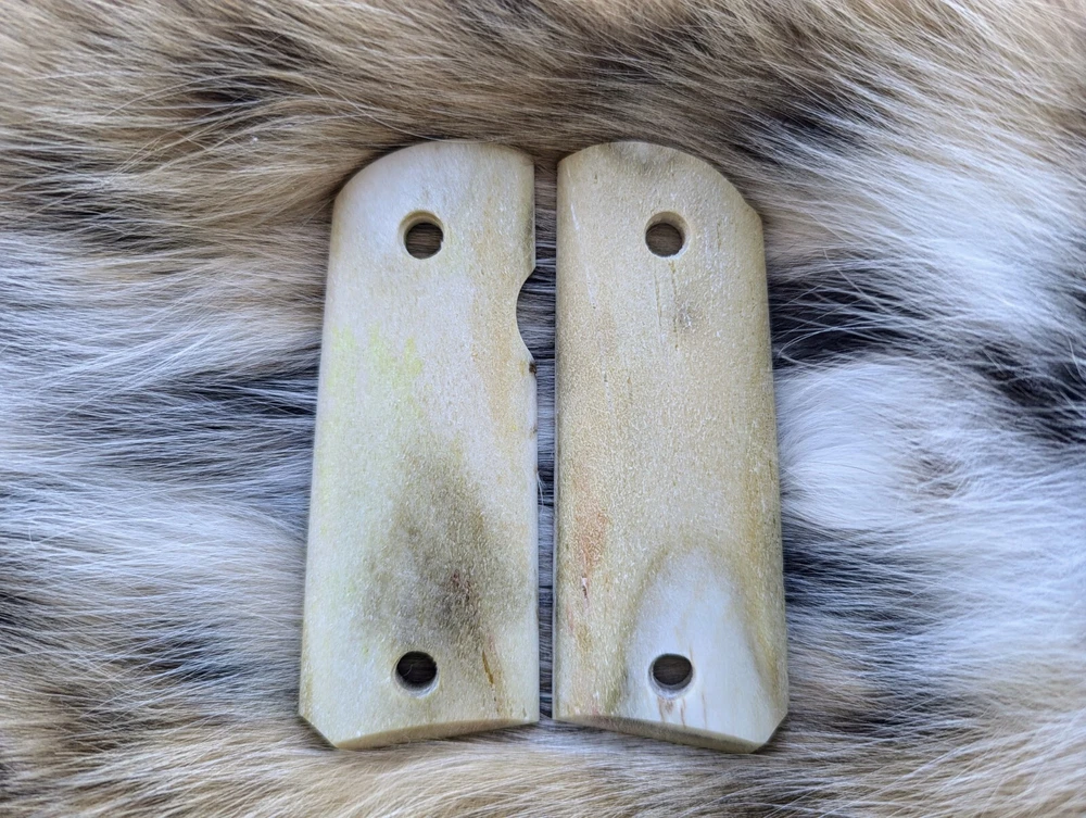 Officer's Model 1911 Moose Antler Grips Superior Custom Build and Quality Handmade in USA Enhance your Officer’s Model 1911 with these handcrafted grips, made from naturally shed moose antlers. Designed for Compact, Officer, and Defender 1911 models, these grips offer a unique blend of rugged natural beauty and functionality, providing a secure and comfortable hold for every shot. Will These Grips Fit Your Officer’s Model? The 1911 Officer’s Model (also known as Compact or Defender) is a smaller version of the full-size Government model. To confirm whether your 1911 is a Full Size or Compact/Officer/Defender, measure the space between the screw holes: Full Size 1911: 3 1/16" between screws (these grips will NOT fit full-size models) Compact/Officer/Defender 1911: 2 11/16" between screws (these grips WILL fit compact models) Compatible with Most Compact 1911 Models: These moose antler grips are designed to fit most Compact, Officer, and Defender 1911 models made by a wide range of manufacturers. Shipping & Guarantee: Fast 1 Business Day Turnaround: We know you're eager to enhance your pistol, so we ship all orders within 1 business day. Free Domestic Shipping: Shipping within the U.S. is on us, at no additional cost to you. Expedited Shipping Options: Need your grips faster? Choose an expedited shipping option at checkout. 30-Day Money-Back or Replacement Guarantee: All domestic orders include a 30-day money-back or replacement guarantee, with free return shipping covered by us. Lifetime Warranty: We stand by the quality and craftsmanship of our products, which is why we offer a Lifetime Warranty on all items. If your product experiences any defects in materials or workmanship at any point, we will repair or replace it free of charge. This warranty ensures you can purchase with confidence, knowing your item is built to last. For warranty claims, simply contact us, and we'll be happy to assist you. If you have any questions or special requests, please don't hesitate to reach out. We're happy to assist!