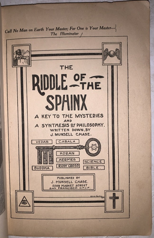 1915, 1st Ed, THE RIDDLE OF THE SPHINX, KEY TO THE MYSTERIES, CHASE, OCCULT