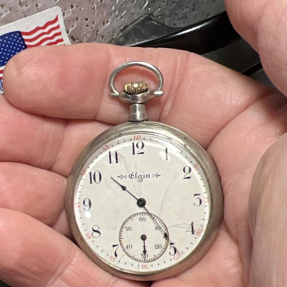 This vintage 1917 Elgin 12s pocket watch is a true piece of history! The golden-gilded 7-jewel movement still winds up smoothly, and the second hand runs beautifully—such a cool find for collectors. While the hour and minute hands need adjustment (they move when setting time but don't advance on their own), it’s a fantastic project watch or for parts. The 44mm open-face case has great character, and the Elgin heritage shines through. Perfect for someone who loves restoring timeless pieces!
