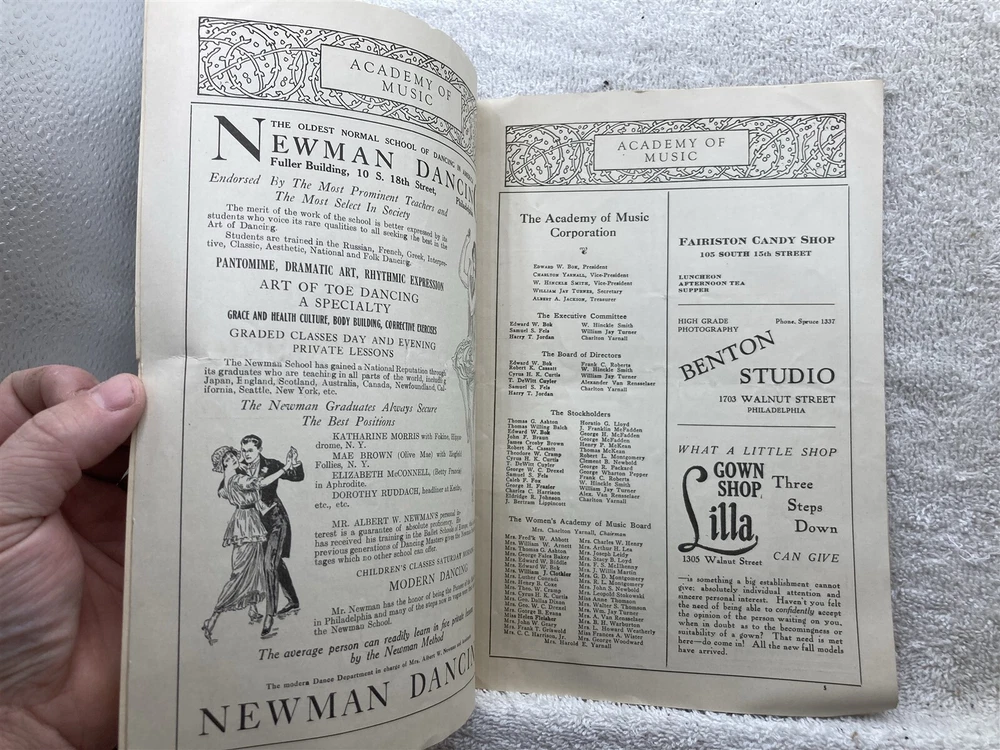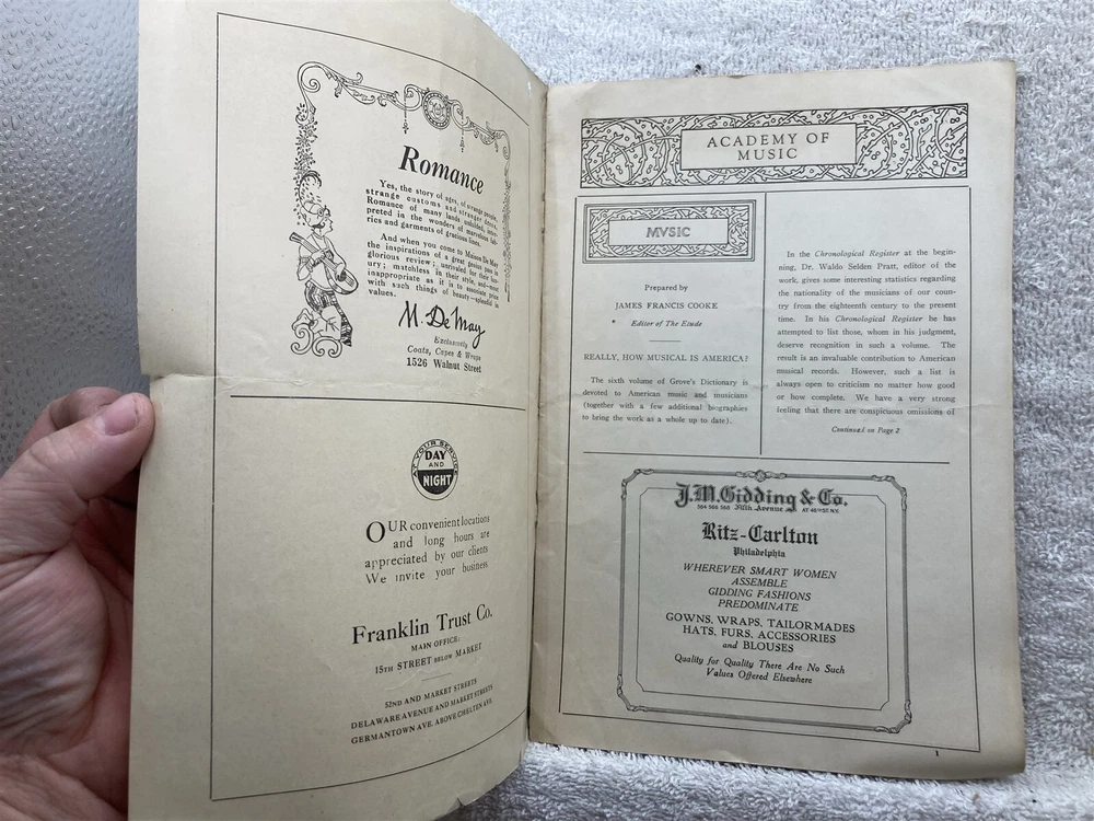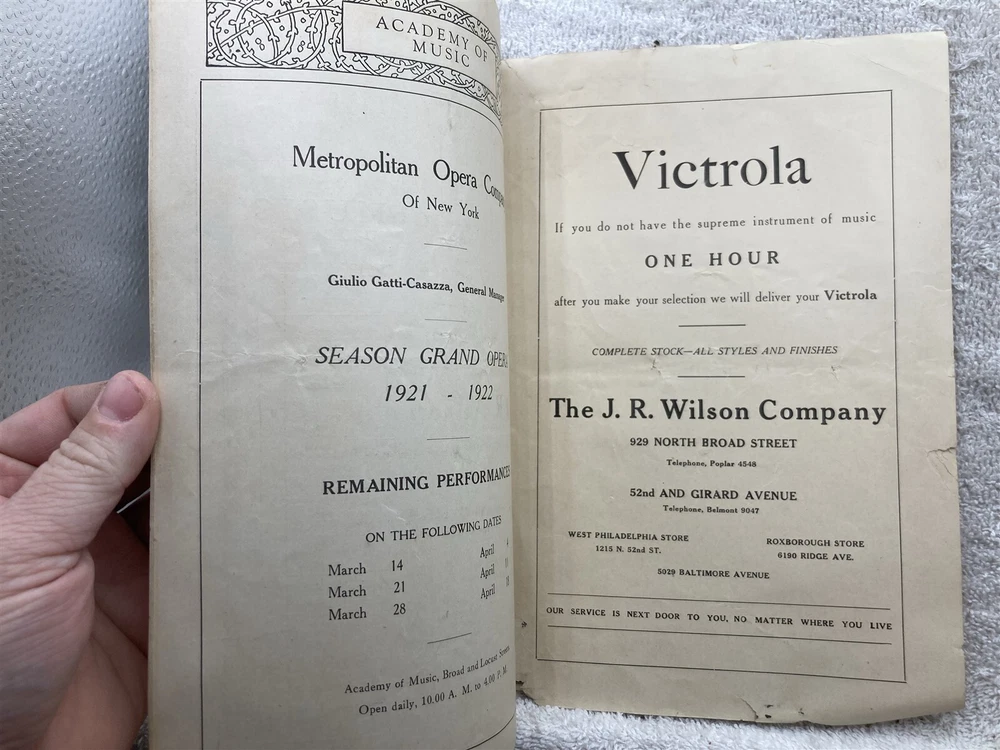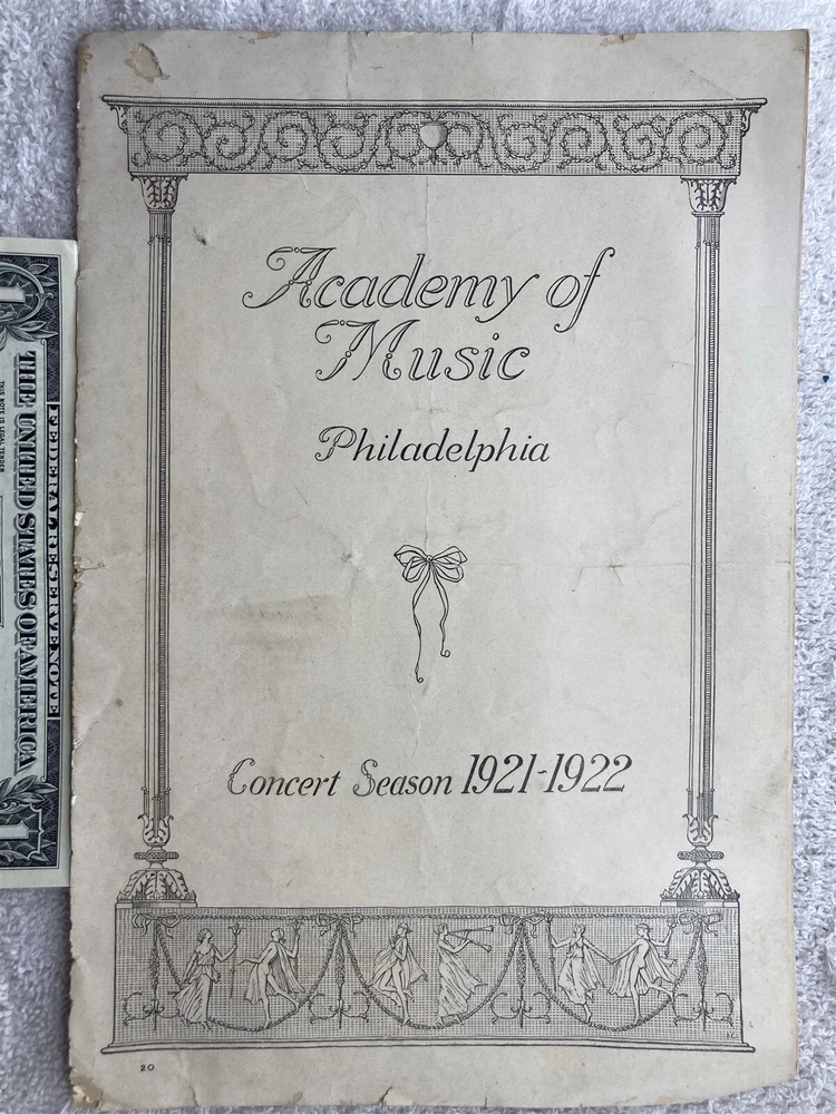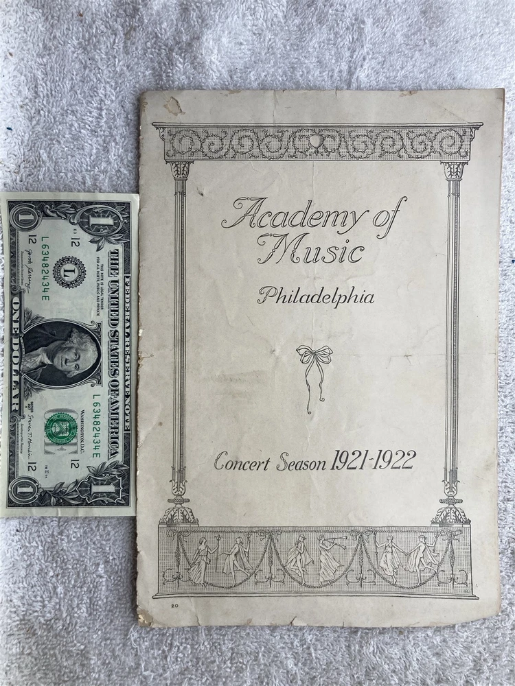 Original: 1921 1922 Academy of Music Philadelphia Concert Season Program Vintage. Please see the photographs for a detailed description as it will show most blemishes that the item has. Free shipping to all US addresses. Please note, my schedule only allows me to ship once a week (Usually close orders out at 5PM on Tuesdays and ship Wednesday Mornings), If you buy on Wednesday, it most likely not ship until the following Wednesday. It can take up to 5 business days for your item to ship, or it can ship the next day if you purchase on a Tuesday. I apologize in advance, and I beg for your patience, being on the road allows me to find these few and far between items. Please let me know if you need it by a deadline for a birthday or something and I'll see what I can do. For international buyers, please inquire about shipping if the shipping is showing above $24, the prices listed are default 4lbs priority and most likely is way above what it actually costs to ship. Powered by SixBit's eCommerce Solution