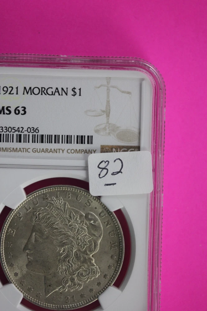 Brand/Mint: U.S. Mint Precious Metal Content per Unit: .7734oz Total Precious Metal Content: .7734oz Strike Type: Business Seller Notes: “You will receive the exact same coin in the pictures. The background I use for pictures is colored.” Coin: Morgan Silver Dollar Year: 1921 Certification Number: na Brand: US Mint Country/Region of Manufacture: United States Grade: MS 63 Certification: NGC Fineness: 0.900 Composition: Silver
