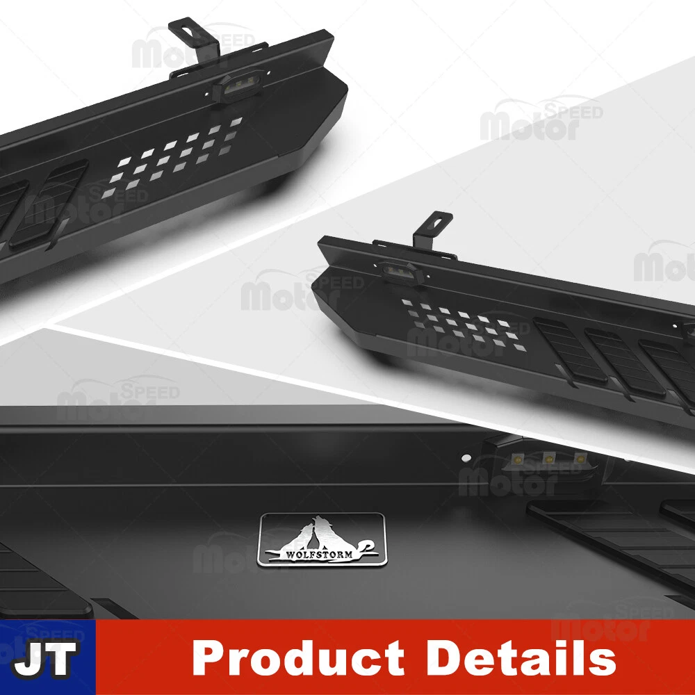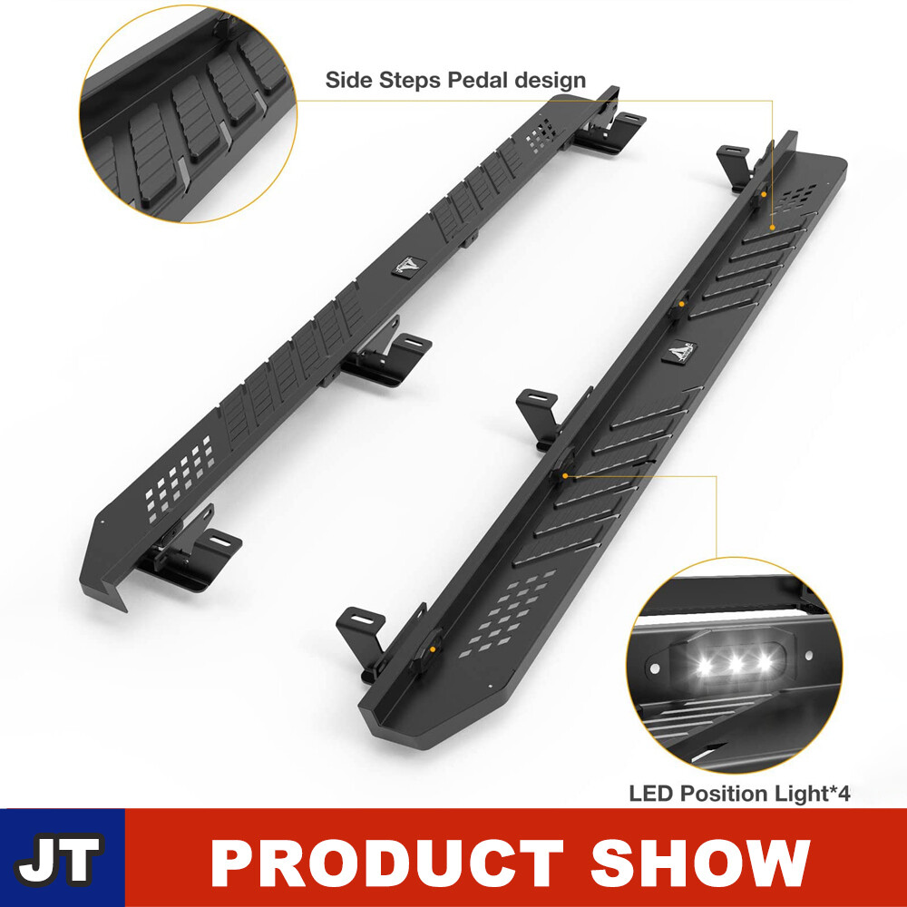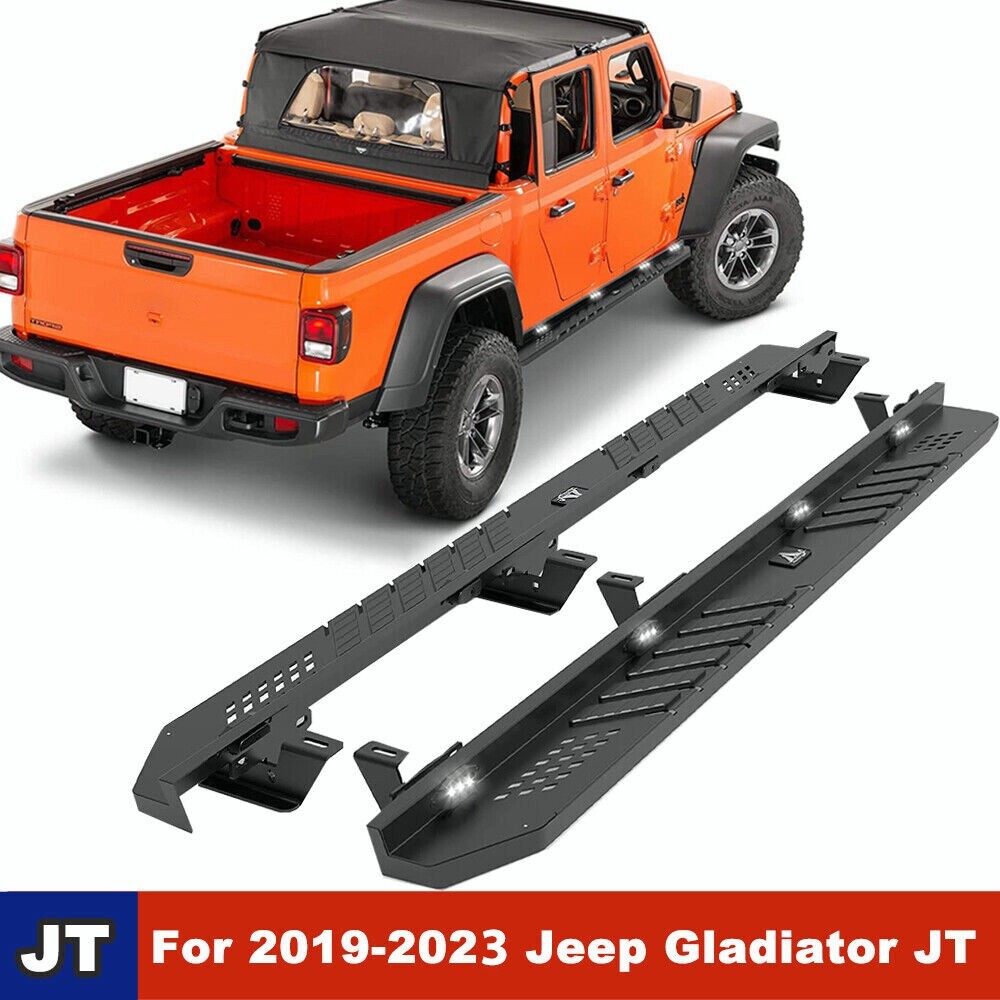 Head Lights Tail Lights Fog Lights Turn Signal Bumper Fender Flare Inner Fender Hubcaps Refrigerator Other Items for sale Head Lights Tail Lights Fog Lights Turn Signal Bumper Fender Flare Inner Fender Liners Portable Refrigerator May you Like Front & Rear Bumper Steel for 07-18 Jeep Wrangler JK w/LED Lights D-ring Shackle 292.99 USD Rear Bumper For 2007-2018 Jeep Wrangler JK Heavy Steel w/LED Brake Lights Black 259.99 USD For Jeep Wrangler 2007-2018 JK 18-25 JL JLU Rear Bumper Textured Steel w/Shackle 244.99 USD For 19-23 Jeep Gladiator JT 4DR Side Step Nerf Bars w/LED Lights Alloy Steel 2PC Other Model Recommendation: For 2007-2018 Jeep Wrangler JK: https://www.ebay.com/itm/403801887548 For 2018-2023 Jeep Wrangler JL: https://www.ebay.com/itm/403882239424 (Pls Note:The Same as this link, all with LED lights,only the compatible model year is different) Features: Full New - 100% Brand New in the box with manufacturer packaging, never been opened or installed before. With LED Position Lights - There are 4 built-in LED lights on the left and right sides, making it safer at night and more unique Heavy duty build - Cold rolled steel with a black powder coat for corrosion protection and durability. Perfect for off-road use - These Rock Sliders provide excellent protection for the side and undercarriage of your Jeep while rock crawling. The durable non-slip step pads ensure an easy entrance and exit from your Gladiator JT. Sturdy construction - can meet different wild off-road driving challenge Easy installation - Direct bolt-on, no drilling required! Roughly 30 min installing time. Fitment: For 2019 2020 2021 2022 2023 2024 Jeep Gladiator JT 4 Door Only (non-Sport) Package Include: 2 PCS Side Steps / Running Boards ( Left +Right Side) Payment Shipping Return About us Contact us Payment Appreciated for the prompt payment, Contact us if bid by mistake, system open unpaid item automatically. Payment must be complete within 3 days from the date you purchase or after the end of auction. Items unpaid within 3 days of the auction end will be forfeited. We reserve the right of cancel the order and re-selling the items. Shipping All shipment will ship by UPS or USPS . All items will be ship within 1 working days , and we will ship out all orders as soon as possible after payment verified, please allow up to 1-4 business days for delivery. CANADA & International customers please note: your government might charge a duty tax (brokerage fees). We do not responsible for any custom duty or import tax. Why Choose the US Stock? 1. Us Local Shipping, No Extra Customs Cost to the US. 2. Fast Delivery: 1-4 Working days Delivery. 3. Best After-Sales Service!!! Return The buyer is responsible for all return shipping including a result of customer error or defective item. 1) If you received an incorrect, damaged, defective, or item not as described, contact us for full refund or replacement on our cost. 2) If you want to return the item, please contact us within 60 days after package received. Return products must also be in its original condition: including box, packaging and all other accessories. About us We are the best auto parts, we have been pursuing excellence, continuous exploration as the slogan, let customer satisfaction is our purpose! We adhere to the United States local delivery, one year warranty! Welcome! Contact us How Should You Contact us? Please Read The Item Description And See if The item Fits Your Vehicle Exactly. If You Found Any questions, Feel Free to email us by "Ask a question" Our Office Hours Are Monday - Friday 8:00am - 5:00pm PST / 11:00am - 8:000pm ET, We Do Not Answer Any E-Mails On Weekend, And We Will Reply All E-Mails In The Order It Was Receive. All E-Mail Take Us Around 24 Hours To Respond To Any E-Mail. We Are Close During The Weekends And We Do Not Answer Any E-Mails During That Time.