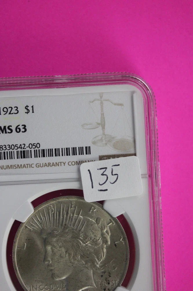 1923 P MS 63 Liberty Peace Silver Dollar NGC Certified Authentic Graded Slab 135