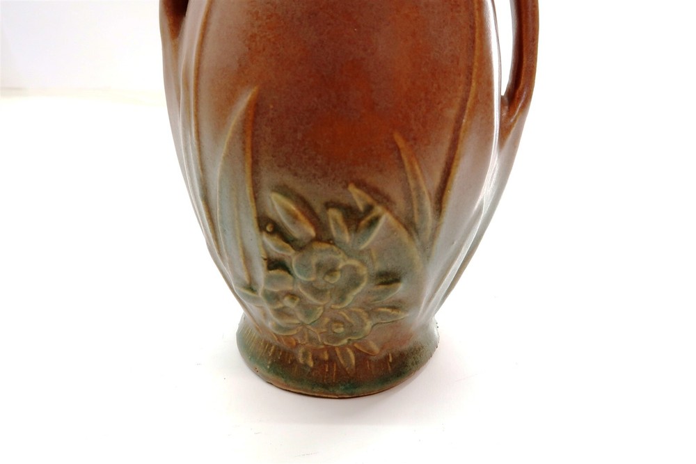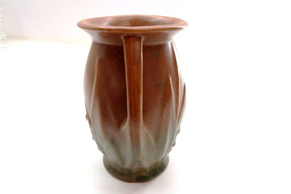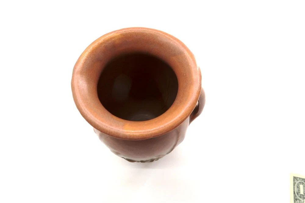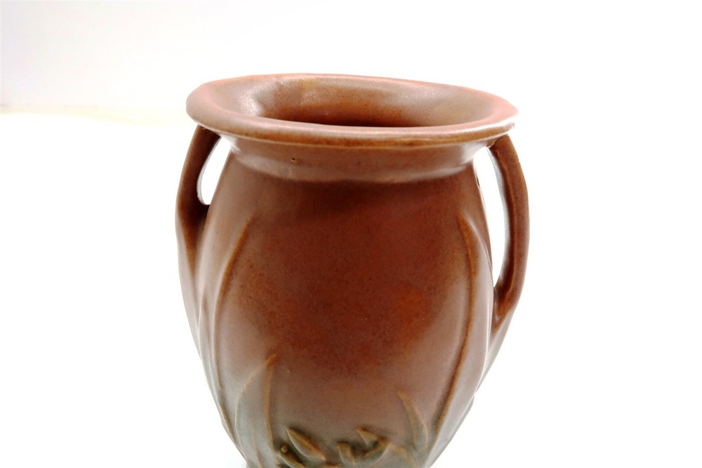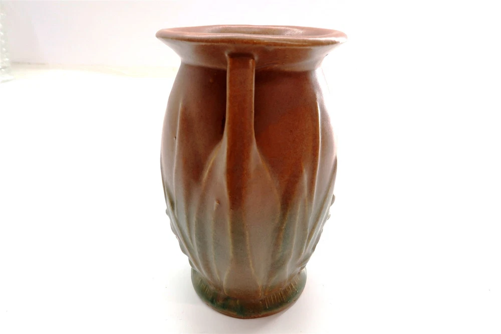 1930's Nelson McCoy 6" Floral Vase w/ Dual Handles 2 Tone matte Brown and Green