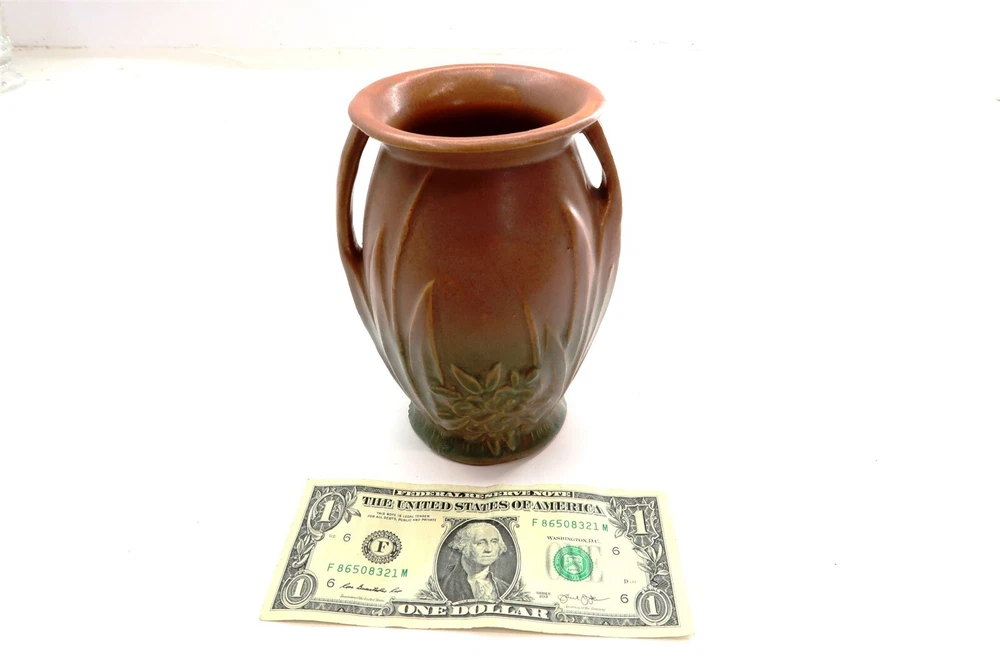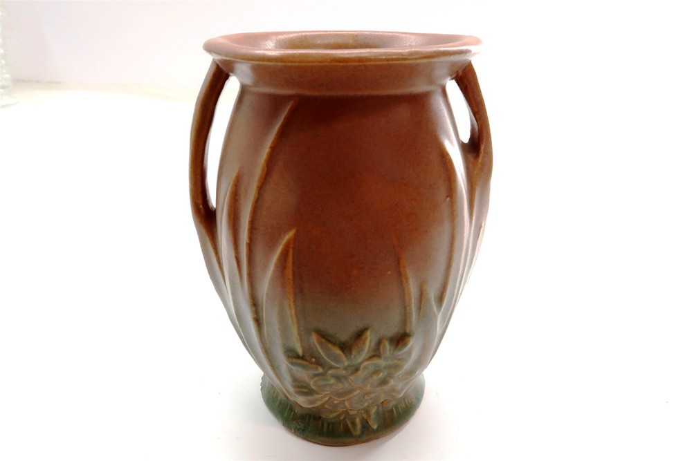 1930's Nelson McCoy 6" Floral Vase w/ Dual Handles 2 Tone matte Brown and Green This eBay listing is for a wonderful original unmarked Nelson McCoy vase that comes as you see pictured in the listing and noted above. I just picked up a small collection of mostly vintage McCoy planters and other treasures from a local estate from I believe the 1930's to 1940's era. This vase measures 6" tall and across and 4.5" across. No chips, cracks or hairlines found. There are some rough spots on the base but it's from the making process. Seller Location Reference - China / Pyrex Box BID IN CONFIDENCE – CHECK MY FEEDBACK! My goal is your satisfaction. I leave positive feedback right after the payment is received for all orders!! If you plan to leave anything less than positive feedback and 5 stars - please let me know so that I can work out any problems that you may have. I aim to please!! SHIPPING & HANDLING FOR US BIDDERS We ship ASAP upon payment as noted above within 1 business day 99% of the time!! We normally pack up your new treasures 2 - 3 times a day and ship using USPS and Fedex Ground so that you get your items in a timely fashion. As always - there is no charge for local pickup on any of my items!! SHIPPING AND HANDLING FOR INTERNATIONAL BIDDERS Import duties, taxes and charges are not included in the item price or shipping charges. These charges are the buyer’s responsibility. Please check with your country’s customs office to determine what these additional costs will be prior to bidding/buying.” THANK YOU AND HAVE A WONDERFUL DAY!! Powered by SixBit's eCommerce Solution