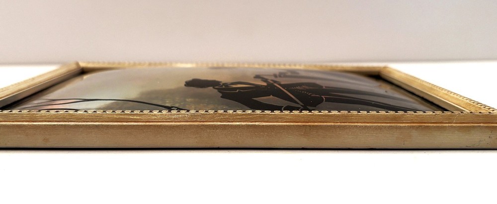 Beautiful vintage reverse painting. It fits in with my collection of silhouettes perfectly. The price was excellent. The packaging was above and beyond, super fast shipping. Many thanks to a highly recommended seller!