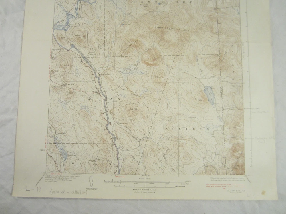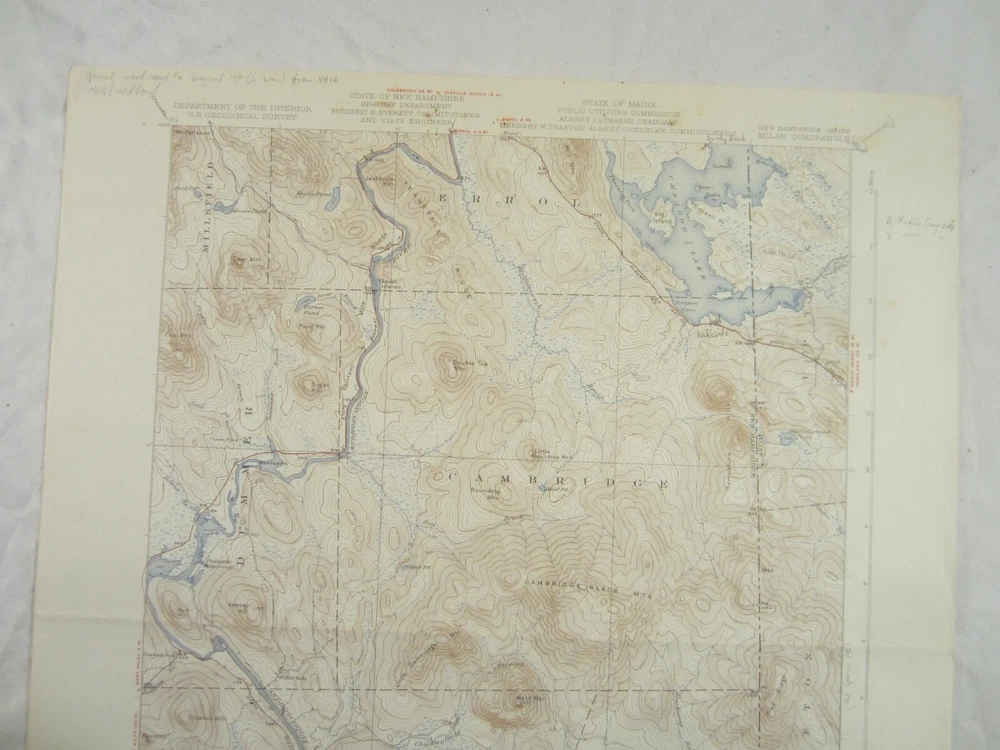 Measuring about 16-1/2 " x 20", this vintage topographic map is titled "New Hampshire - Dixville Quadrangle." It is the Edition of 1934, published by the United States Geological Survey. Most of the left side of the map is taken up by the towns of Stewartstown, Colebrook and Columbia, while the right side is dominated by Dixville and Dixville Notch. Part of Clarksville runs across the top, and, south of Dixville, we have Ervings Location and parts of Stratford, Odell and Millsfield. The scale is 1:62,500. Printed on the back is a Legend and information on "The Topographic Maps of the United States." It is in very good condition for its age, with some typical light surface rubbing and edge wear and some inscriptions in the lower margin and on the back. We will probably choose to ship it rolled in a tube. International Buyers – Please Note: Import duties, taxes, and charges are not included in the item price or shipping cost. These charges are the buyer's responsibility. Please check with your country's customs office to determine what these additional costs will be prior to bidding or buying. Customs fees are normally charged by the shipping company or collected when you pick the item up. These fees are not additional shipping charges. We won't under-value merchandise or mark the item as a gift on customs forms. Doing that is against U.S. and international laws. COMBINED SHIPPING: See our seller list for other interesting and unusual items, in fact bid on several and you might save on shipping and handling. If you buy multiple items, and if it's feasible and cost-effective for us to ship the items together, we will gladly consider requests to combine shipping at a reduced cost. Just e-mail us, and we can provide combined shipping cost estimates on a case-by-case basis. Depending on weight and other considerations, we typically offer full shipping rate for the first item, then 50 cents or $1.00 per item. And if you are purchasing multiple items, please make the payment as a single payment, rather than trying to pay for each item separately. Oh, and this may sound obvious, but we can't reduce the shipping charges for items on which we offer free shipping. INTERNATIONAL SHIPPING COSTS: If the eBay auto-calculator is not responding, or if you think our shipping costs are too high, please contact us prior to bidding to determine your shipping options and costs. Repeat, prior to bidding , please. FEEDBACK: Because of abuses we've experienced in the past, we have totally given up on the eBay feedback system, so we neither give nor expect feedback. Please, therefore, do not contact us after the auction asking us to leave feedback. If you ever have a problem with an item you purchase from us, please contact us directly about it before giving negative feedback or seller ratings, and especially before invoking eBay's dreaded Grand Tribunal in processes like "Return Requests" or "Opening an Item Not as Described Case." No one is perfect, and we occasionally mis-describe something, or an item arrives late or gets damaged in the mail, but we are always quick to respond to a problem and set it straight in the most mutually agreeable way.